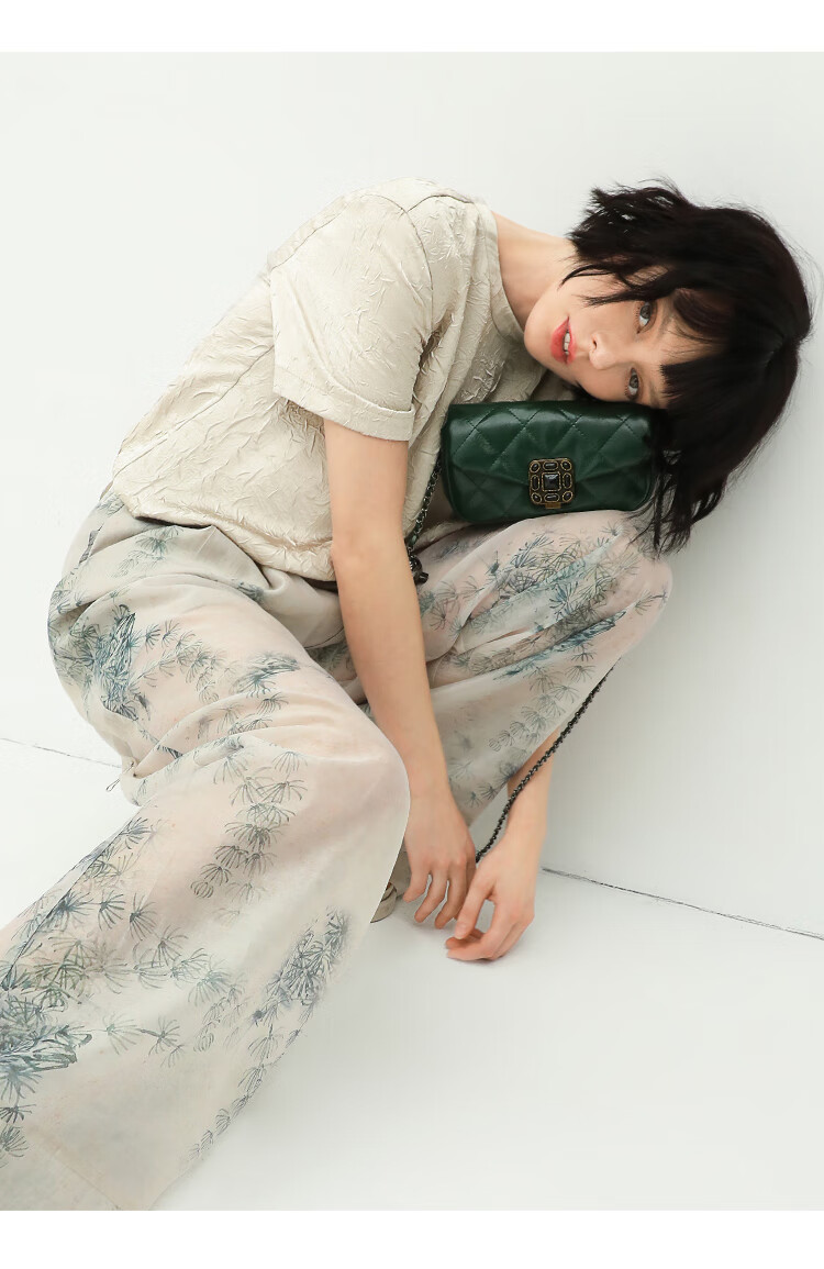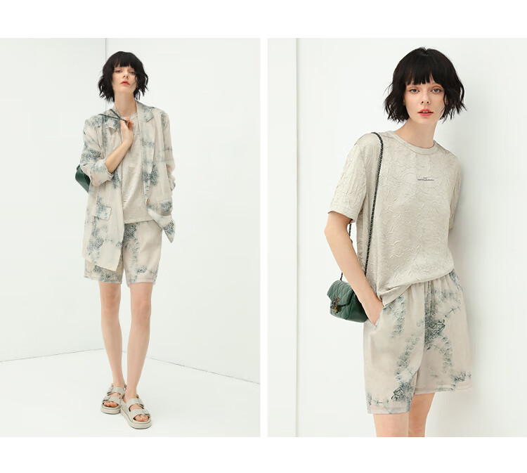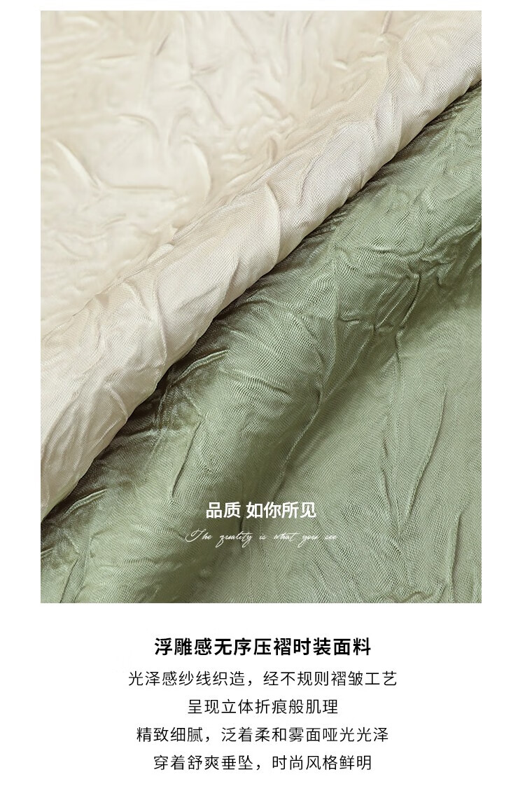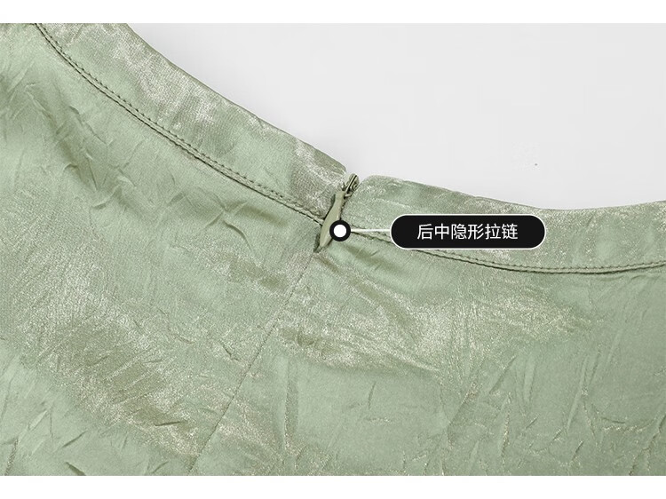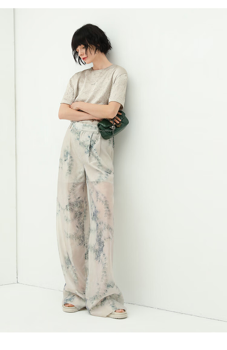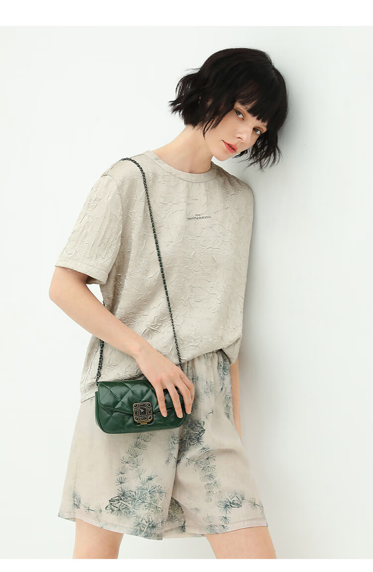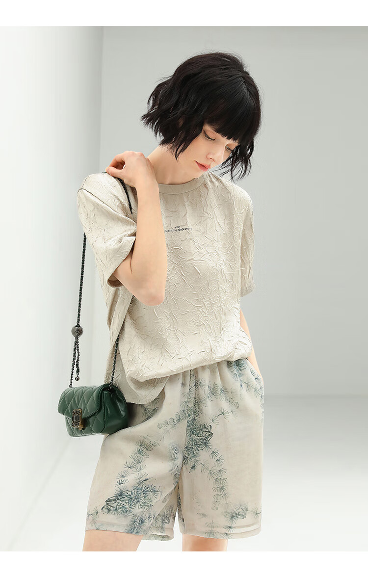 COCOBELLA肌理褶皱字母圆领上衣女夏光泽感缎面短袖T恤TS632