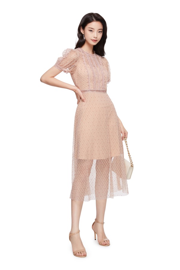 WEN&VI 藕粉色喇叭袖连衣裙 1726