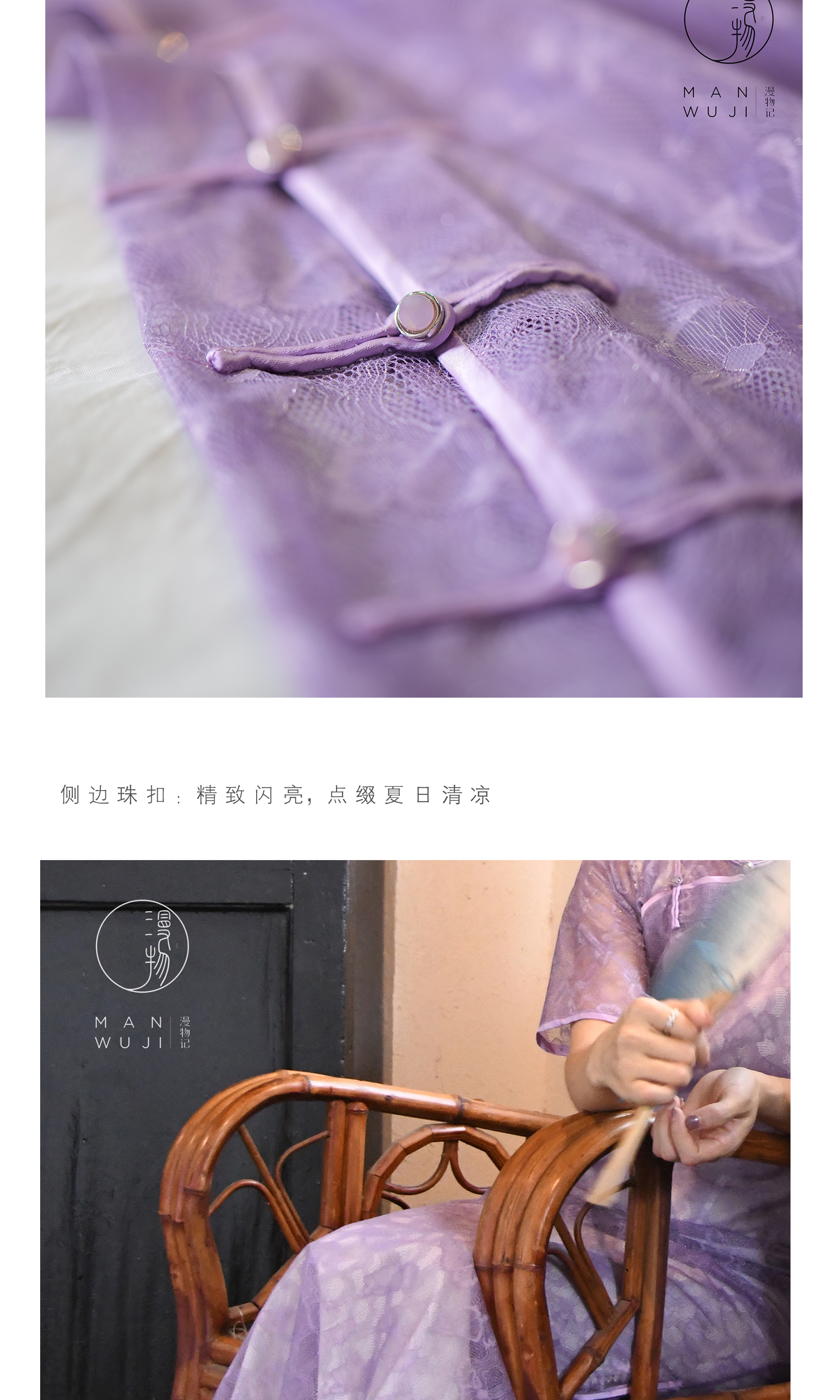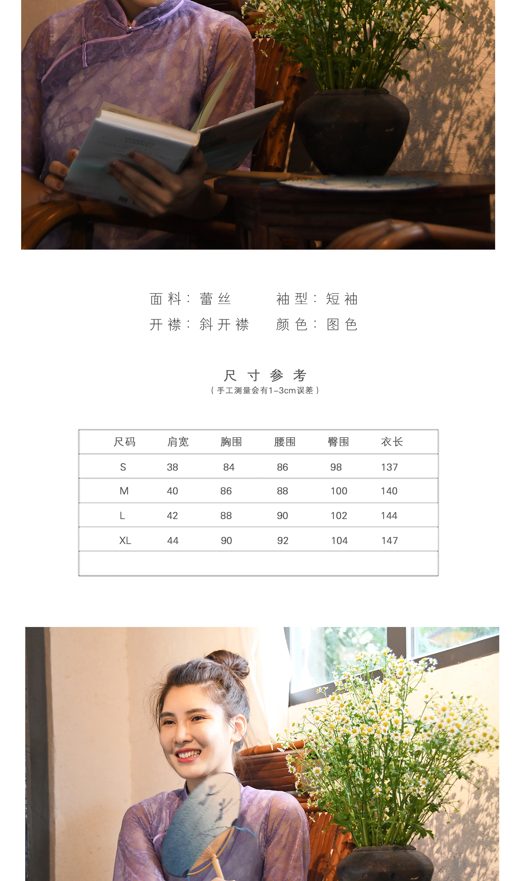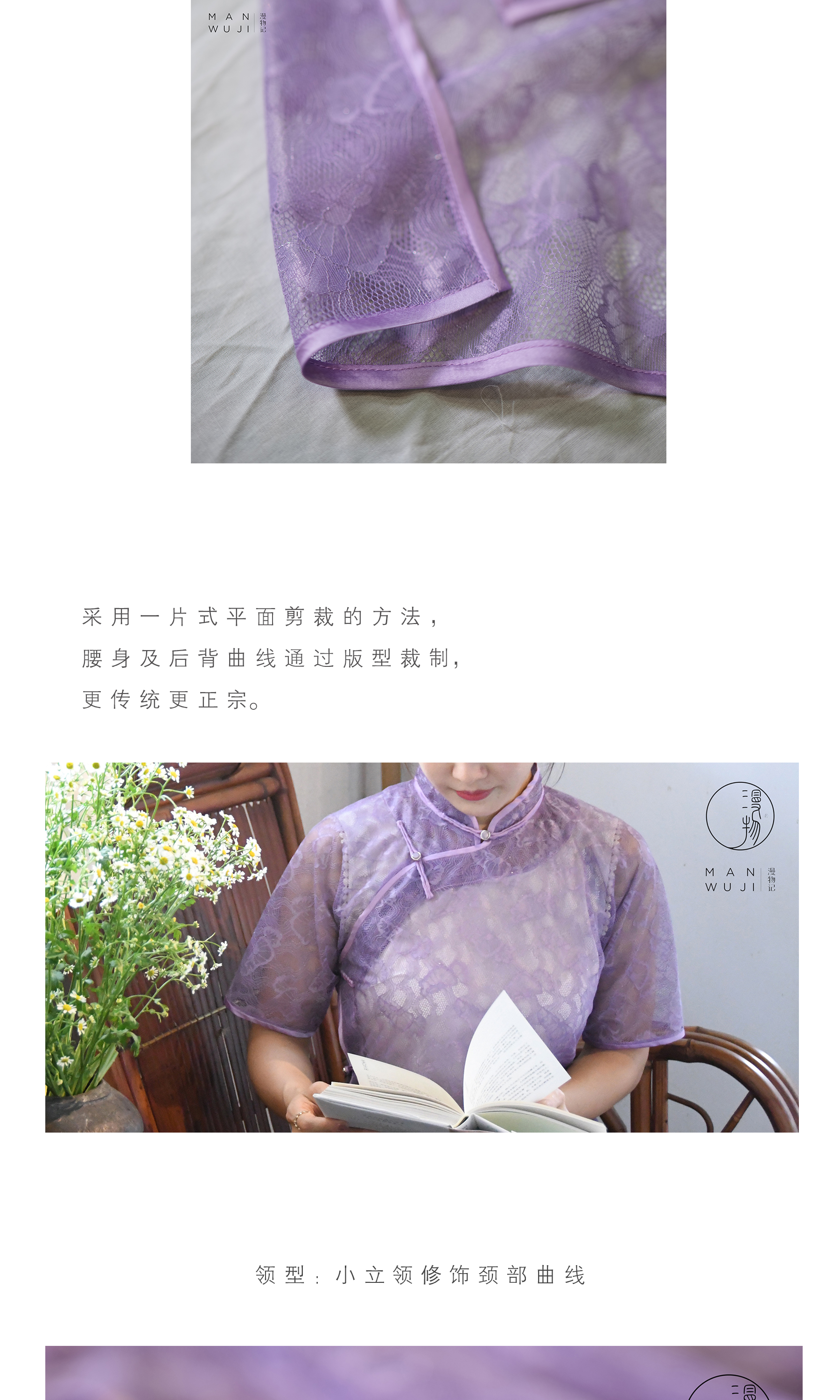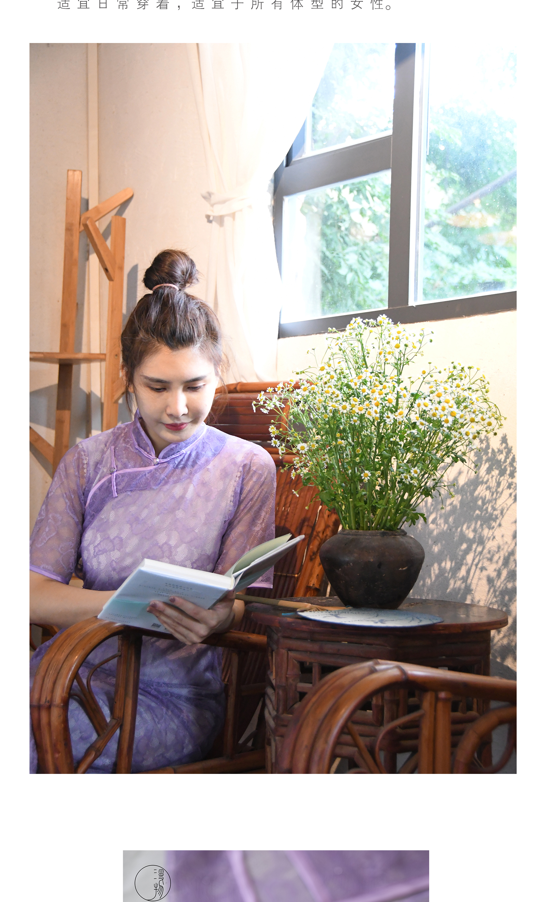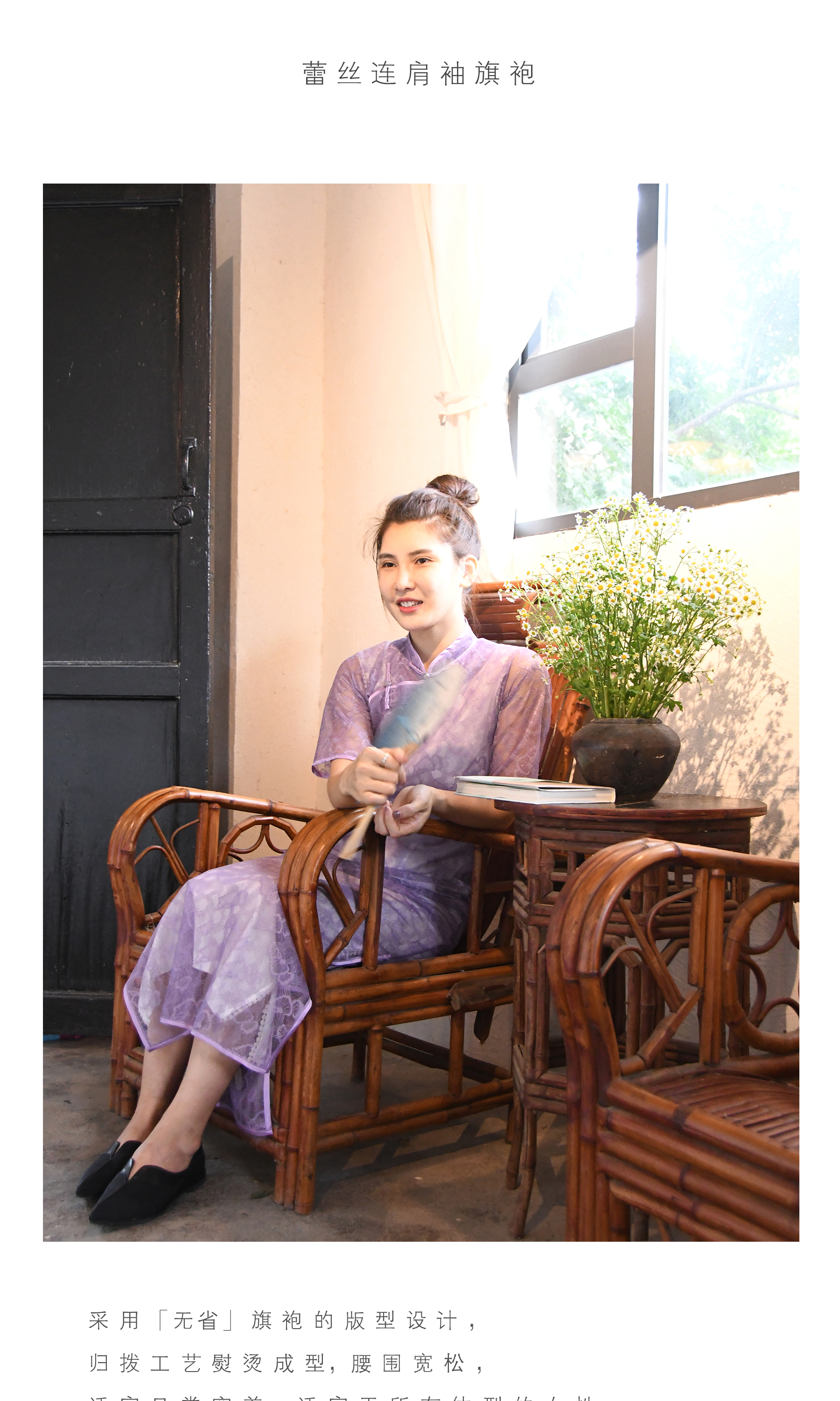 烂花棉连肩五分袖白色树叶纹旗袍(不含内搭)