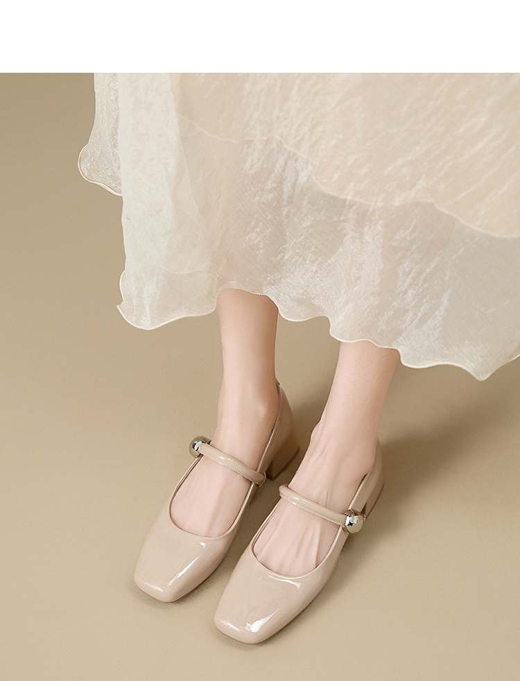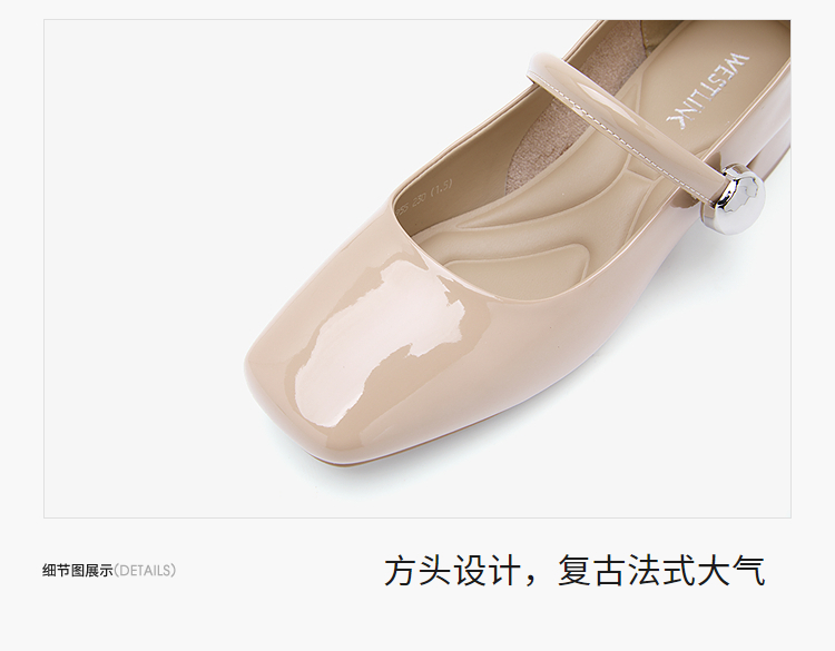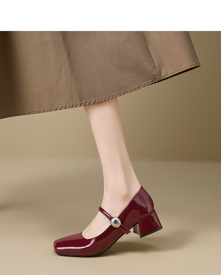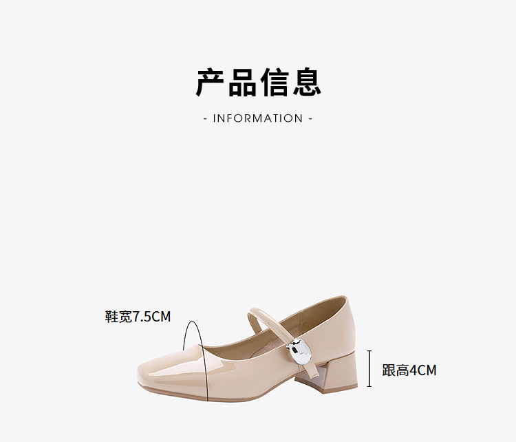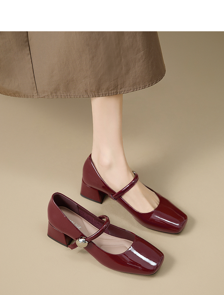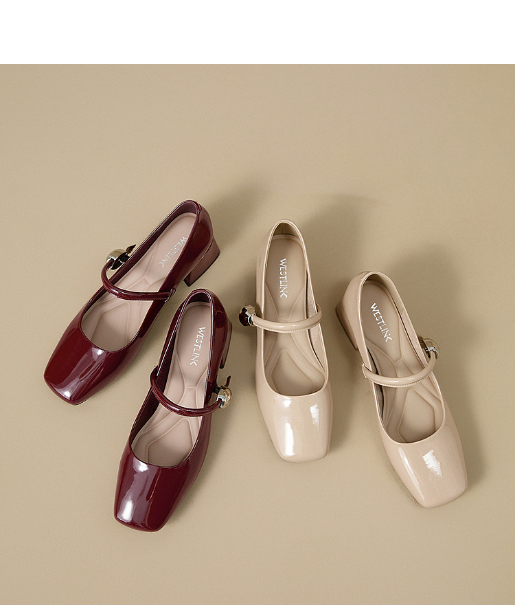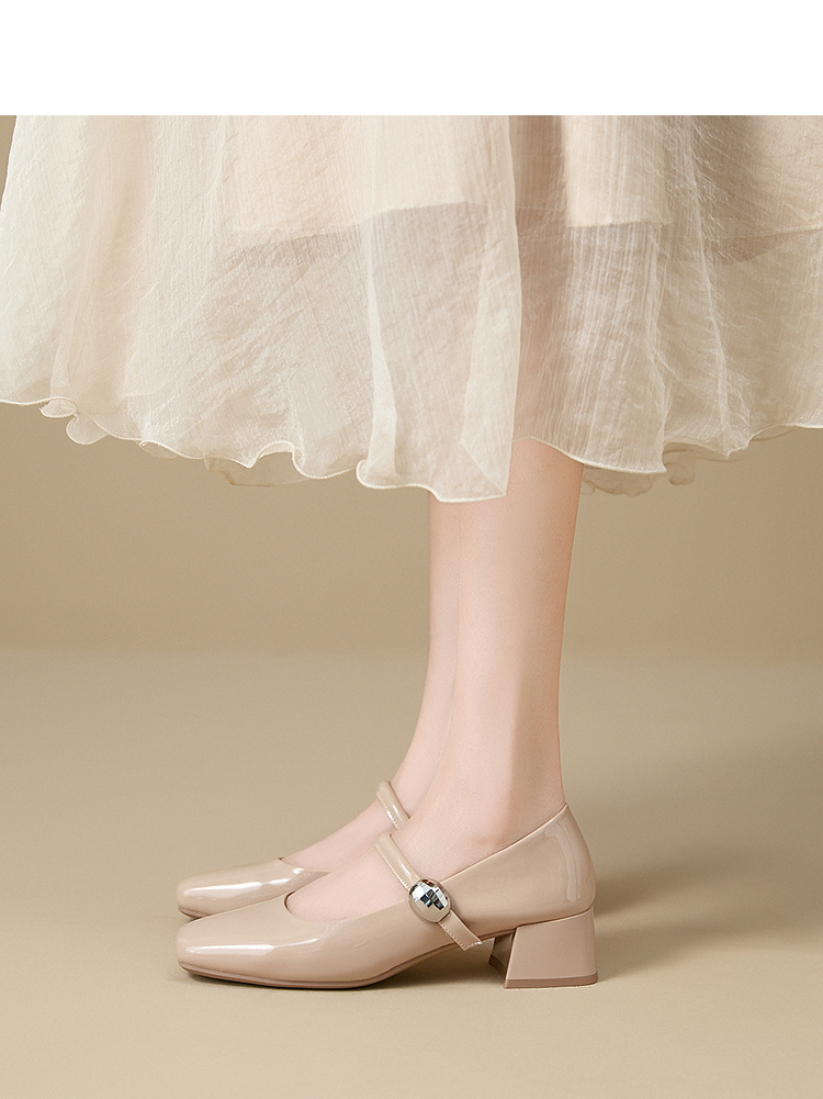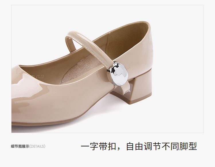 西遇粗跟玛丽珍鞋女新款秋季法式漆皮配裙小皮鞋方头中跟单鞋V1656955