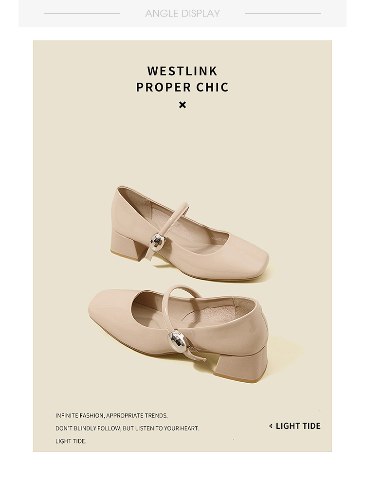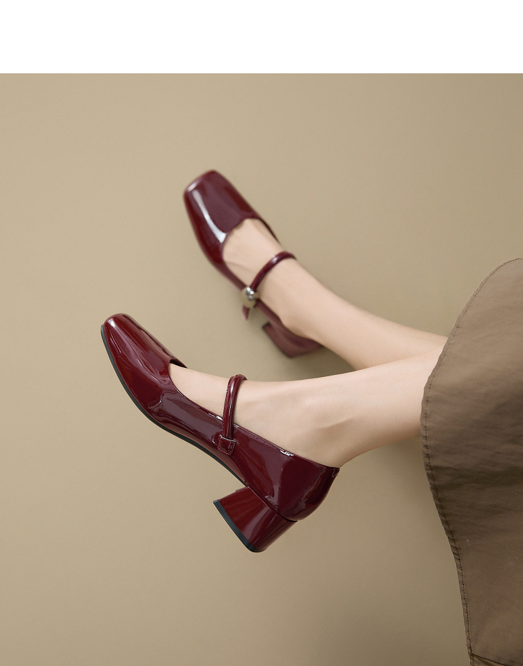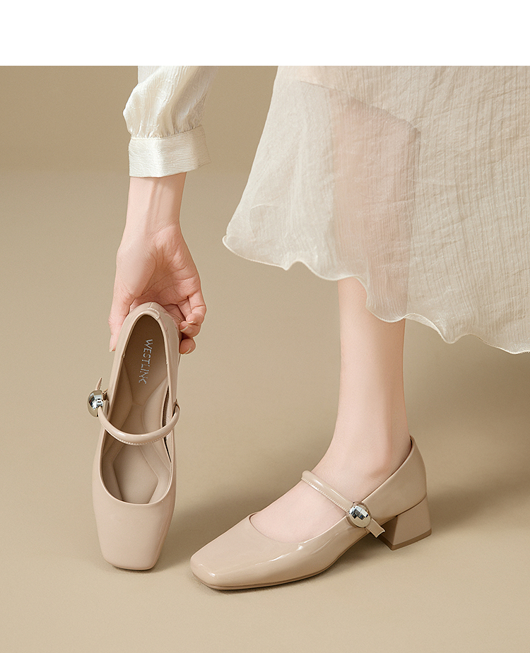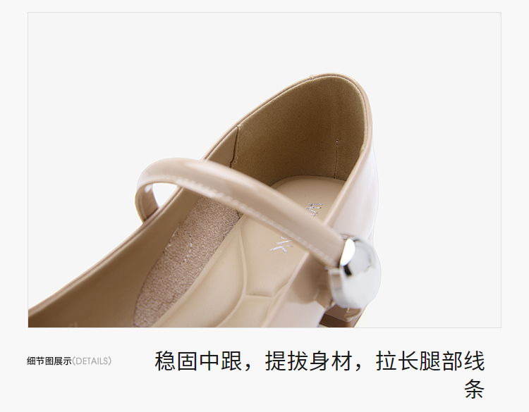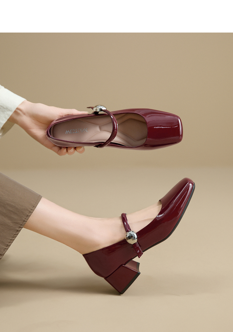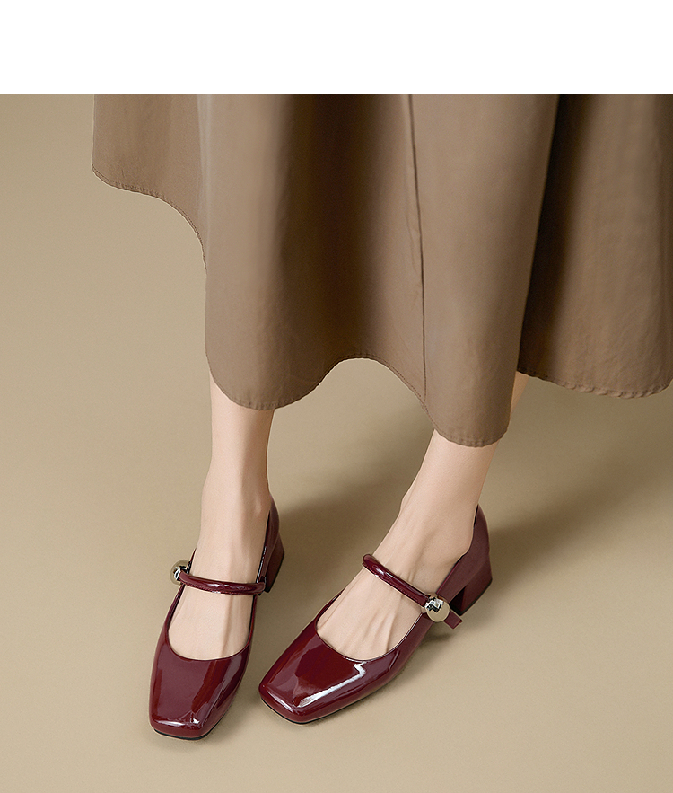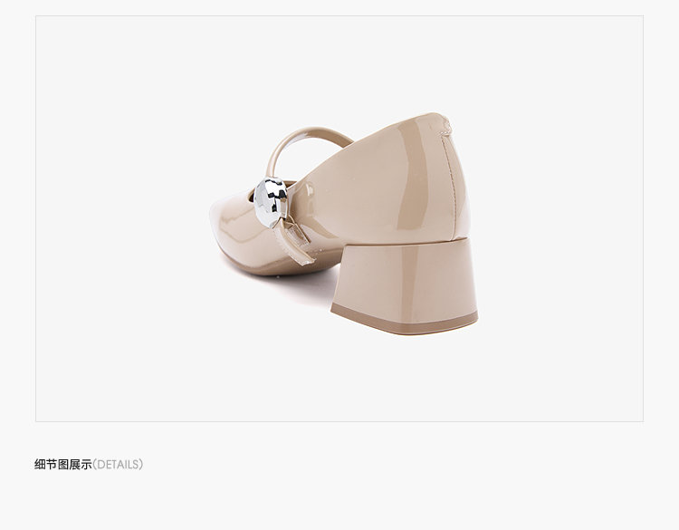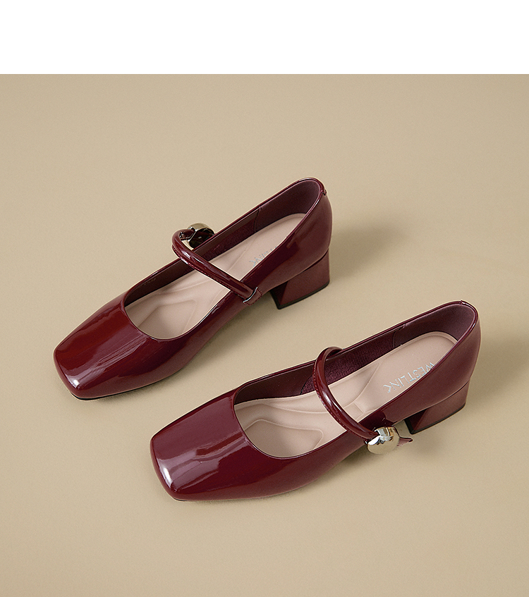 西遇粗跟玛丽珍鞋女新款秋季法式漆皮配裙小皮鞋方头中跟单鞋V1656955