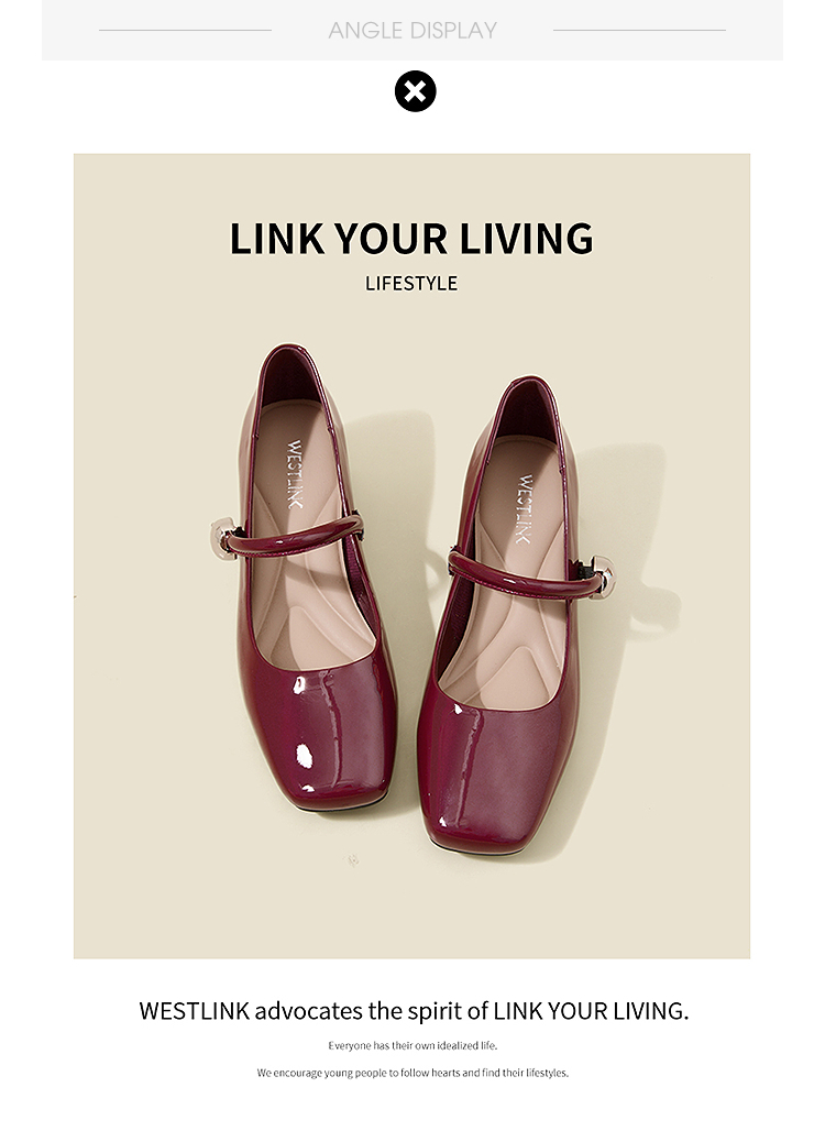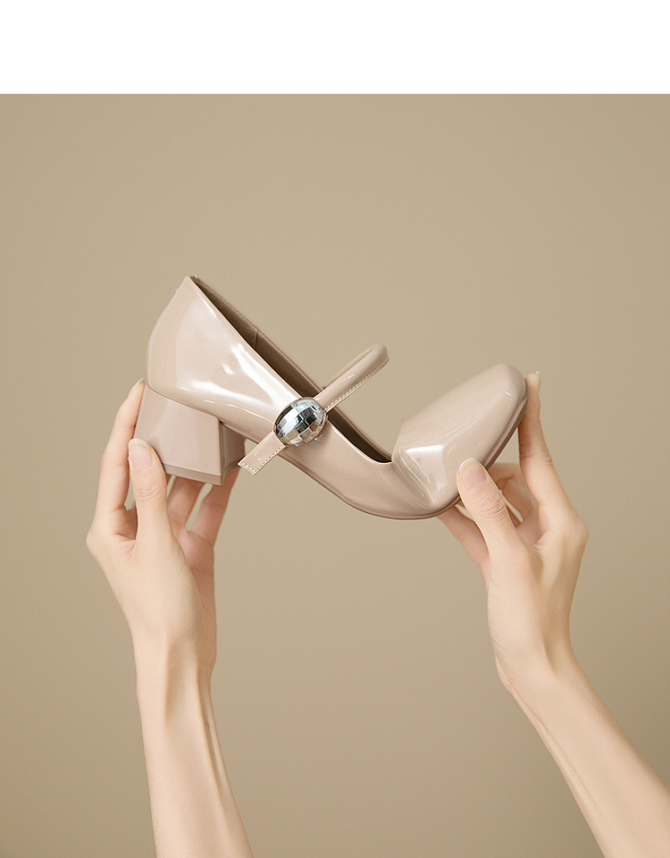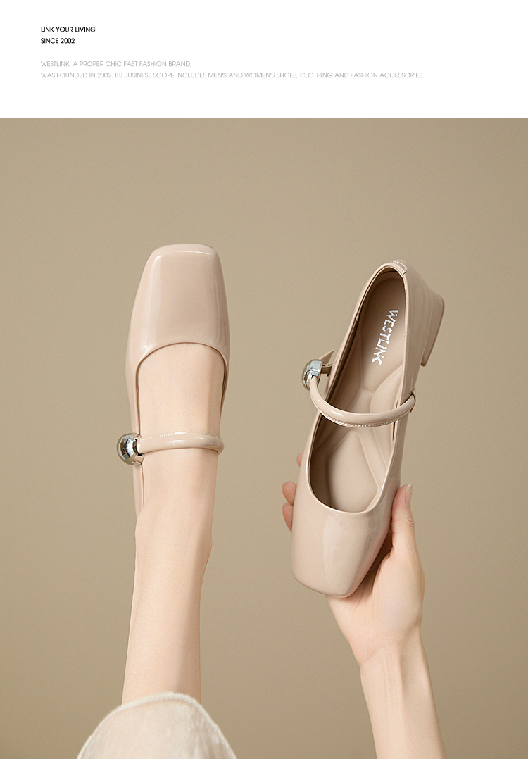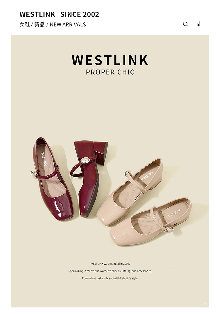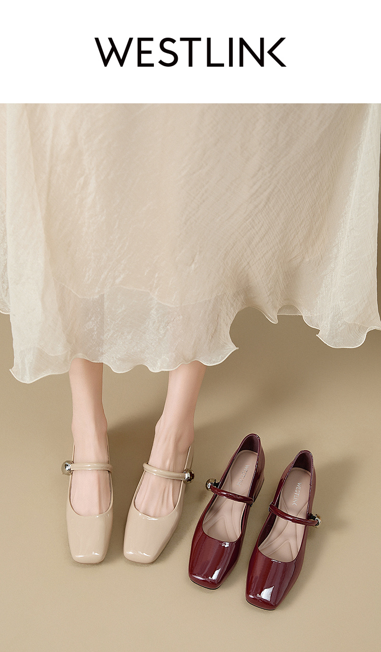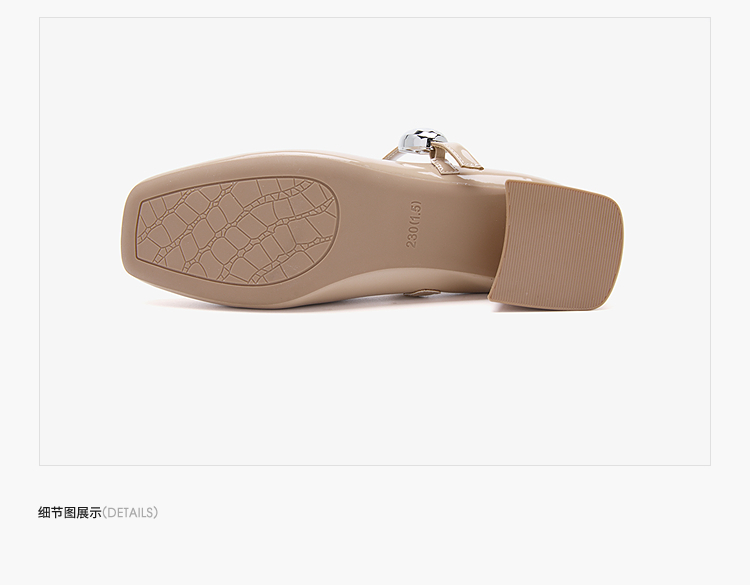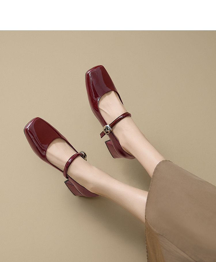 西遇粗跟玛丽珍鞋女新款秋季法式漆皮配裙小皮鞋方头中跟单鞋V1656955