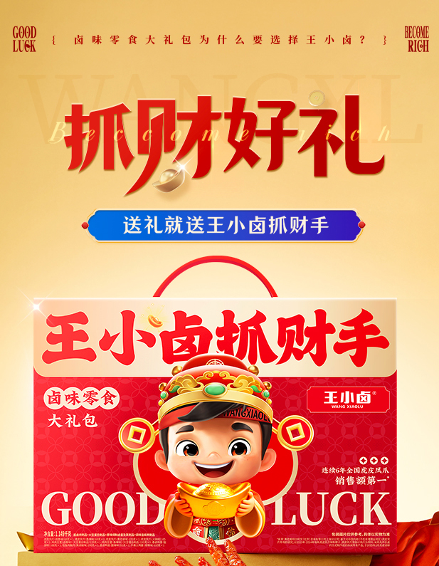 【自营】王小卤虎皮凤爪 卤味鸭货零食 抓财手礼盒1149g