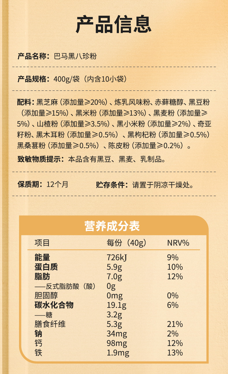 【品牌直营】南方黑芝麻黑养黑巴马黑八珍粉400g