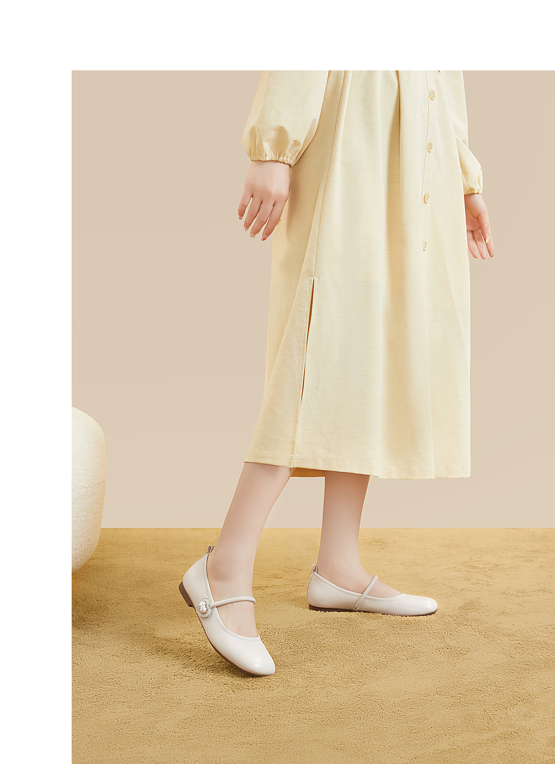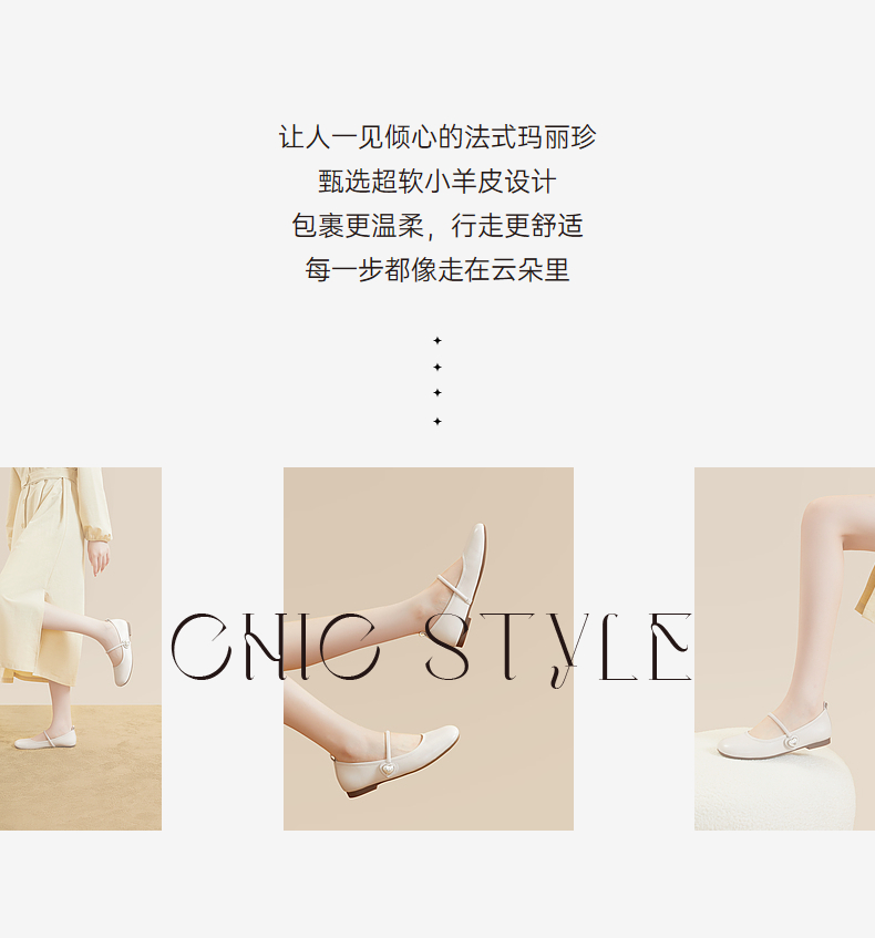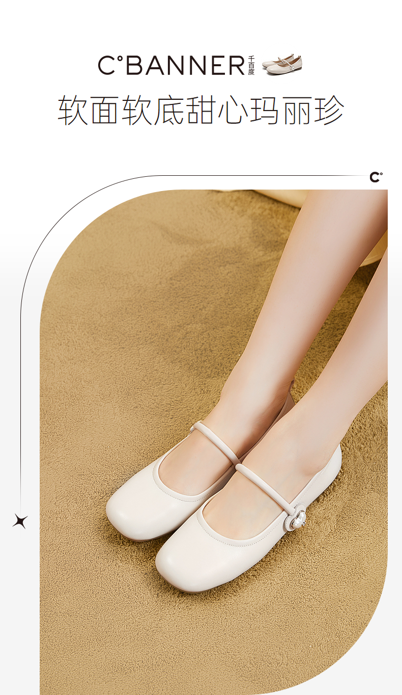 千百度芭蕾舞鞋秋季玛丽珍鞋真皮晚晚鞋温柔风平底单鞋女A23418823