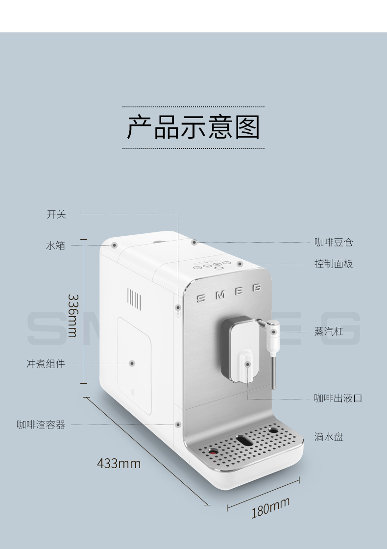 SMEG/斯麦格 全自动咖啡机BCC02 全自动打奶泡拉花磨豆研磨一体(不支持七天无理由退换)[福利品]