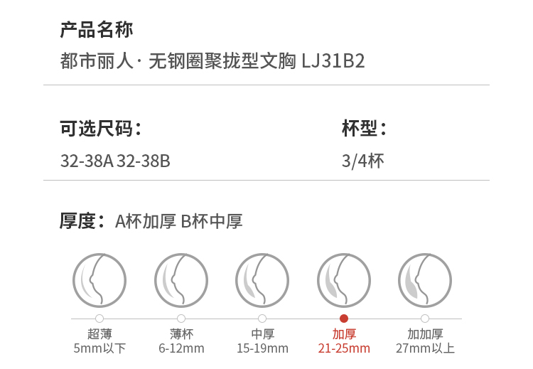 都市丽人舒软挺塑调整型内衣A:加厚B:中厚3/4杯蕾丝塑身文胸四排无钢圈LJ31B2