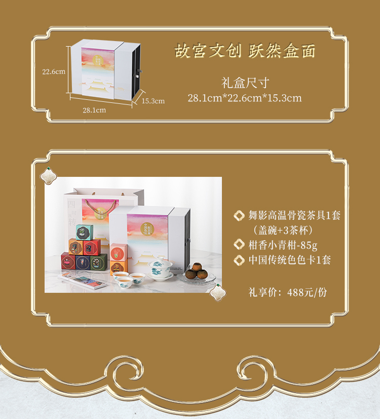 中国色故宫美之四时流转 送高温骨瓷茶具一套+小青柑 80g礼盒广东特产商务礼