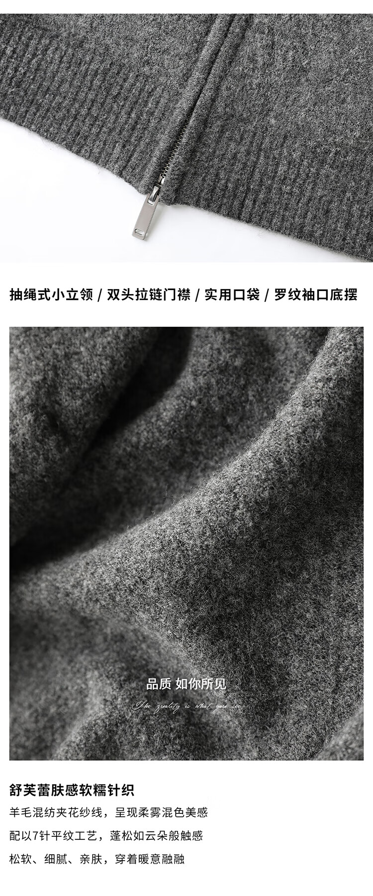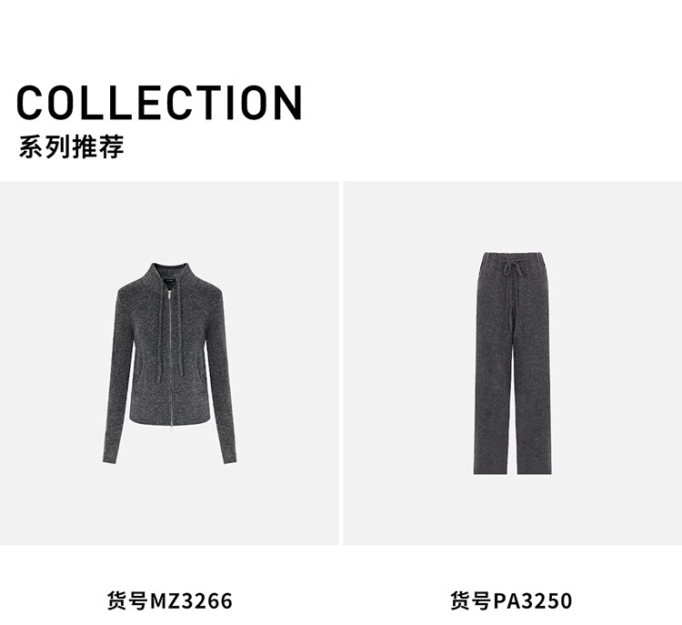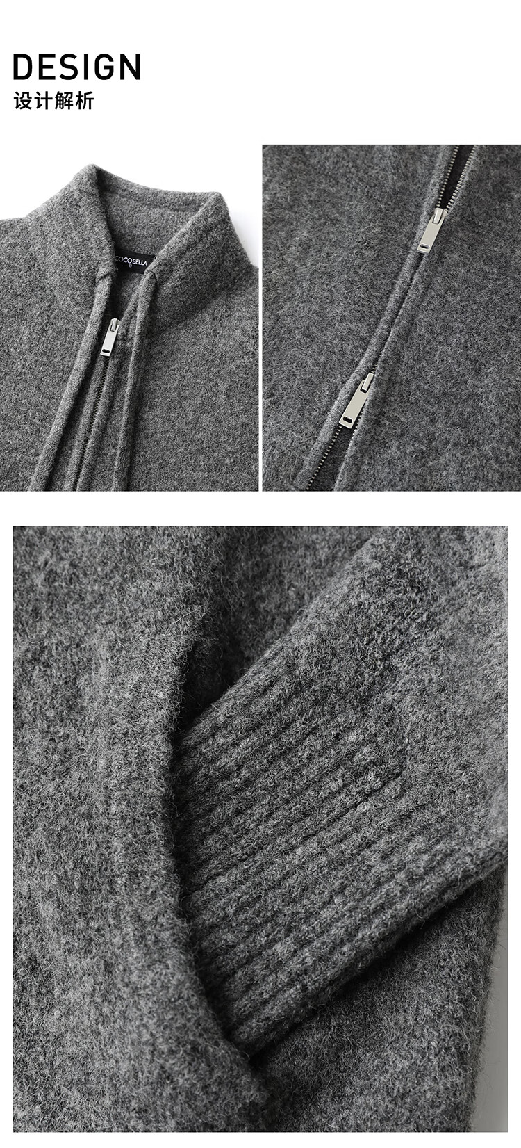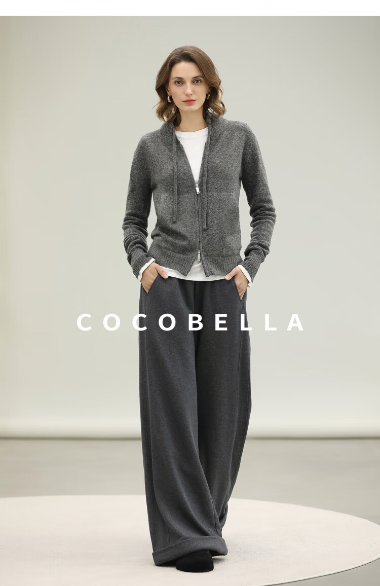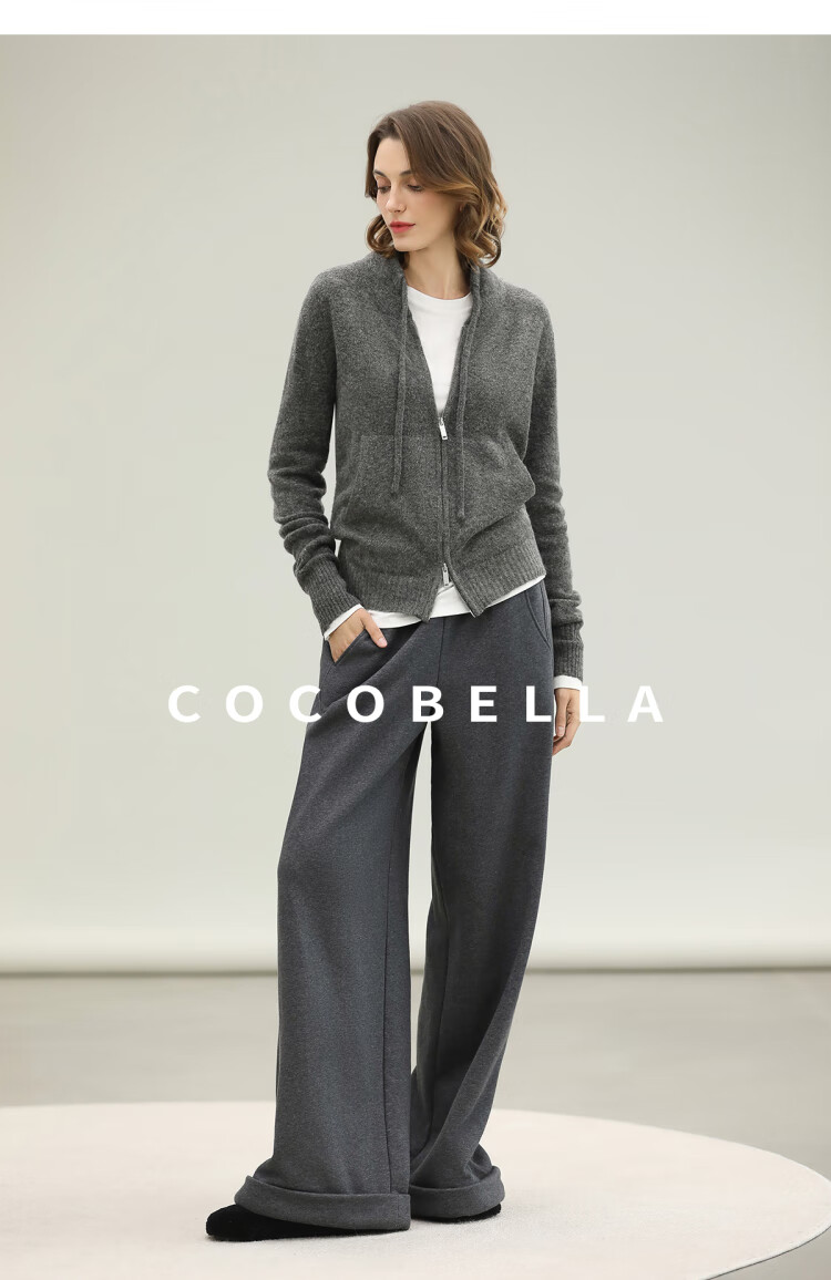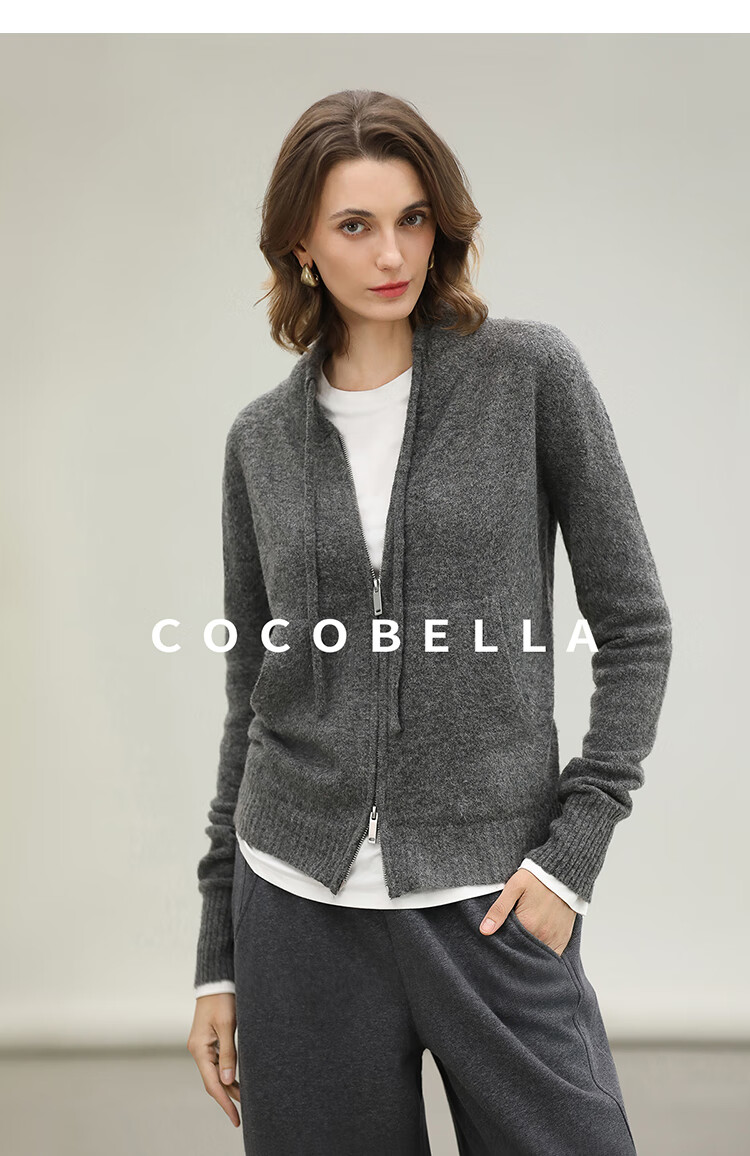 COCOBELLA时尚双拉链灰色针织衫秋冬保暖连帽外套毛衣MZ3266