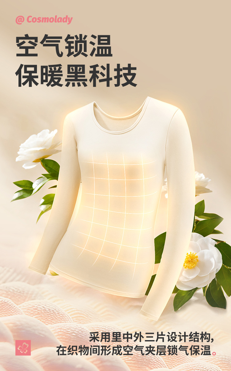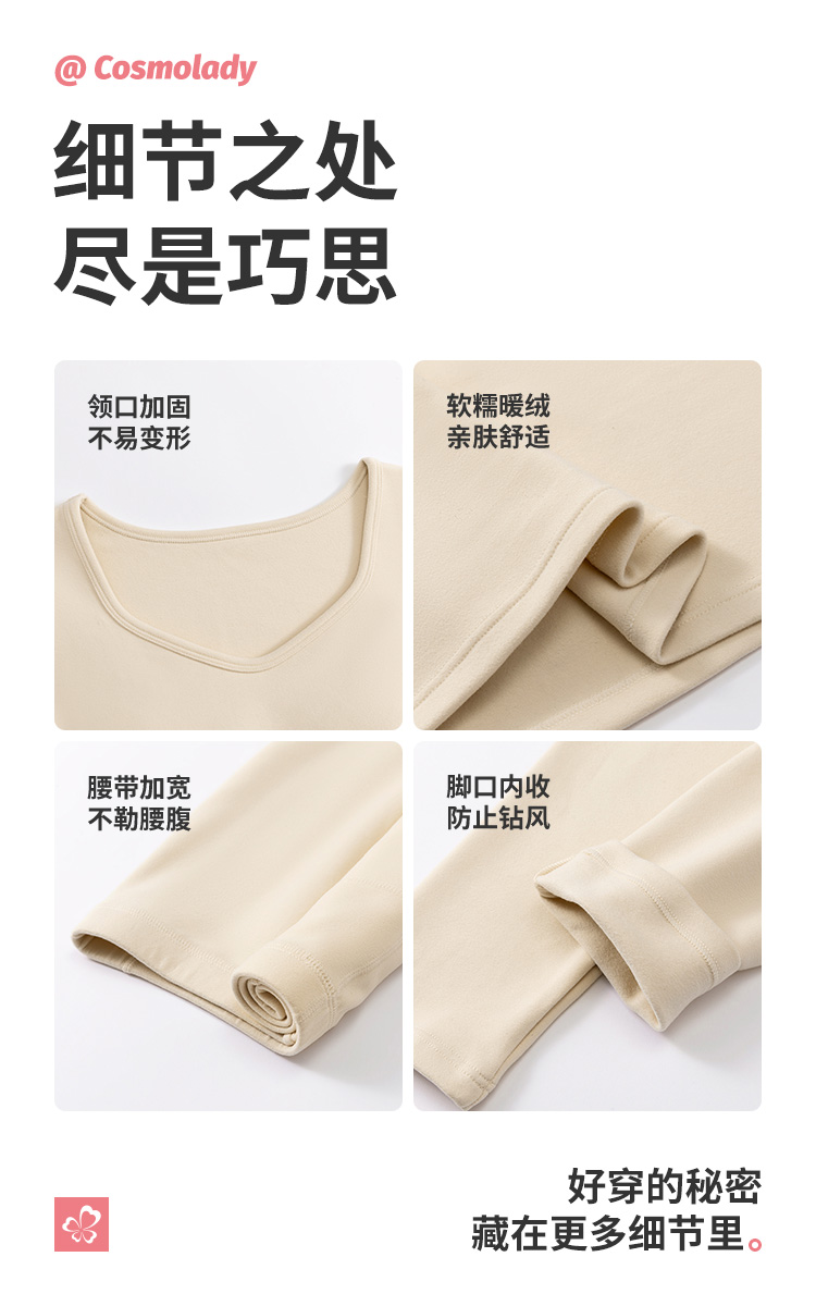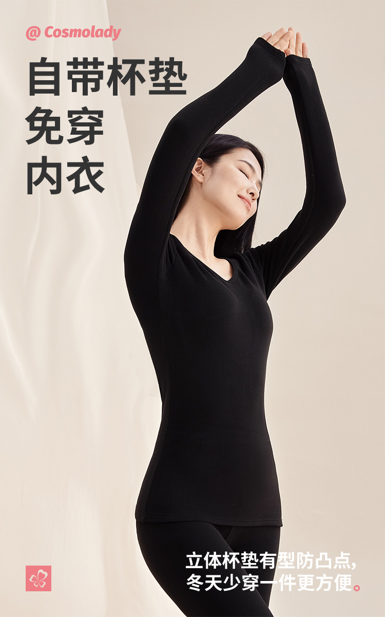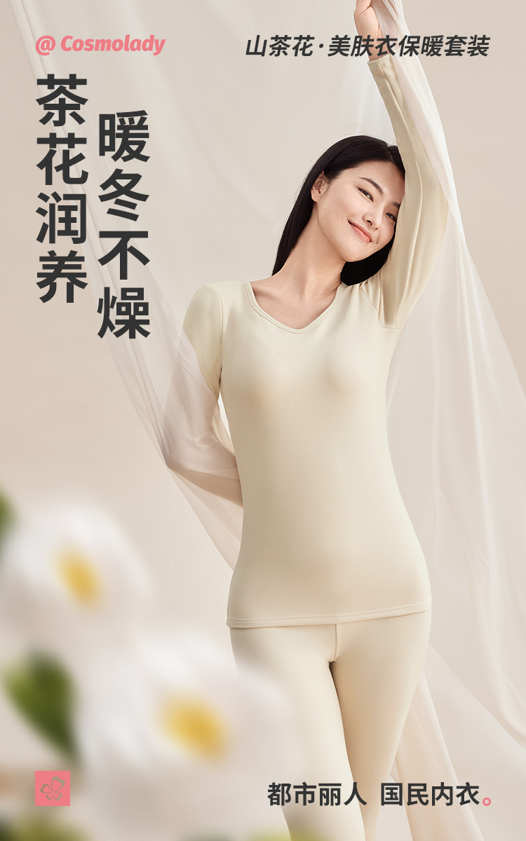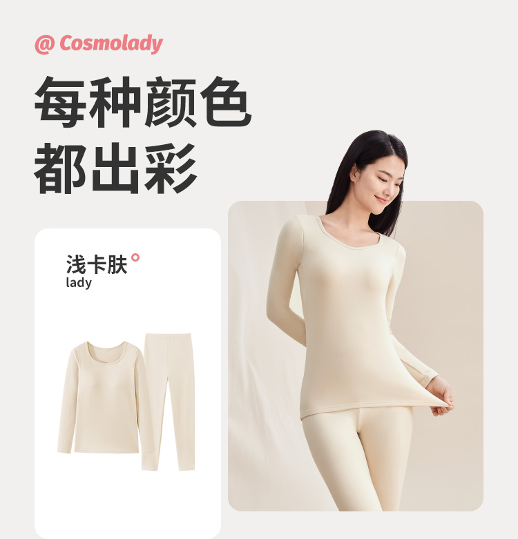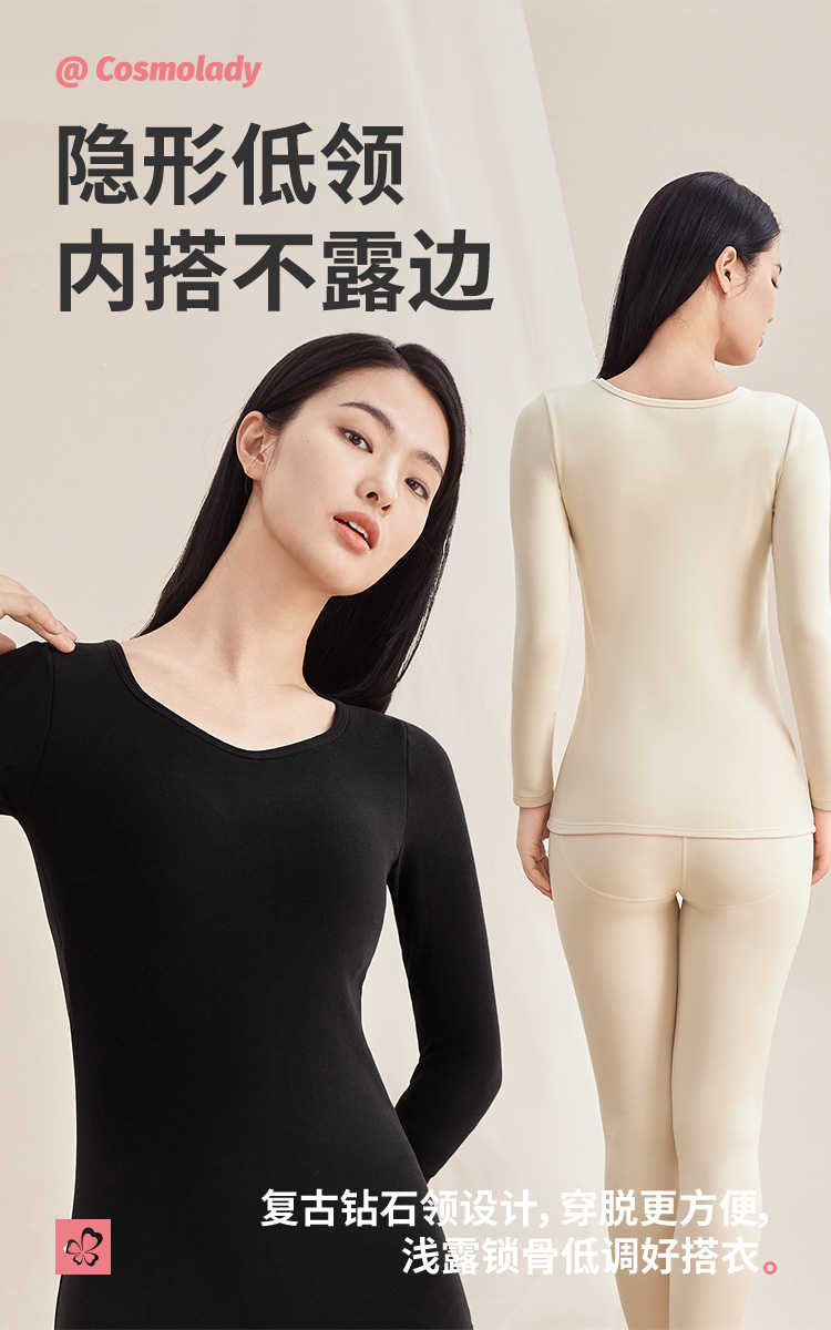 都市丽人女士特殊面料套装方领暖肤绒3.0保暖衣2WT1B5