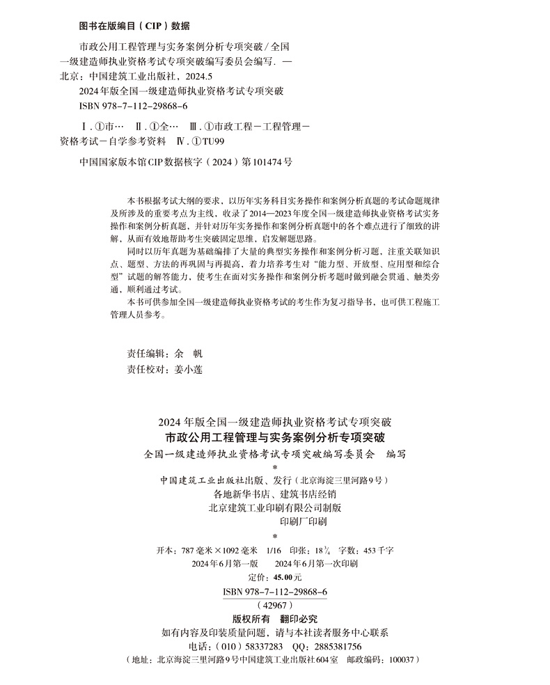 书名:市政公用工程管理与实务案例分析专项突破