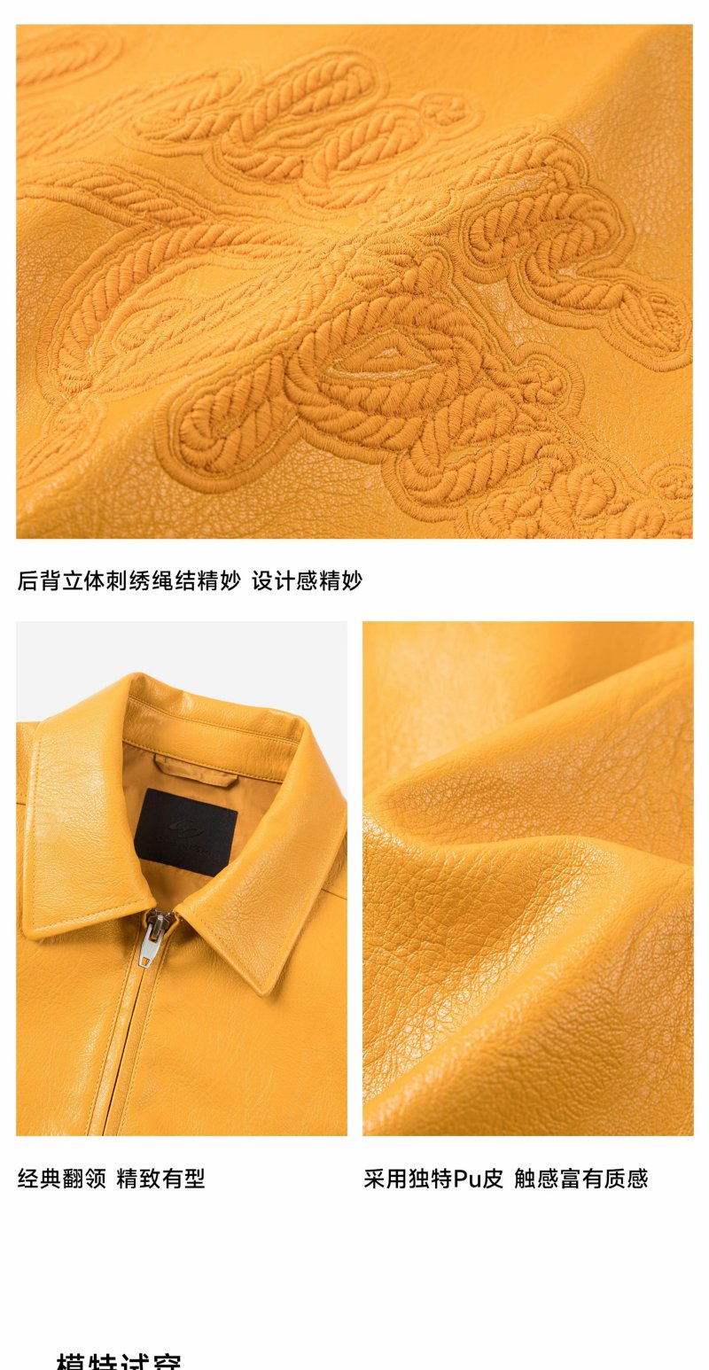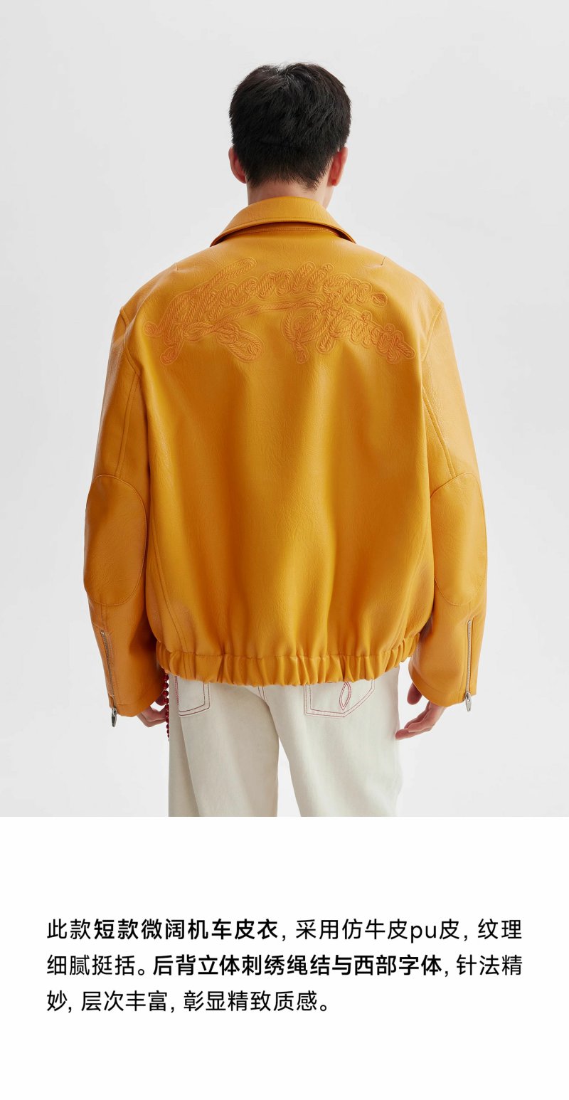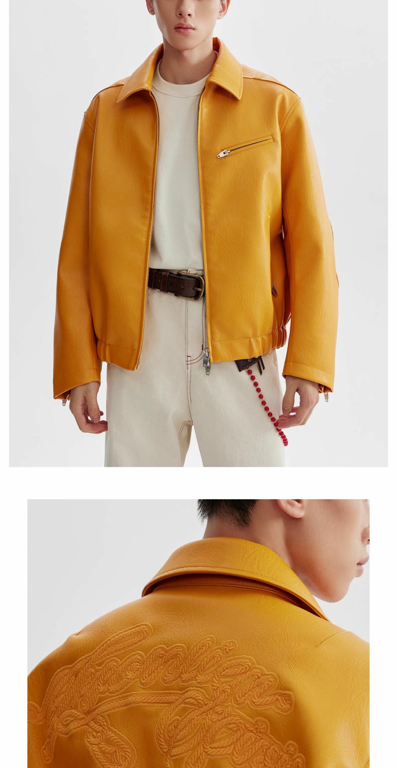 CHINISM赤尘 pu皮刺绣工装夹克男秋季美式机车防风男士休闲外套