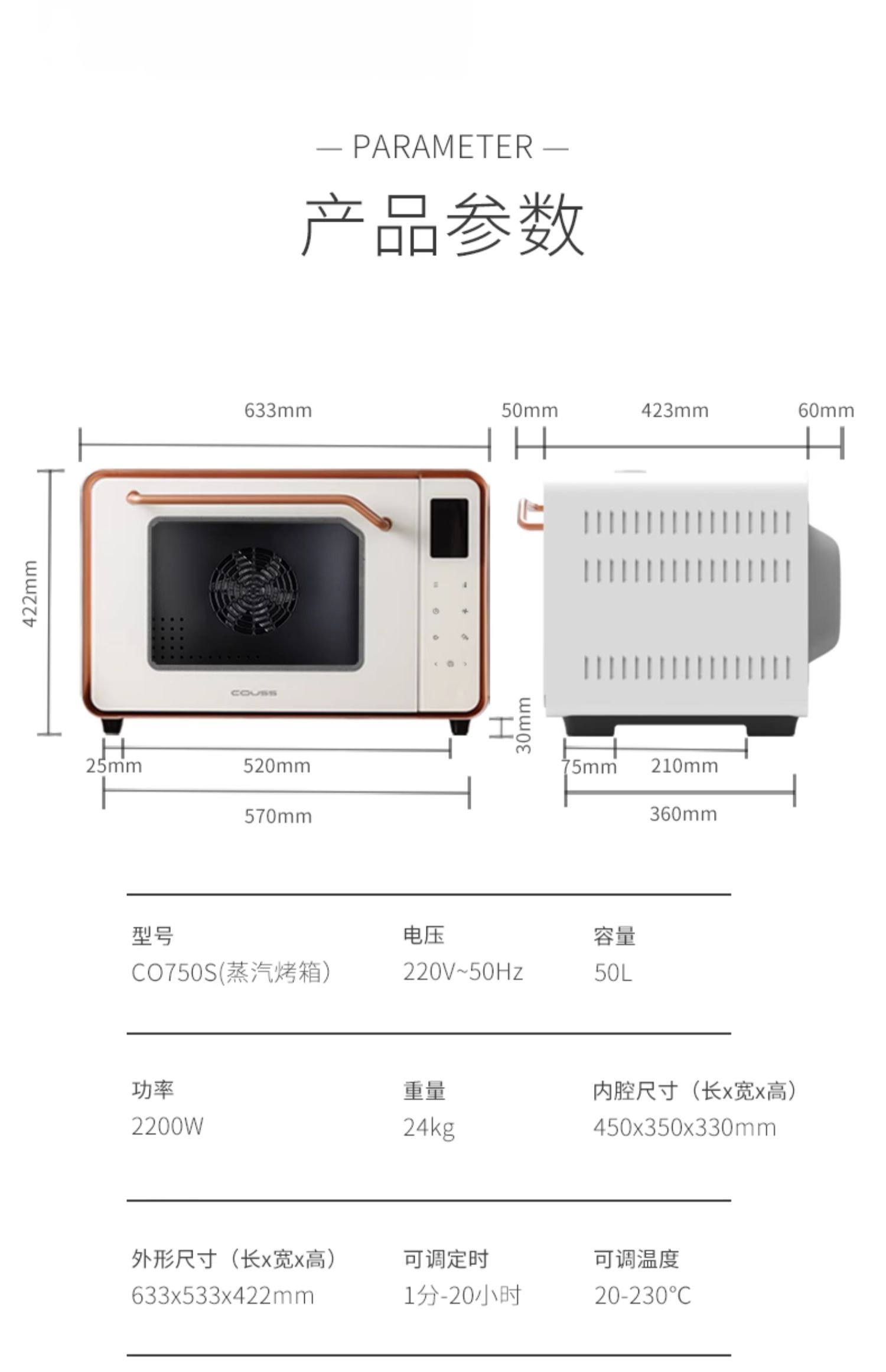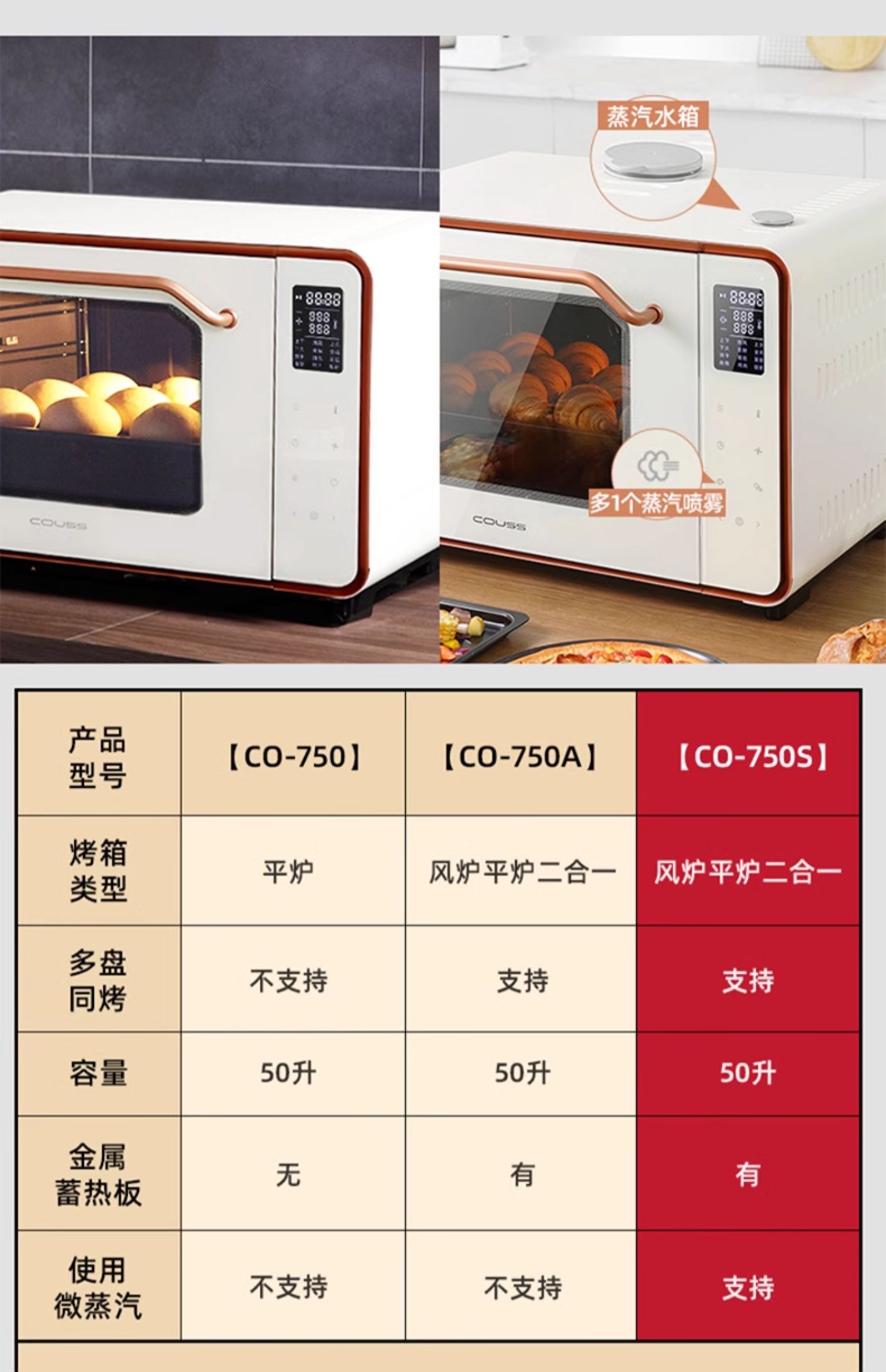 【风炉平炉带蒸汽】卡士CO750S家用烤箱风炉平炉带蒸汽50升大容量多功能发酵烘焙专用