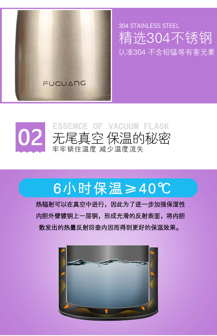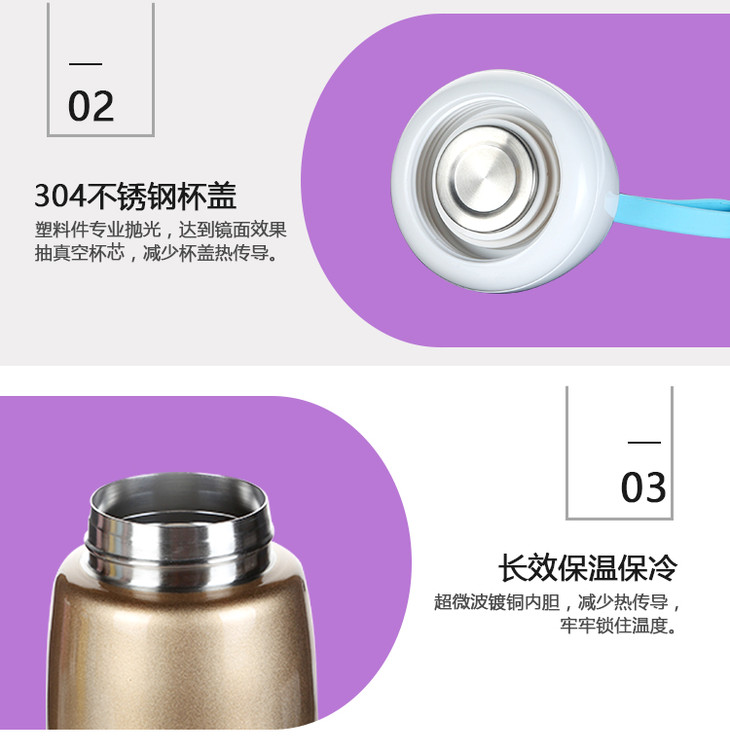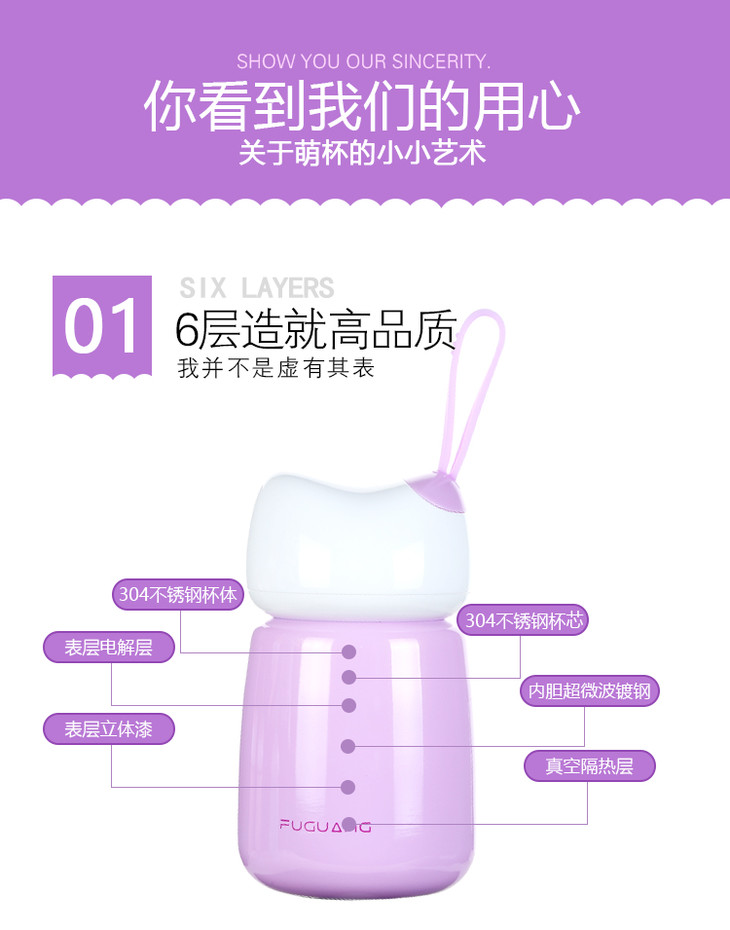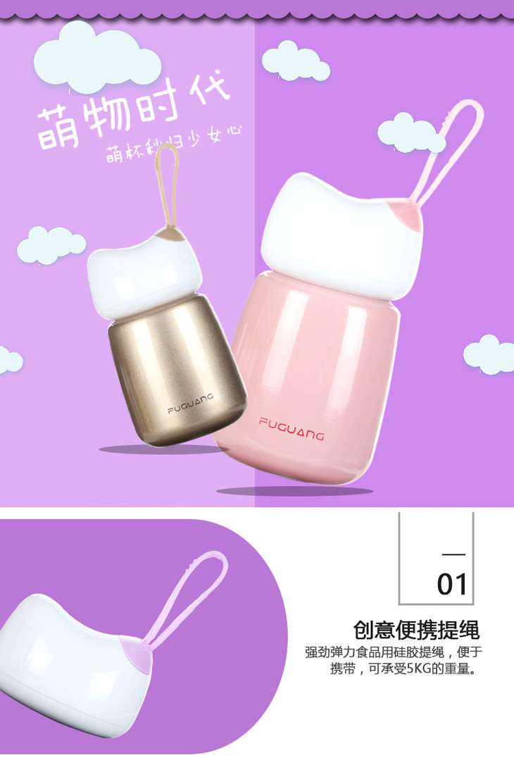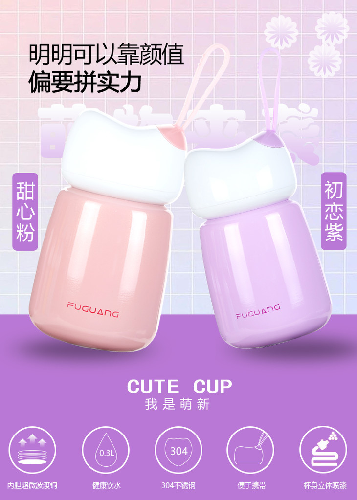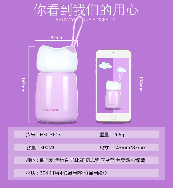 富光炫彩猫不锈钢保温杯FGL-3615(紫,绿,粉) 300ML
