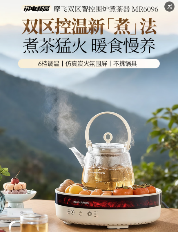 摩飞电器(Morphyrichards)全玻璃养生壶 多功能围炉煮茶电陶炉煮茶器煮茶炉多功能泡茶蒸茶器不挑器具360°环状煨烤MR6096灰