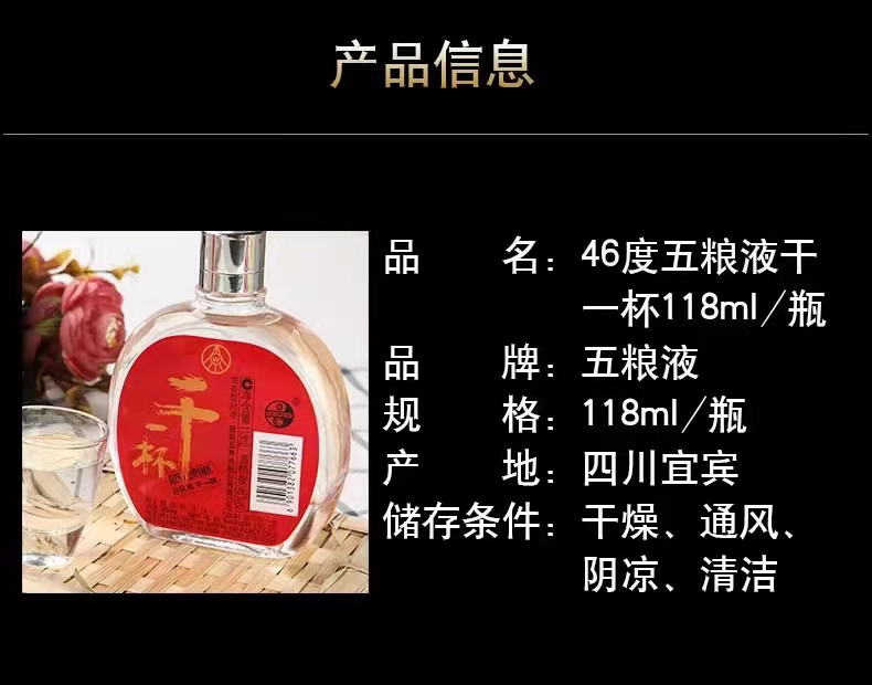 五粮液干一杯彩瓶46度整箱118ml*24瓶