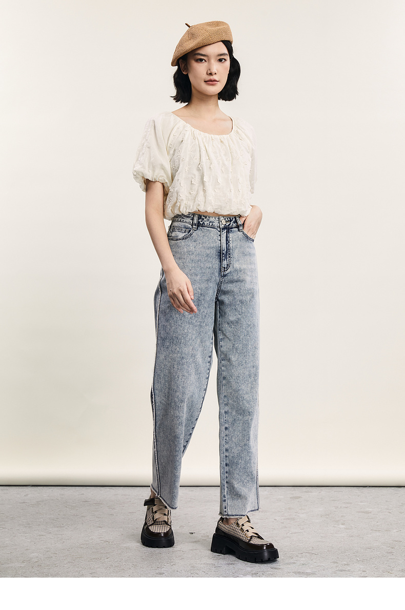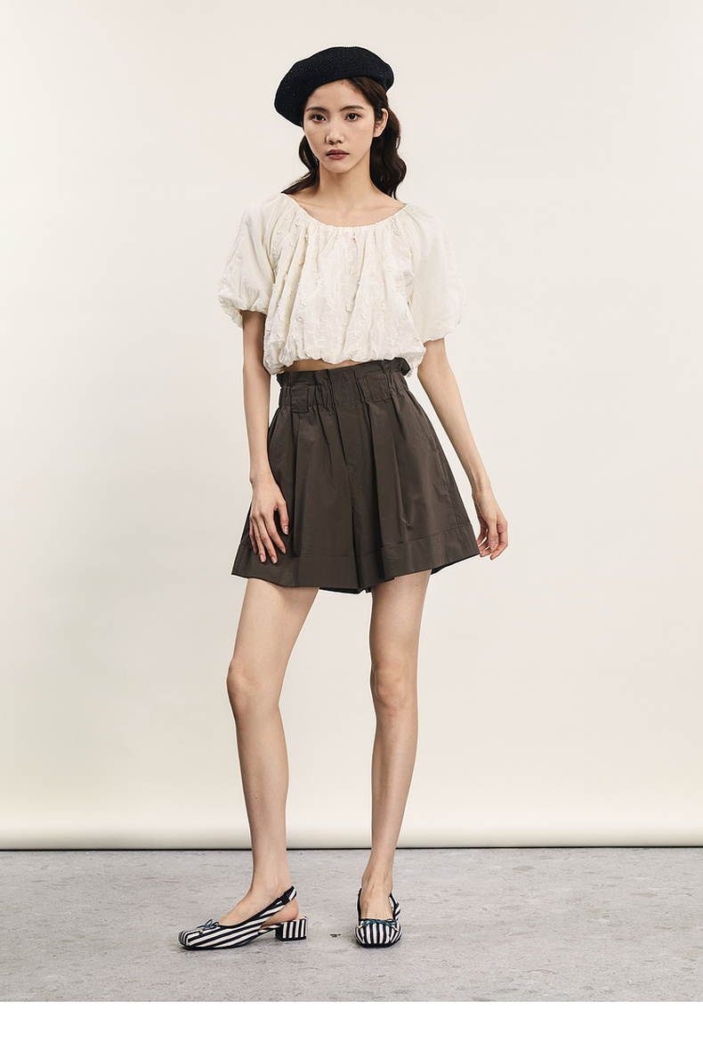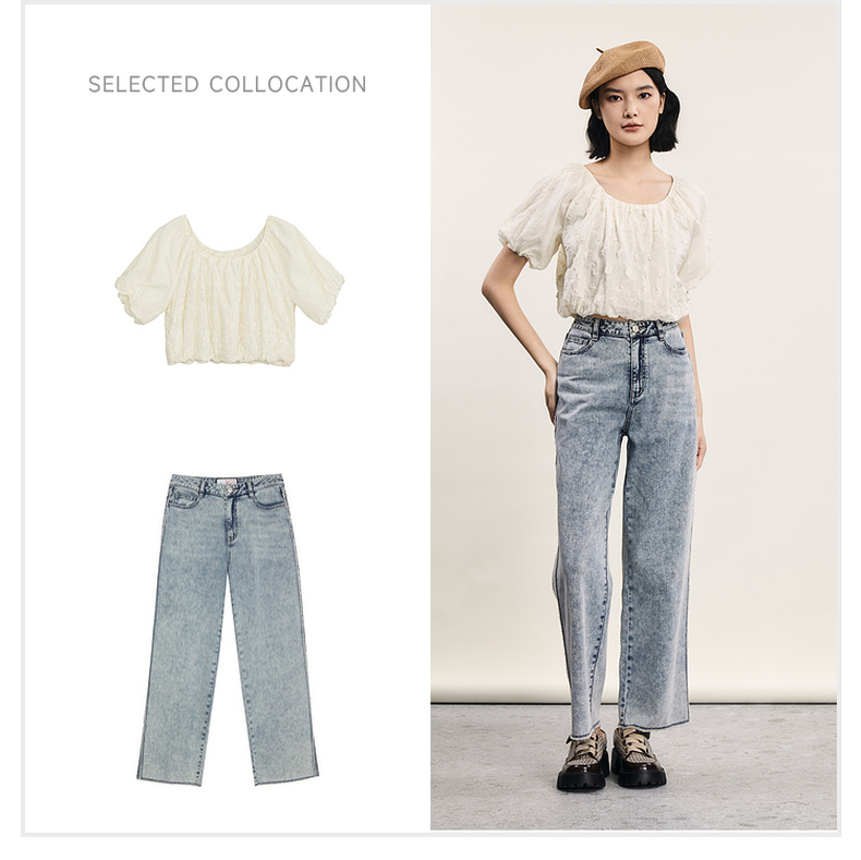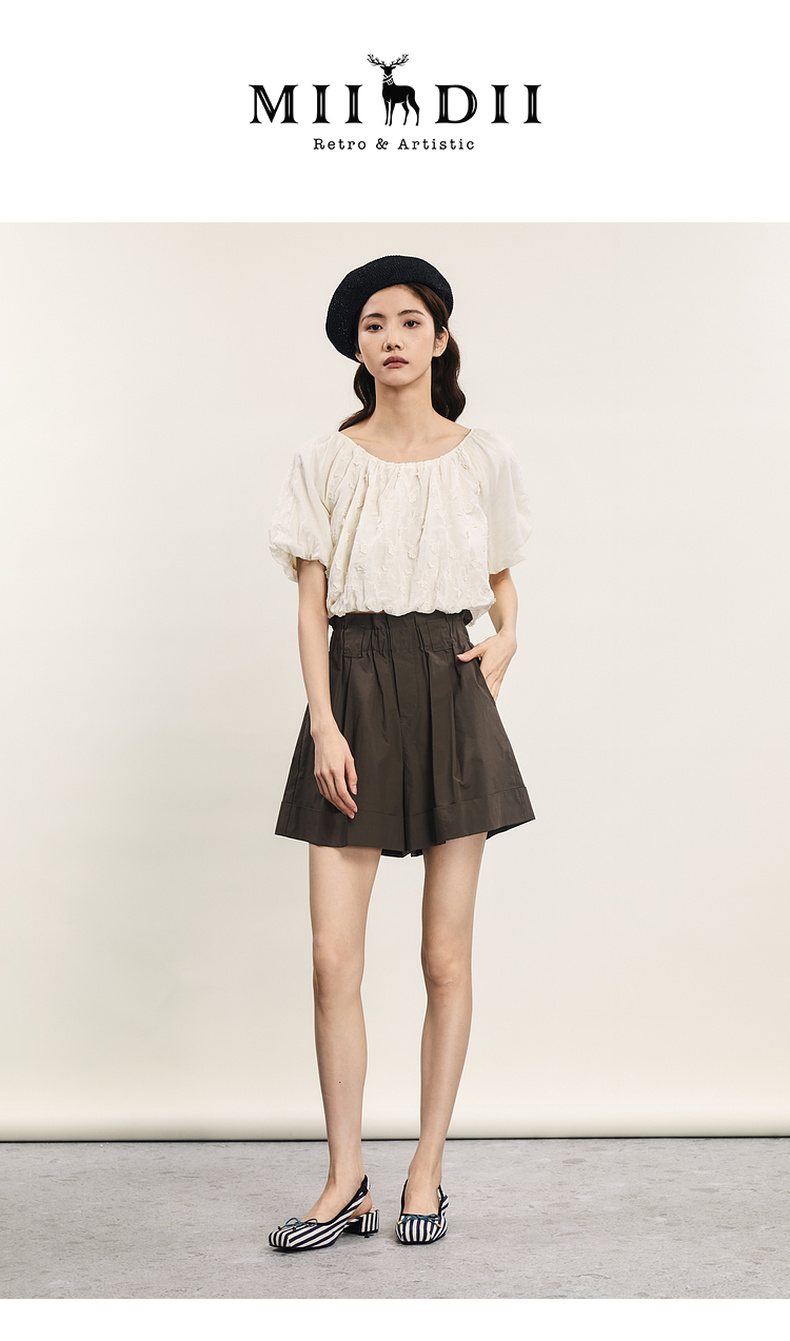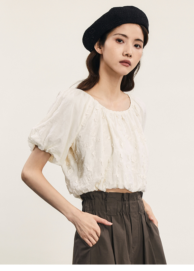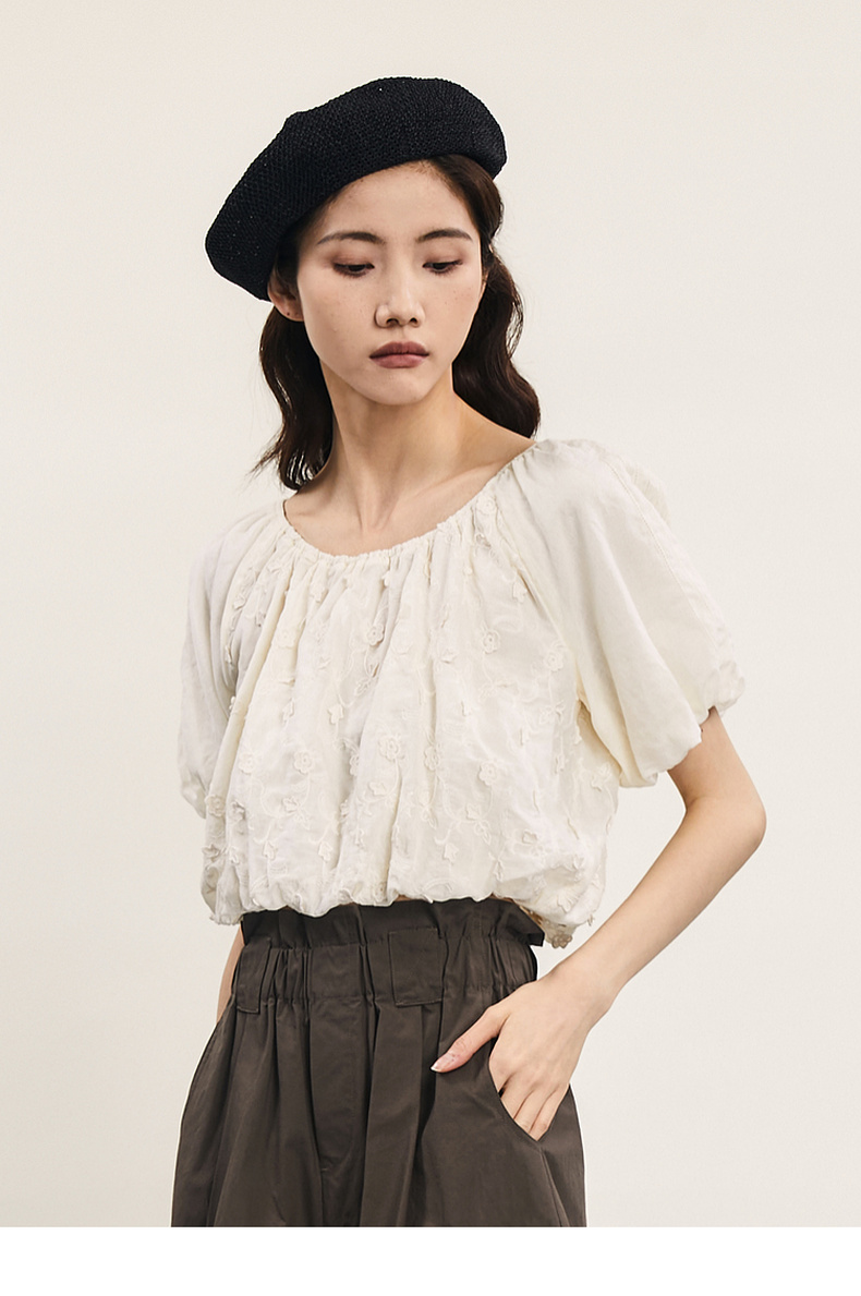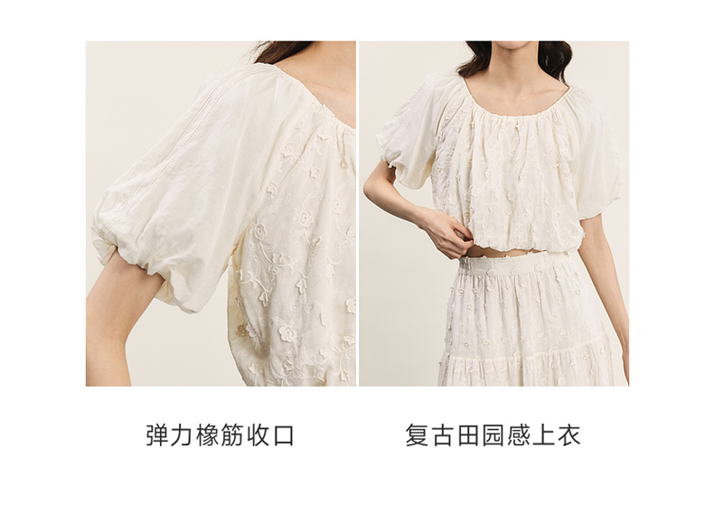 谜底短款上衣女士2024年夏季新品复古田园风宽松T型小衫242MS0514