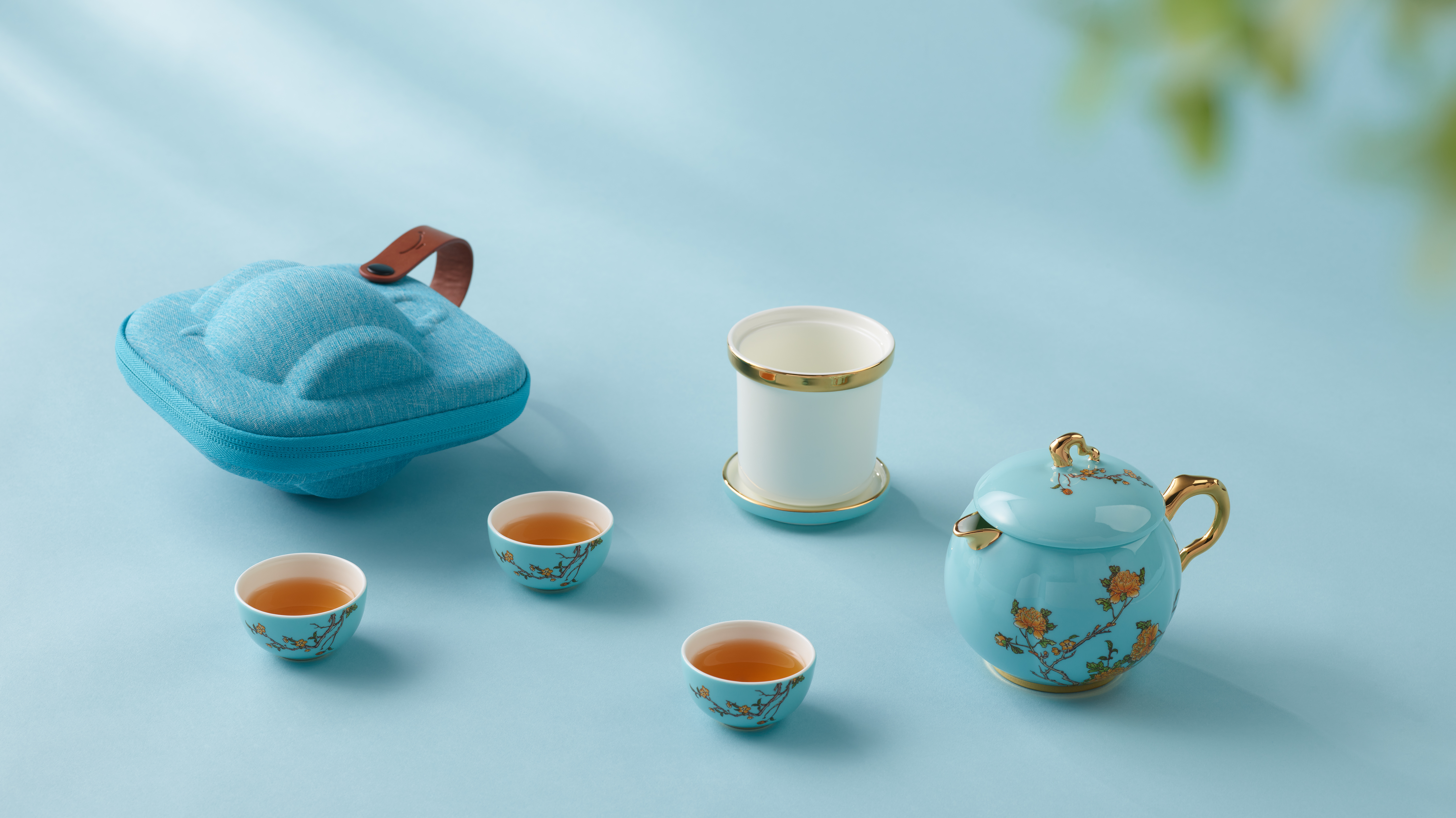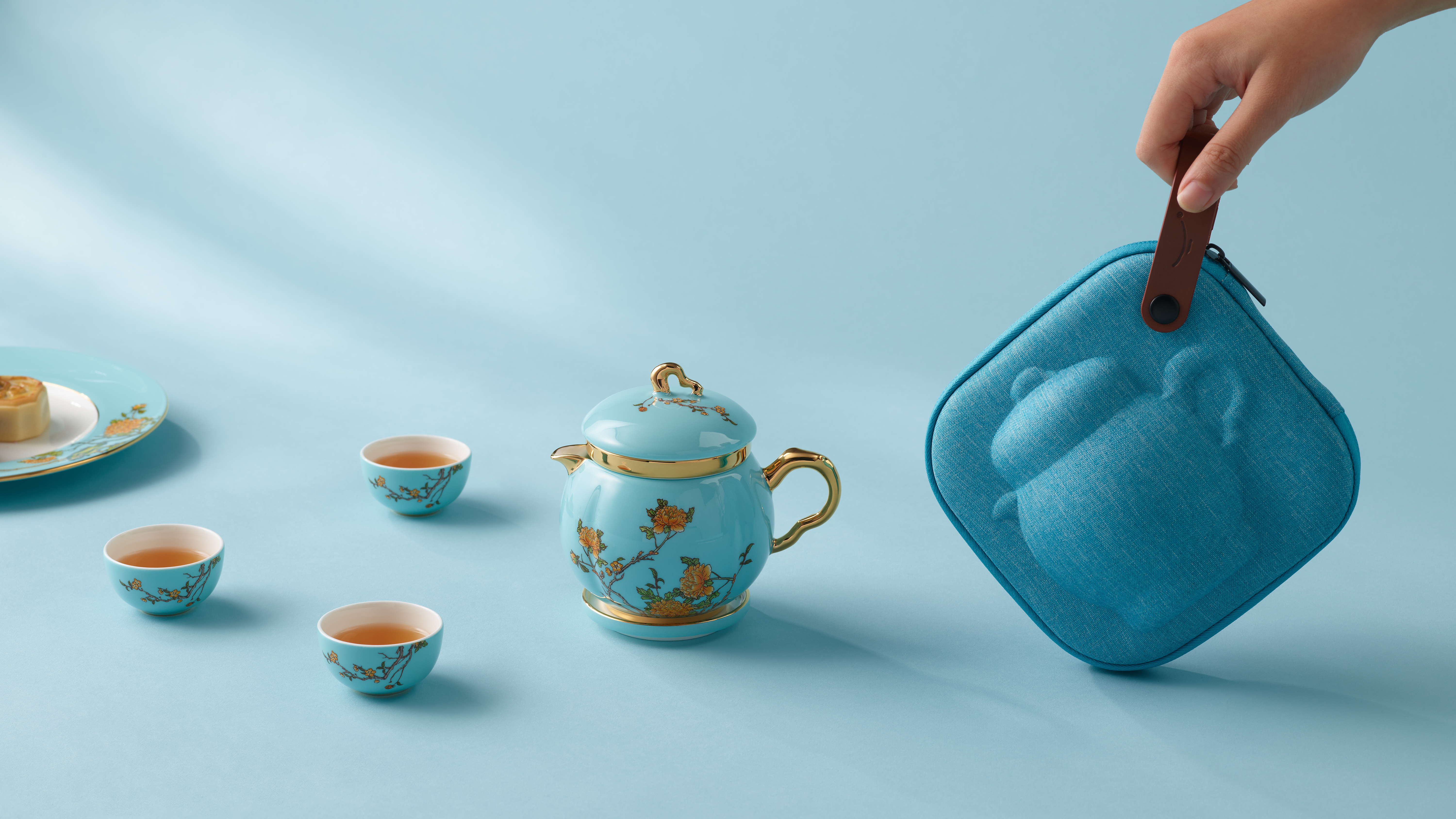国瓷永丰源西湖蓝7头旅行茶具300ml YFY