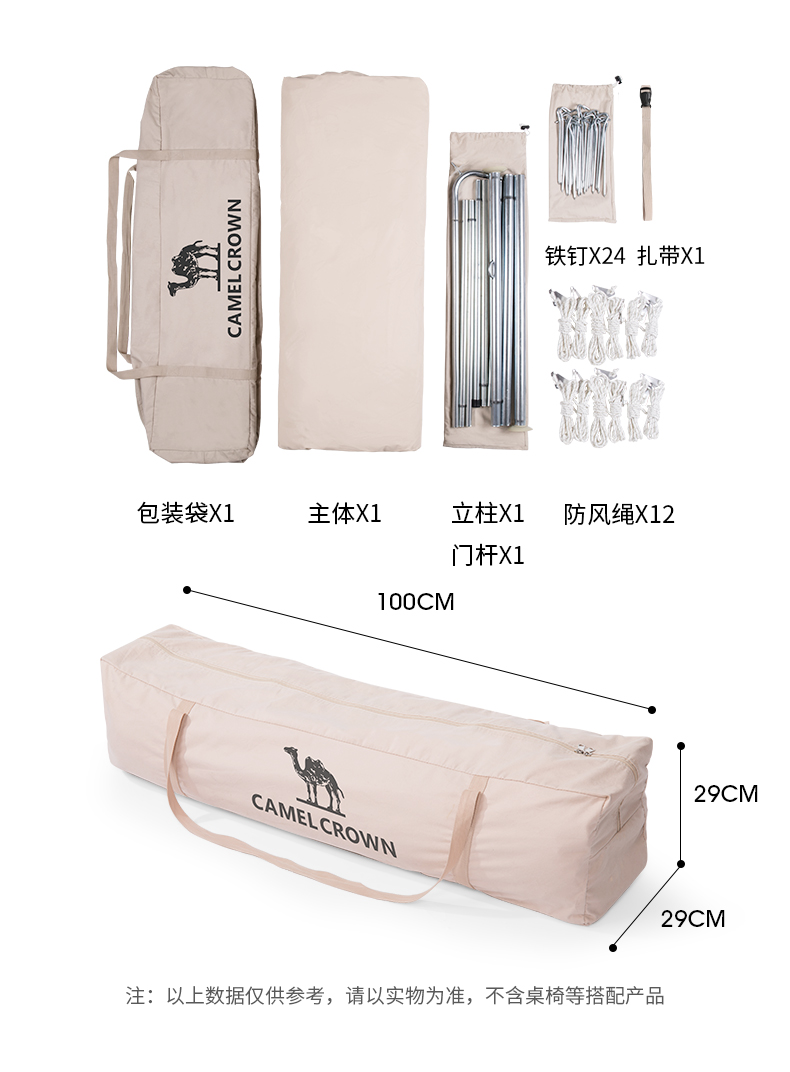 【隐】骆驼户外精致露营帐篷便携式折叠金字塔蒙古包棉布印第安帐A1W3GC101_A2S31G101