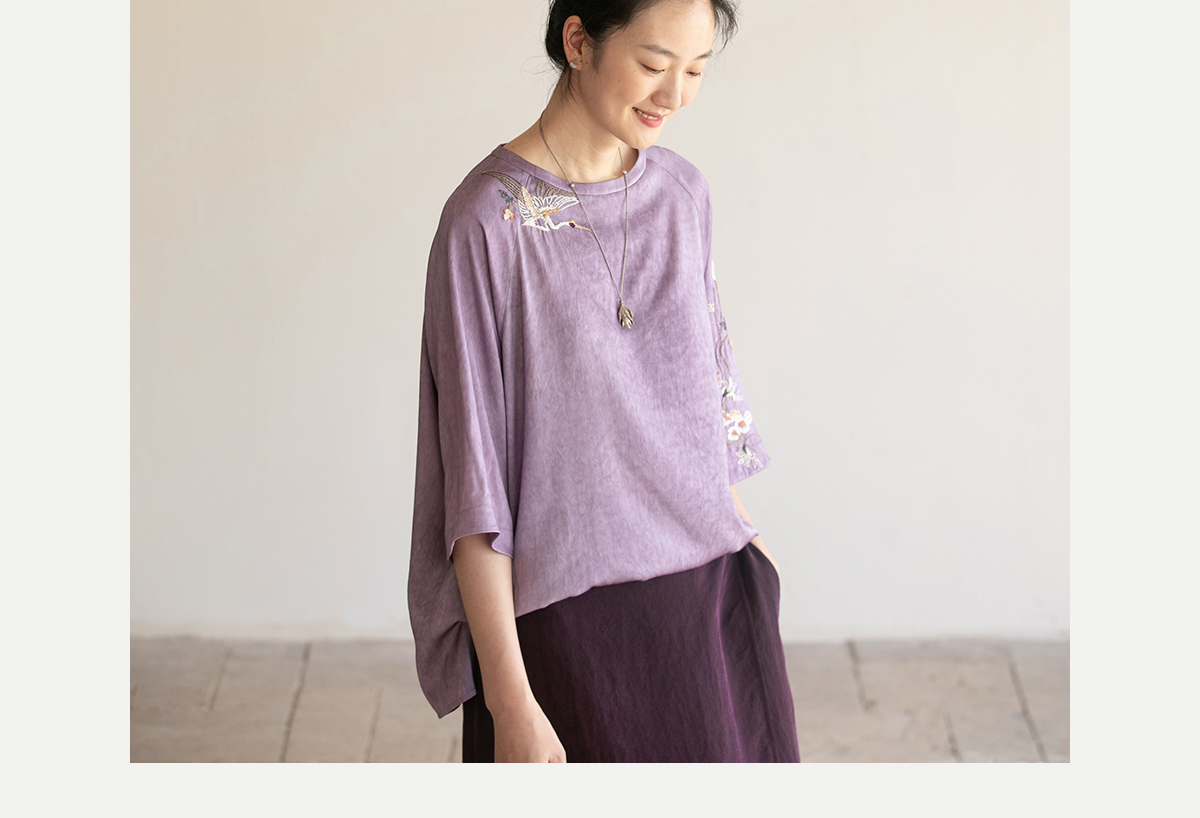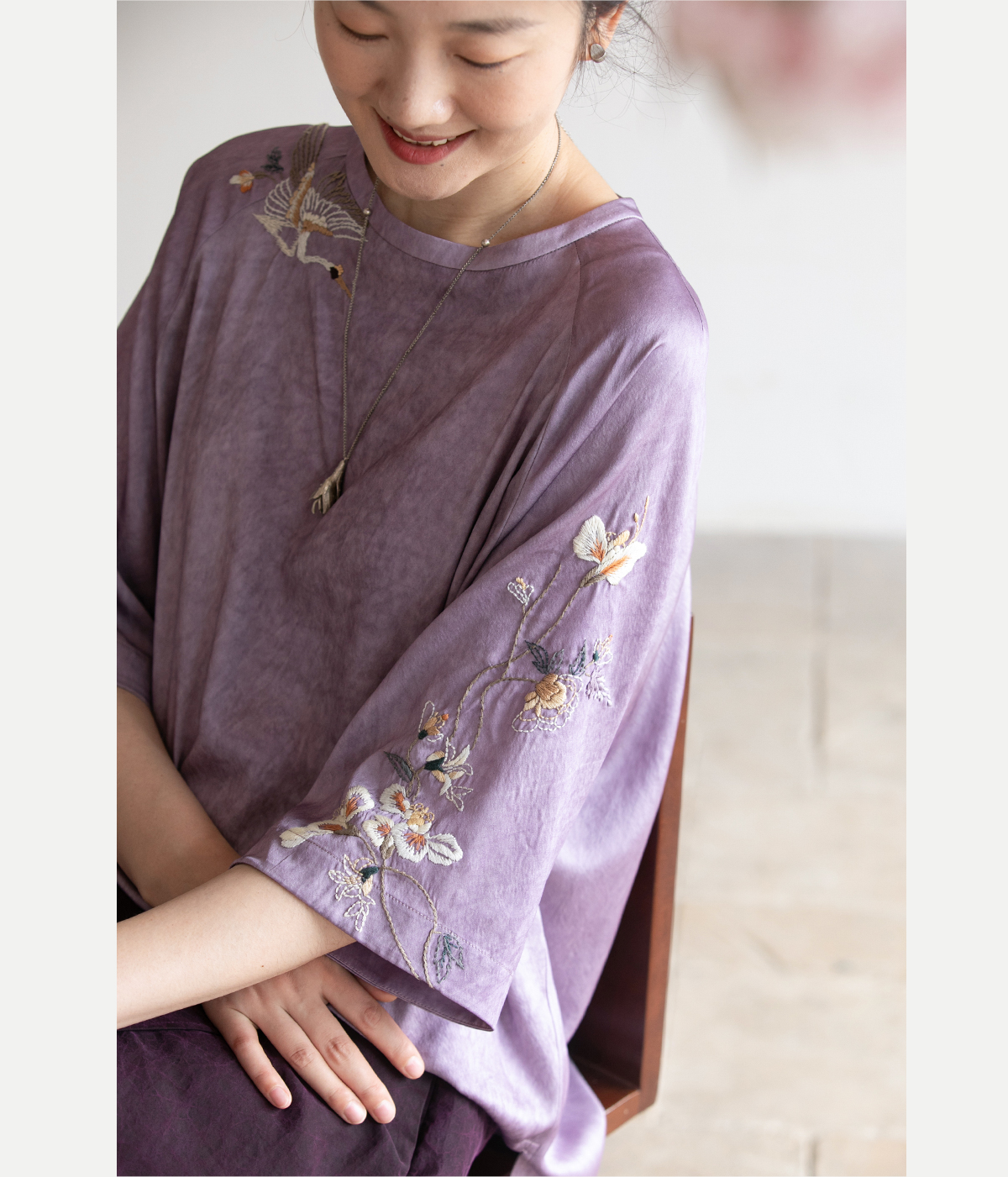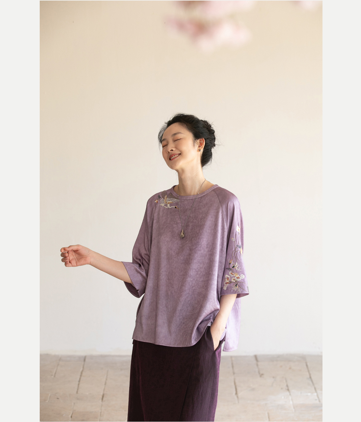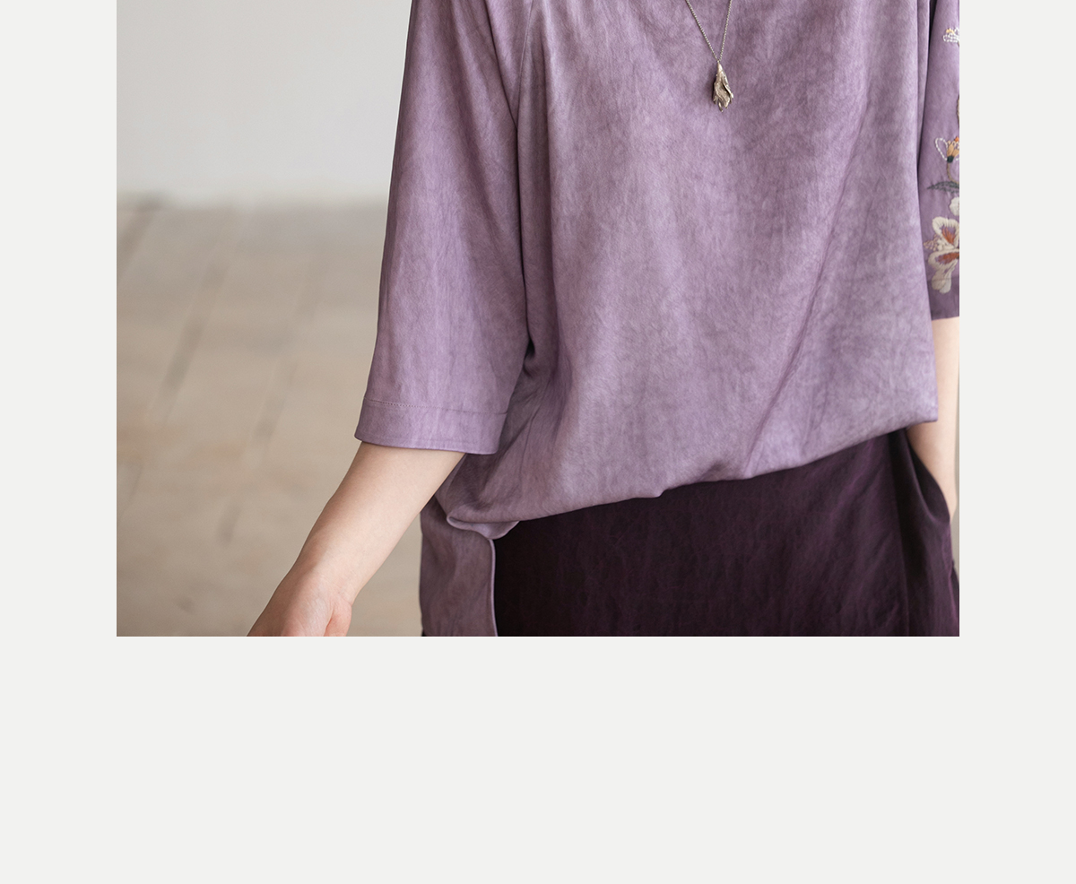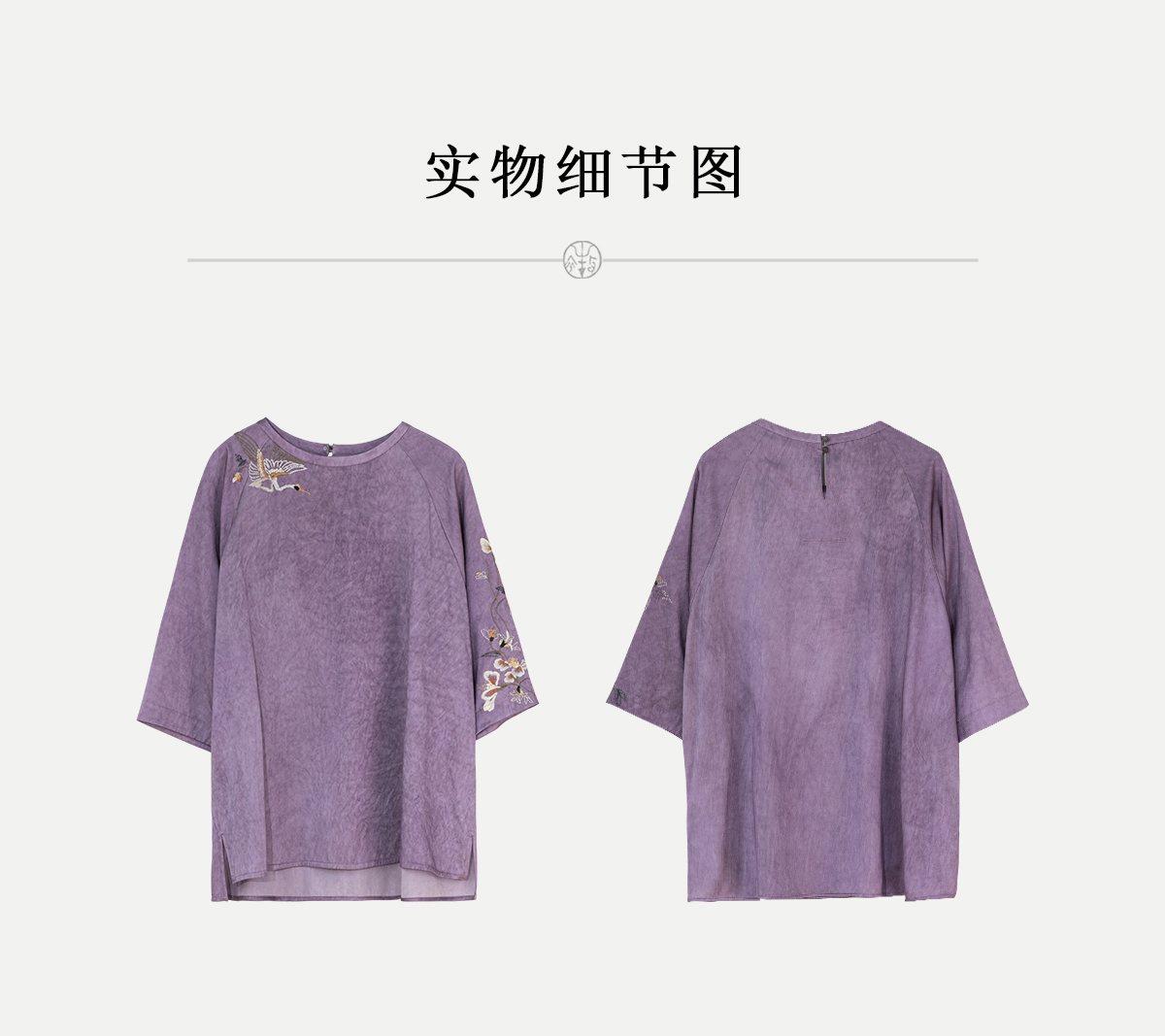 牧衣游原创 刺绣真丝套头衫轻薄七分袖立领复古新中式上衣 非晚
