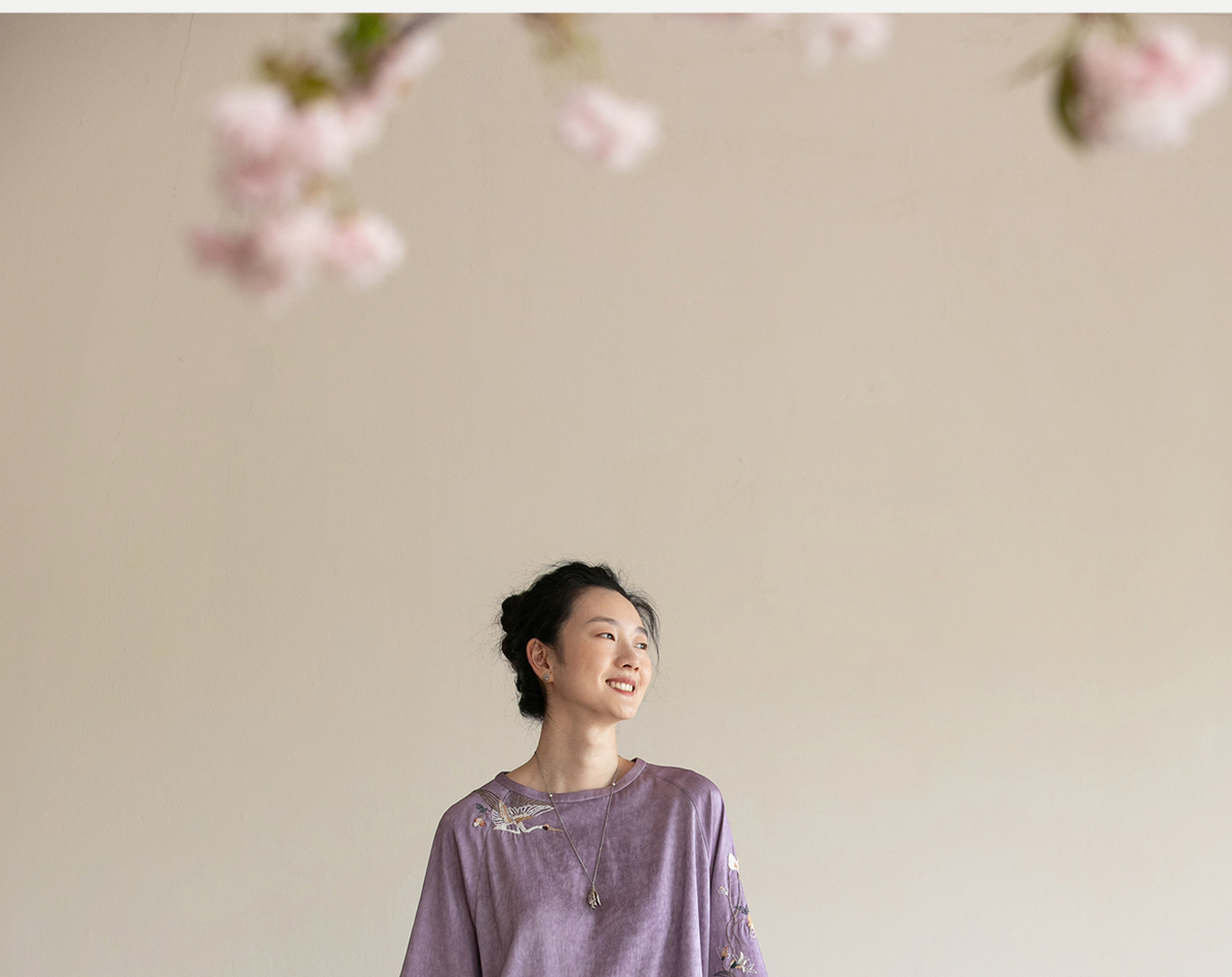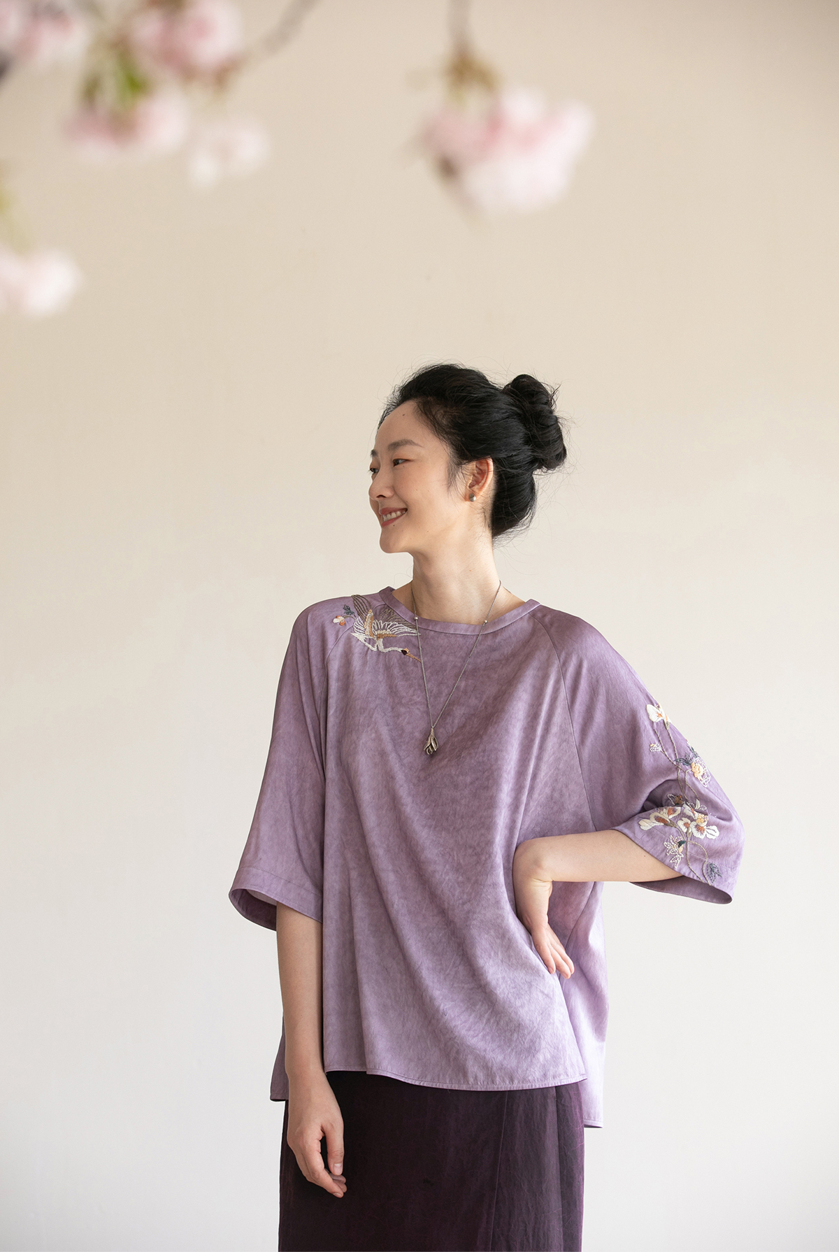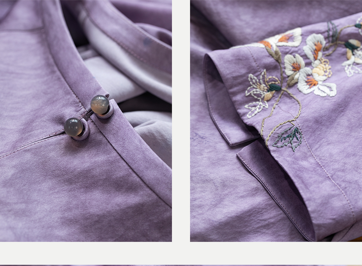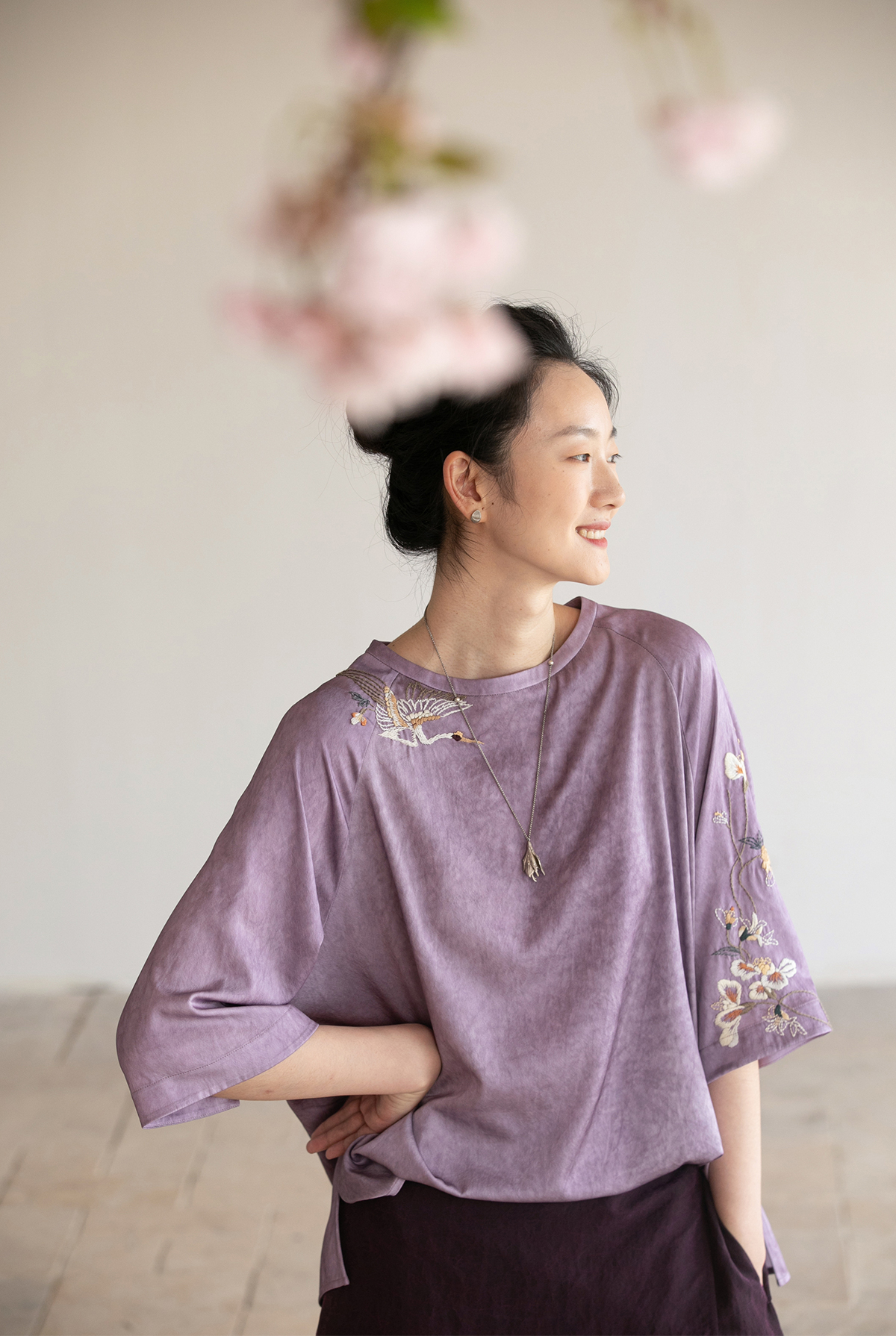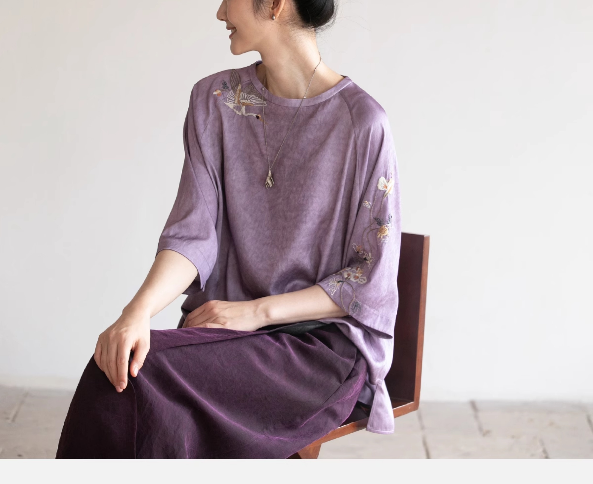 牧衣游原创 刺绣真丝套头衫轻薄七分袖立领复古新中式上衣 非晚