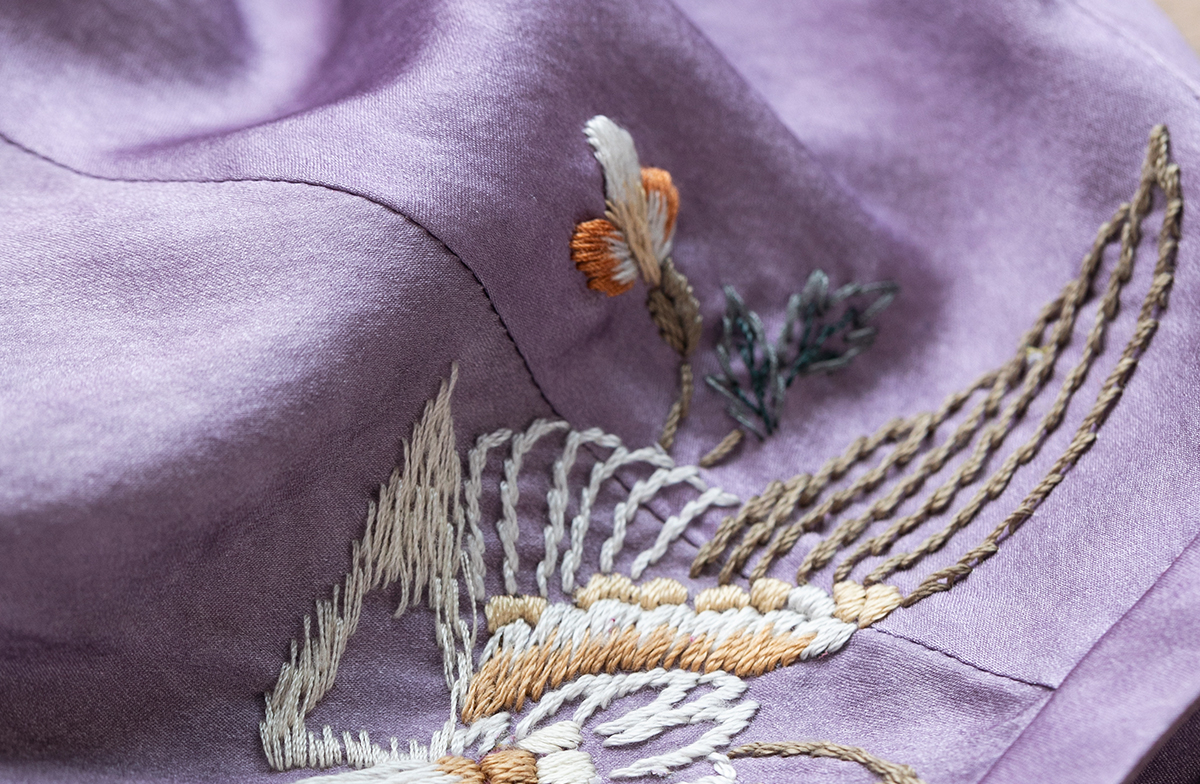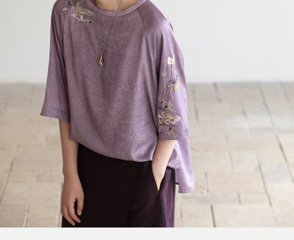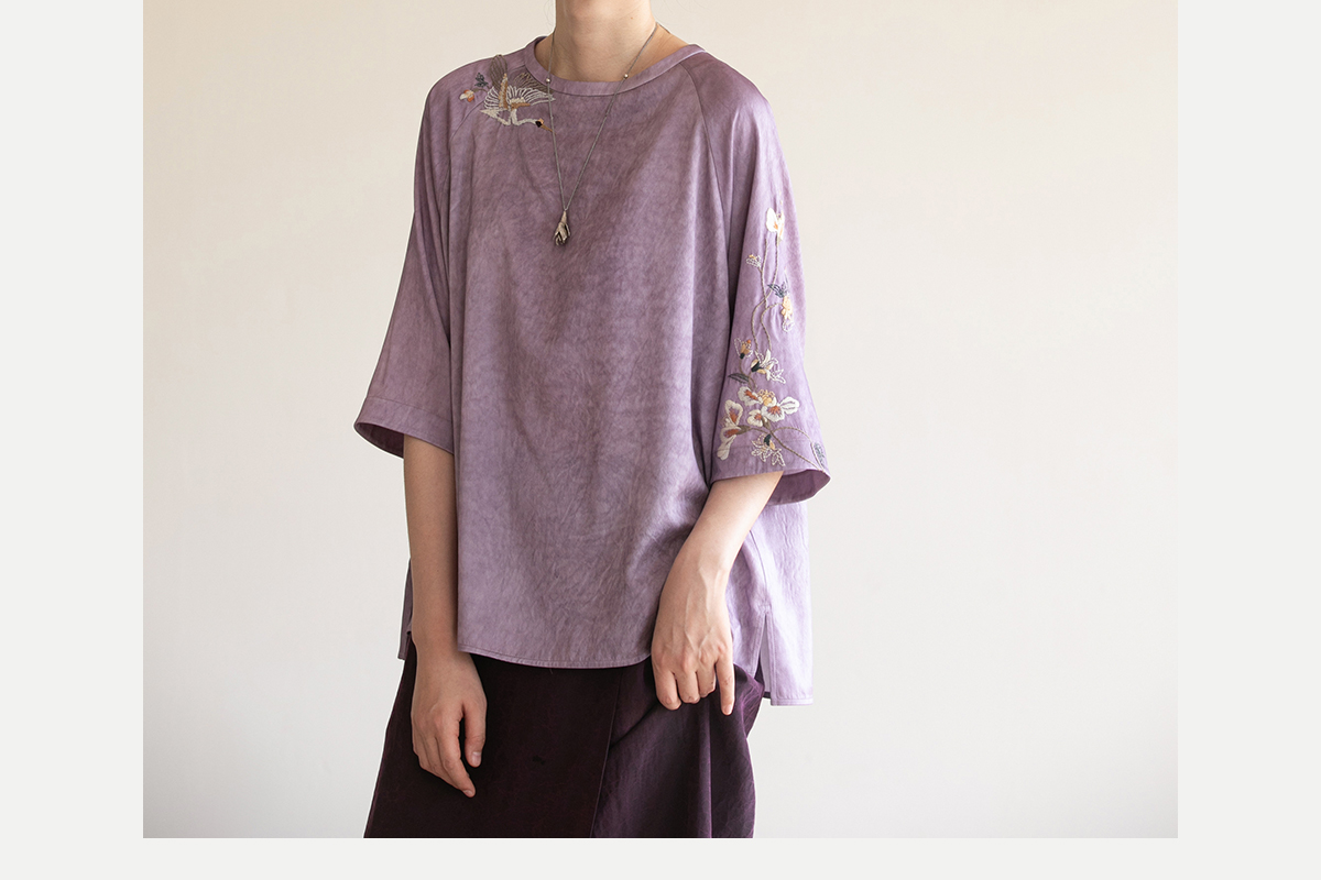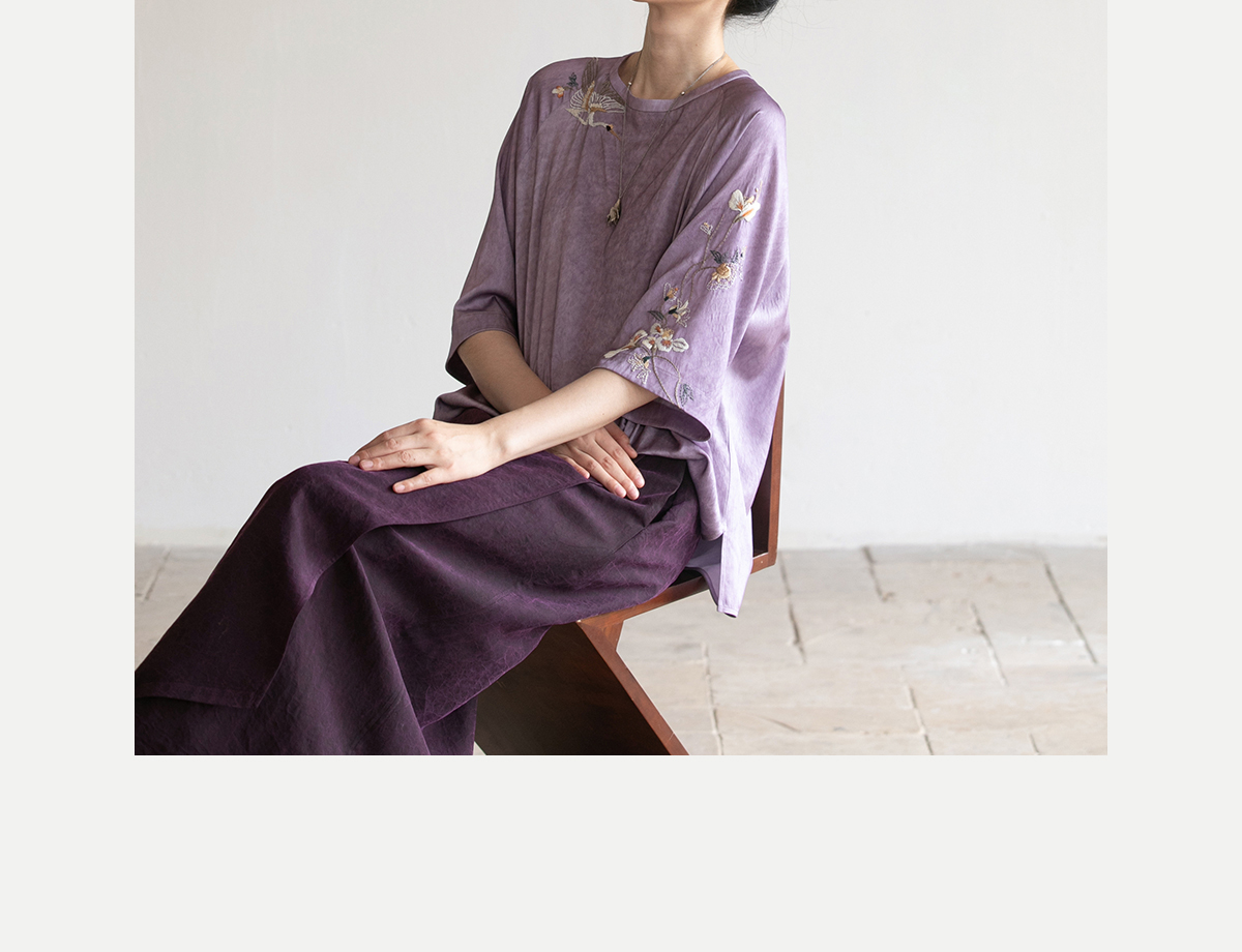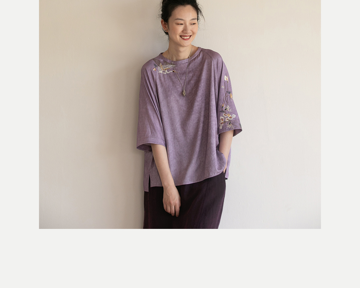 牧衣游原创 刺绣真丝套头衫轻薄七分袖立领复古新中式上衣 非晚