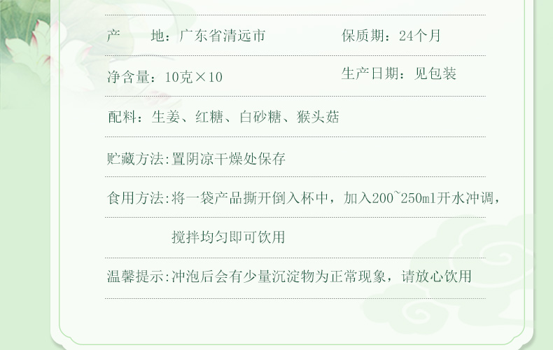 【清远帮扶】清远林中宝猴头菇红糖姜茶10g*10袋
