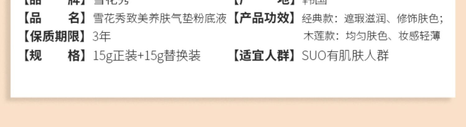 韩国雪花秀气垫BB霜 经典款附送替换装