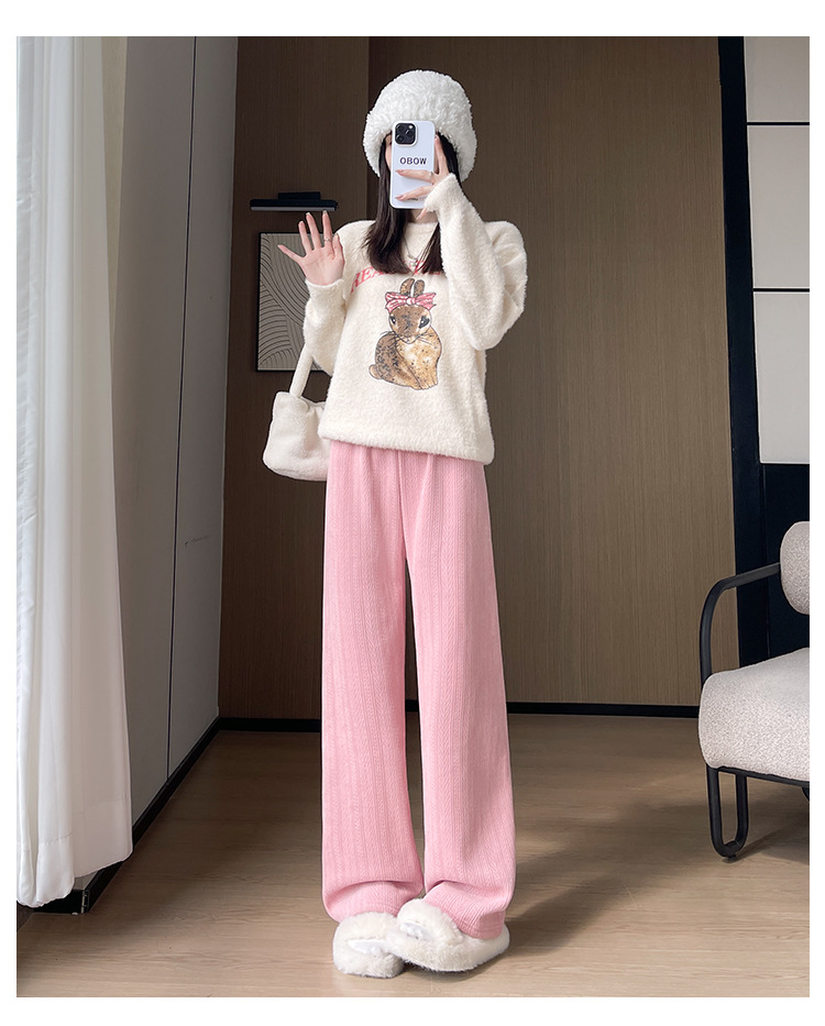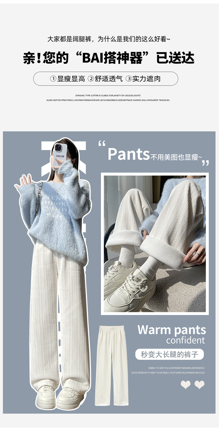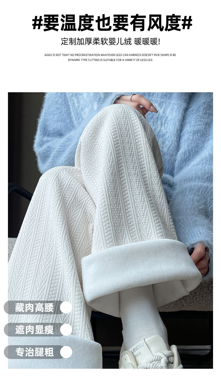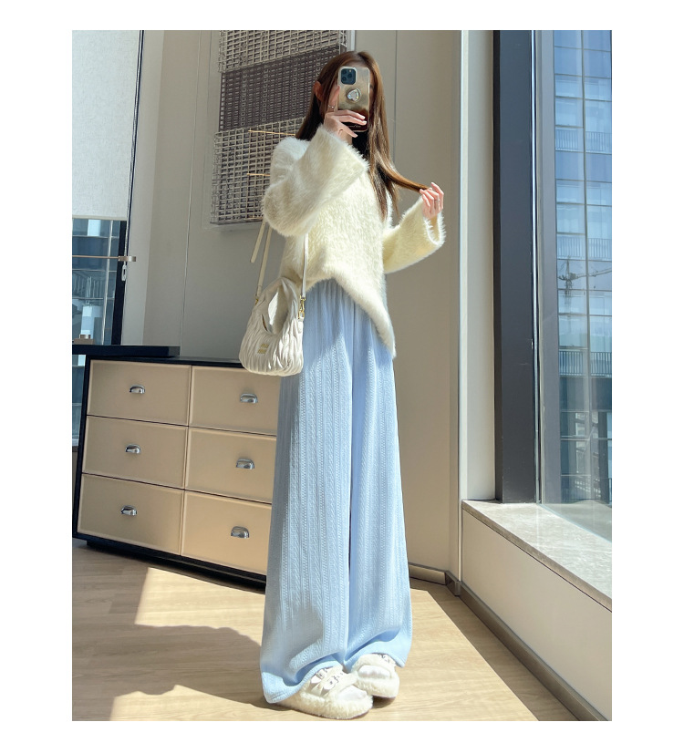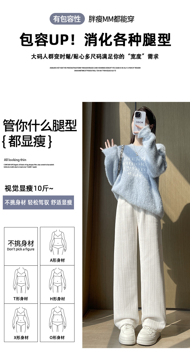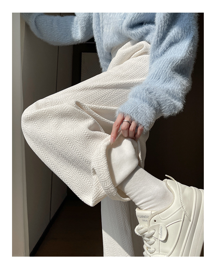 麦穗雪尼尔阔腿裤女2025秋冬季高腰显瘦休闲加绒加厚针织白色裤子
