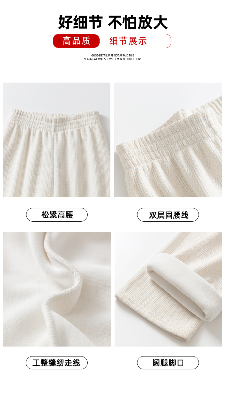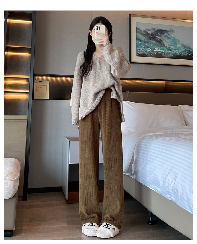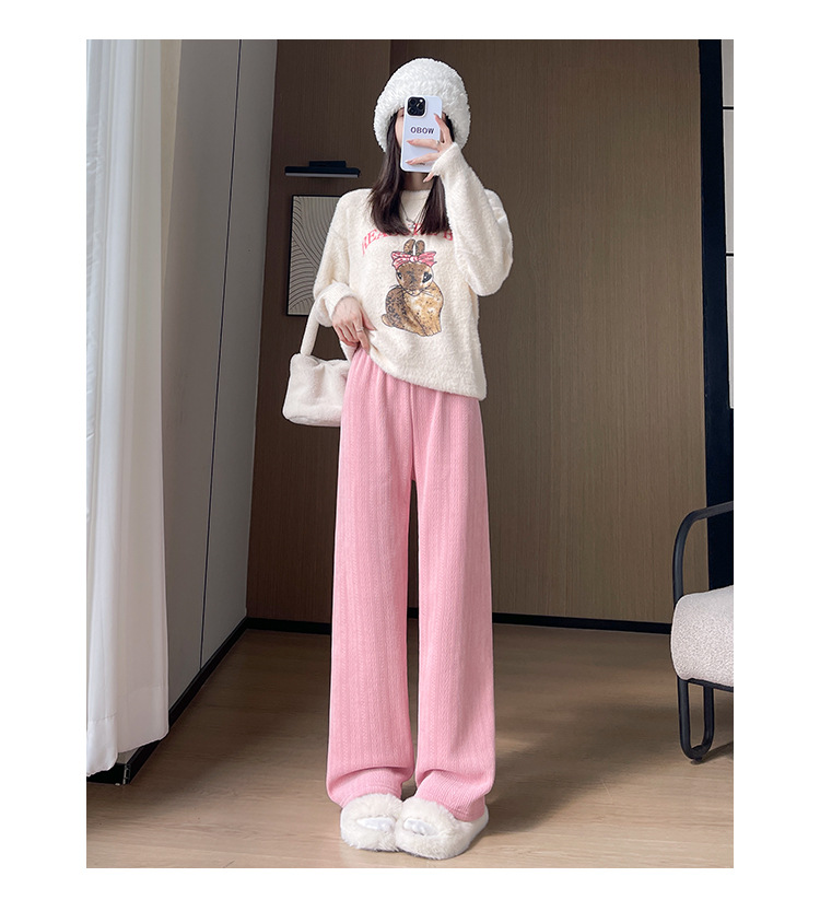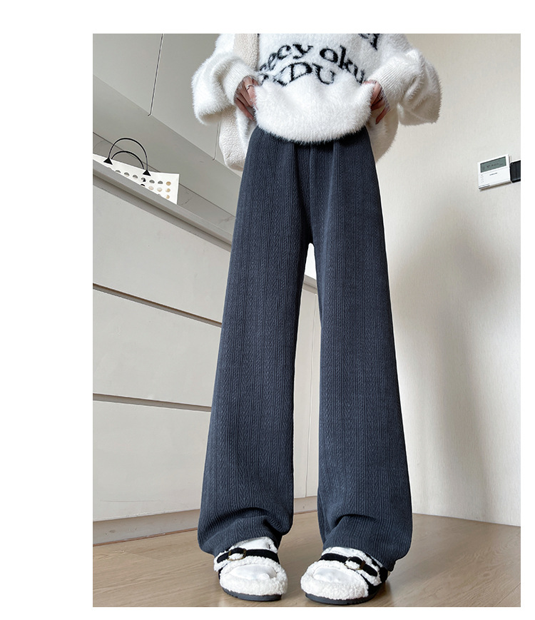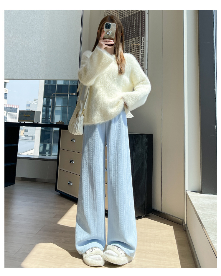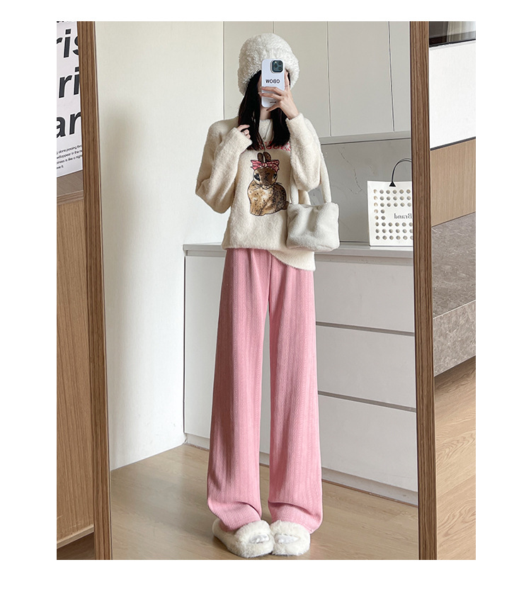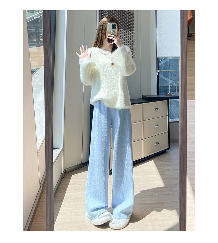 麦穗雪尼尔阔腿裤女2025秋冬季高腰显瘦休闲加绒加厚针织白色裤子