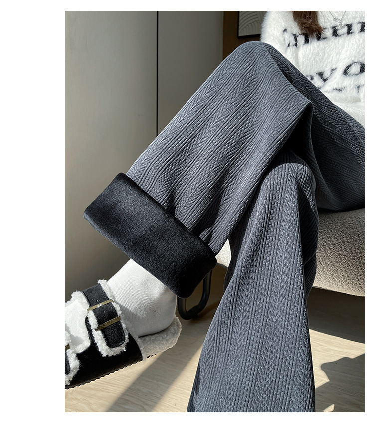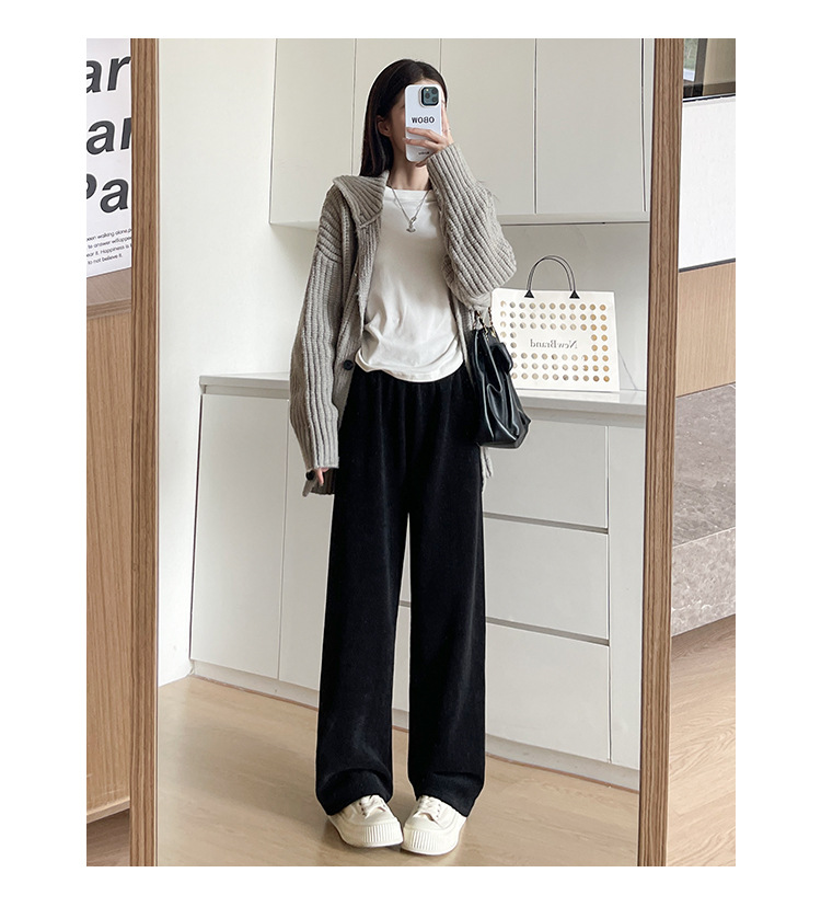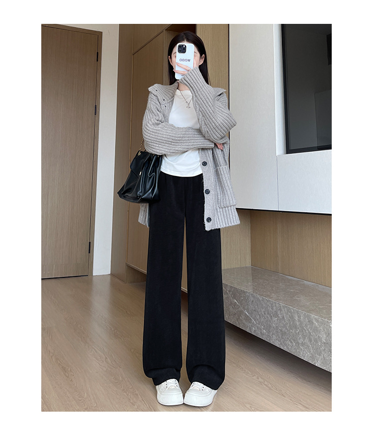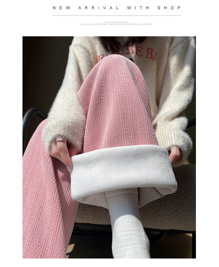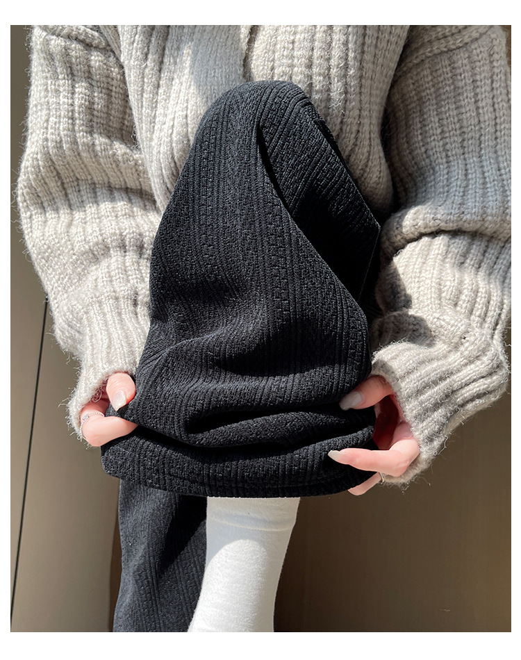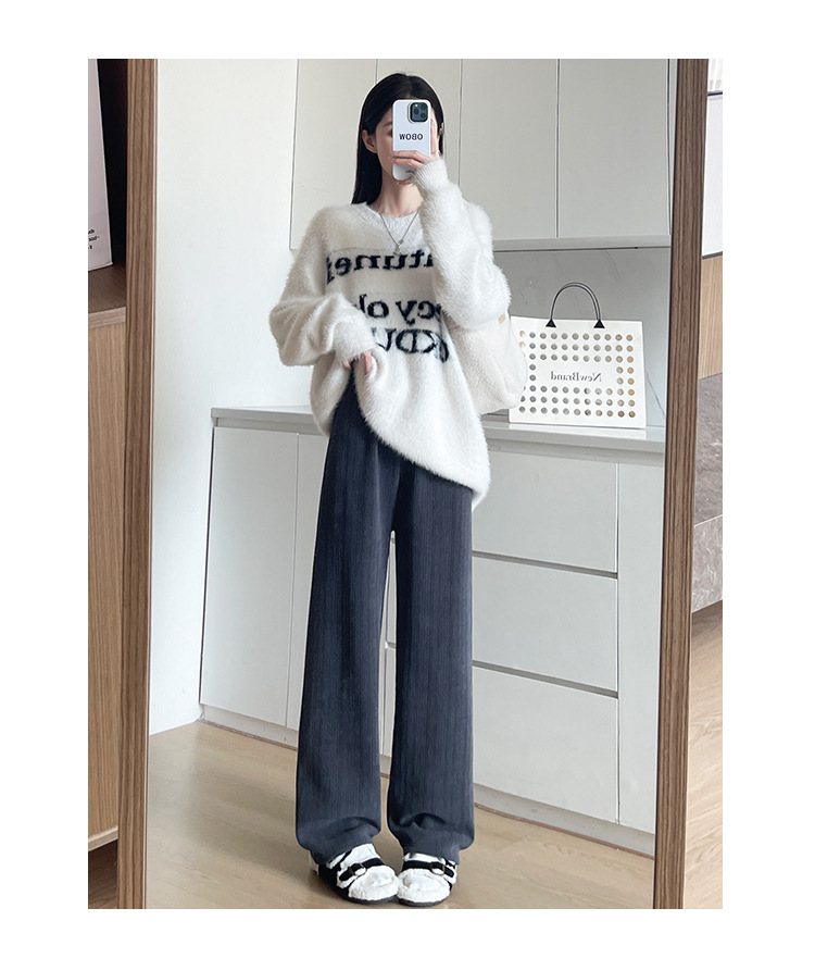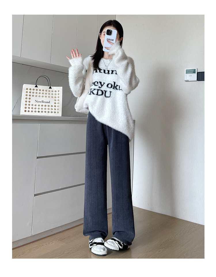 麦穗雪尼尔阔腿裤女2025秋冬季高腰显瘦休闲加绒加厚针织白色裤子