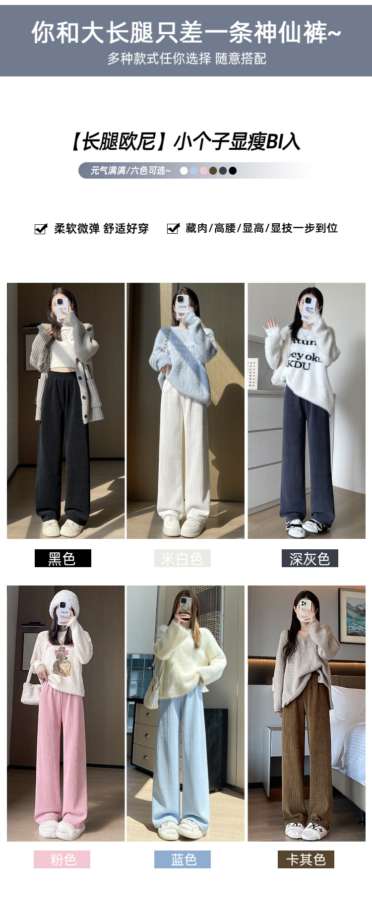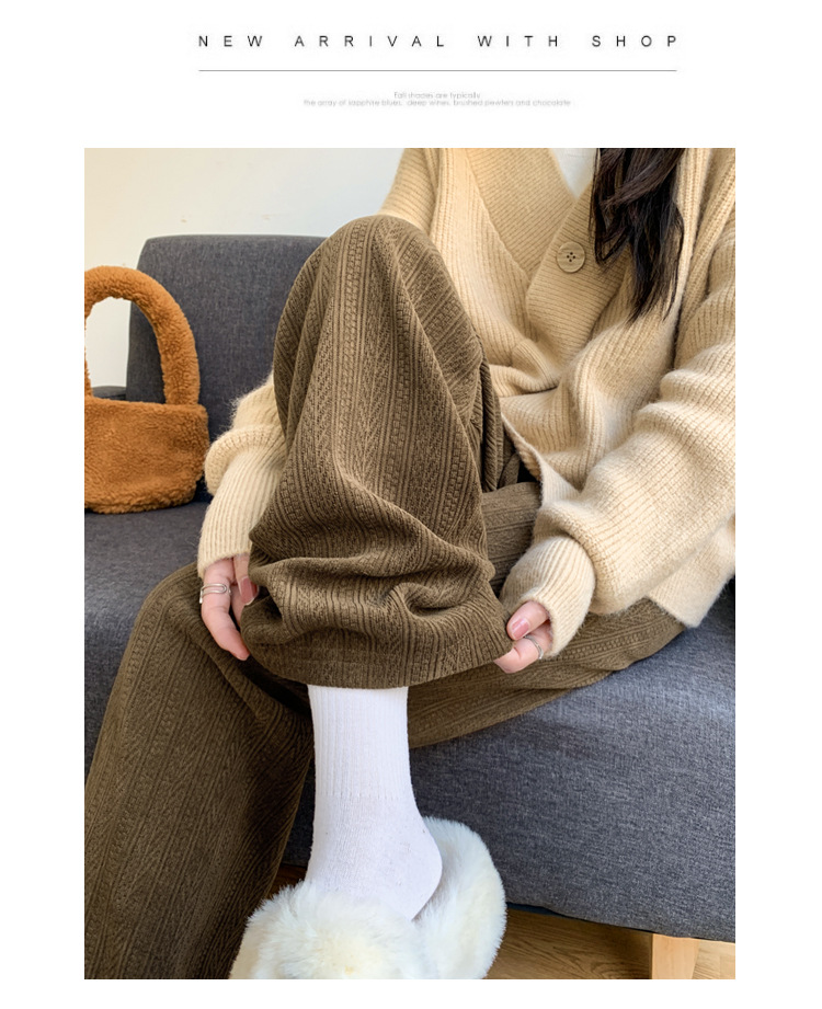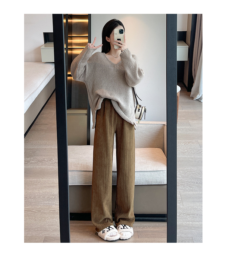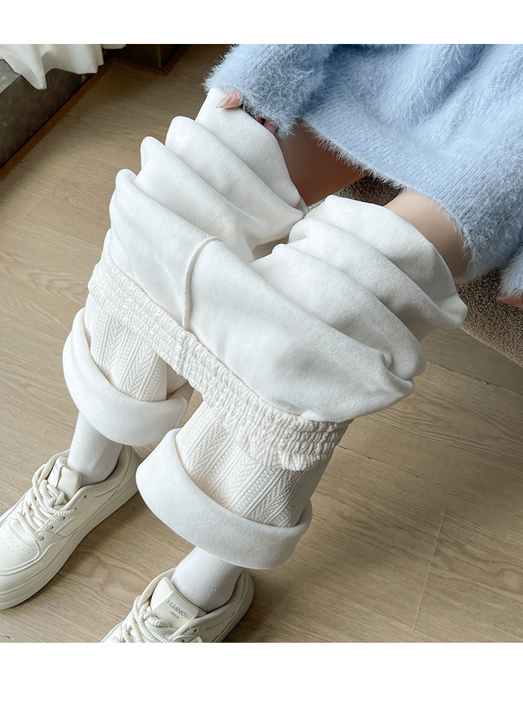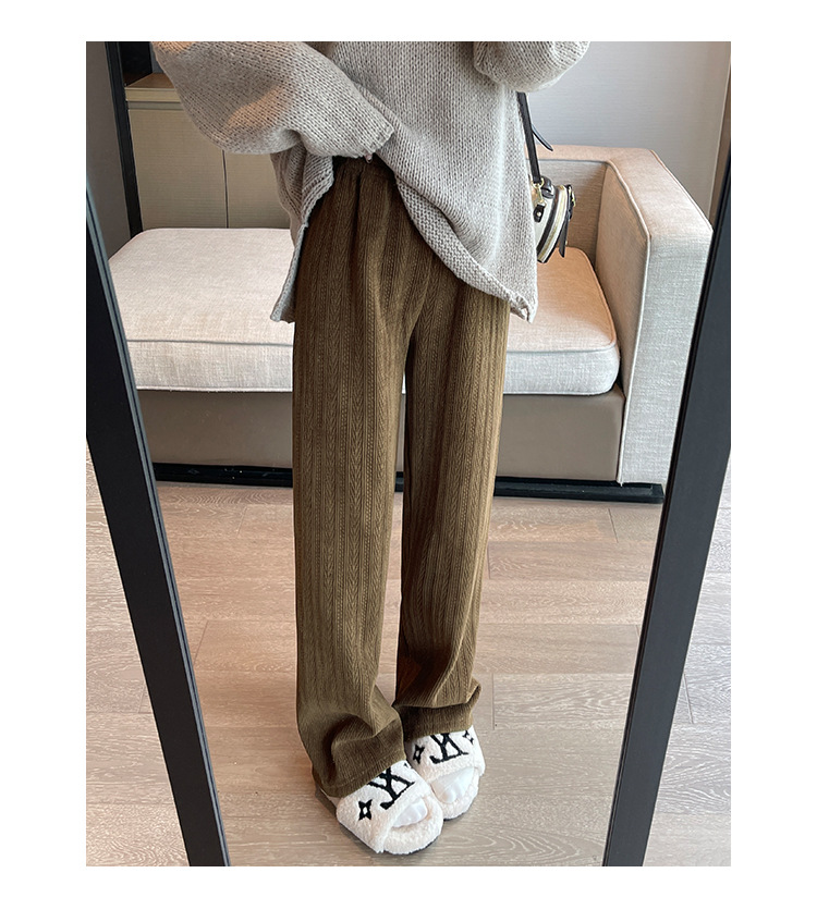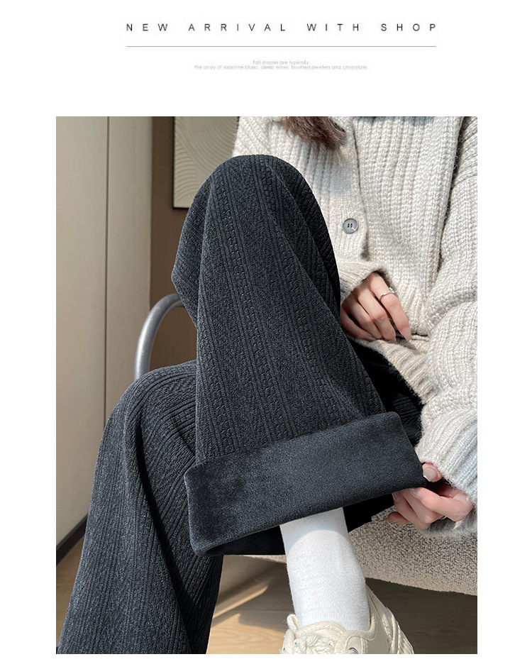 麦穗雪尼尔阔腿裤女2025秋冬季高腰显瘦休闲加绒加厚针织白色裤子