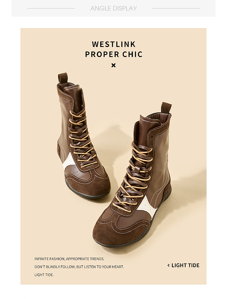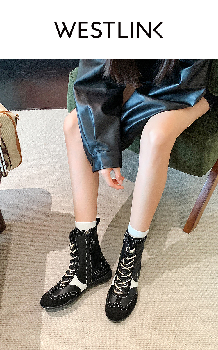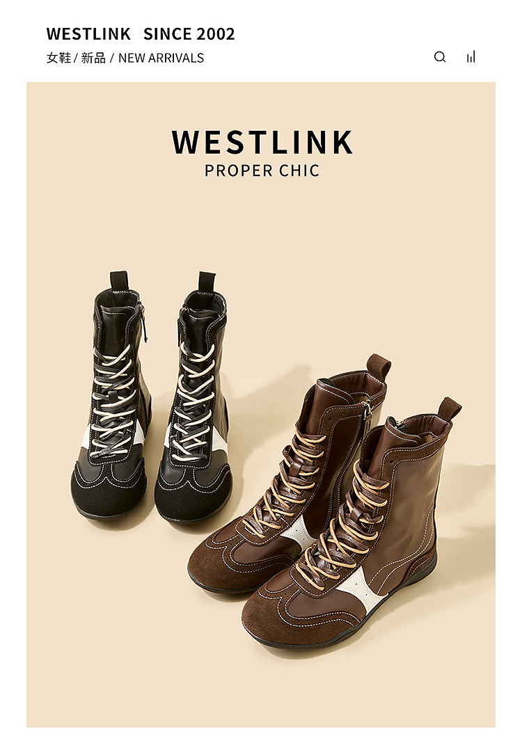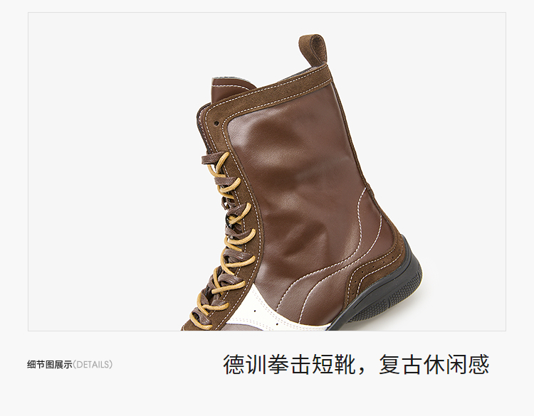 西遇拳击靴短靴女新款秋冬超火复古休闲运动高帮德训鞋马丁靴V1957147