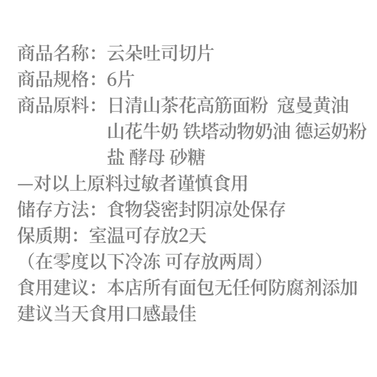 云朵吐司切片(6片)(12:00出货)