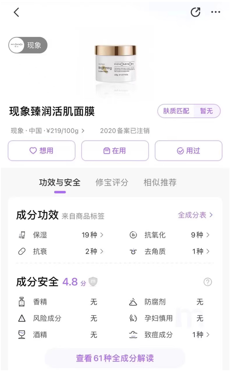 这款现象臻润活肌涂抹面膜的蕞大特点是