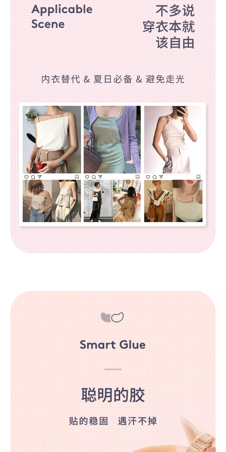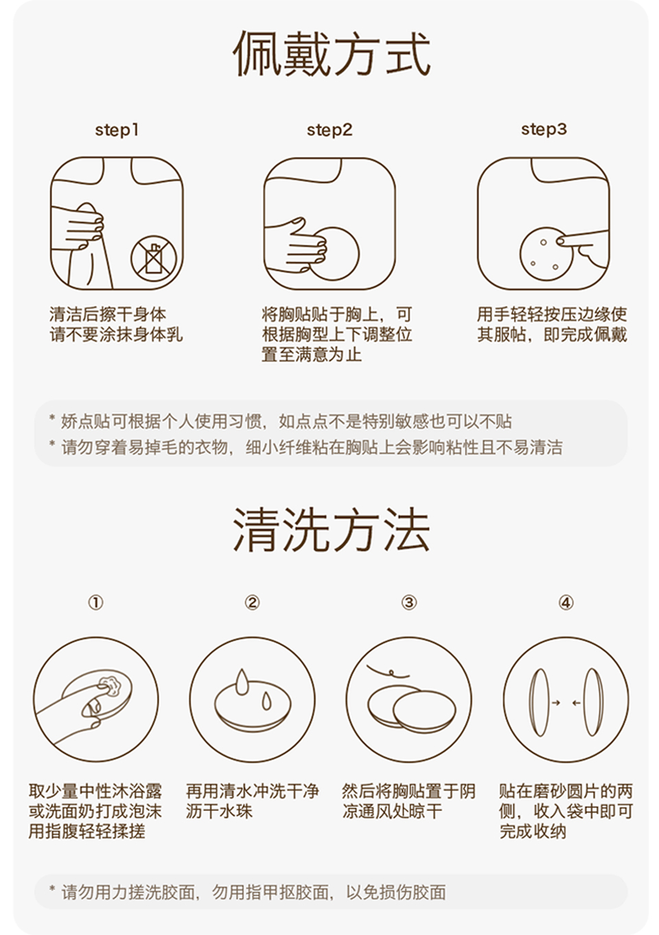 1、无胶款对周围环境的温度和湿度比较敏感,稳定性不如有胶款,建议居家或者有胸贴使用经验的姐妹尝试哦~