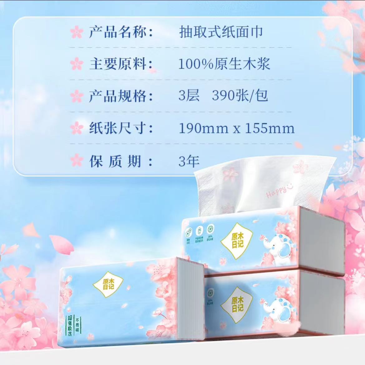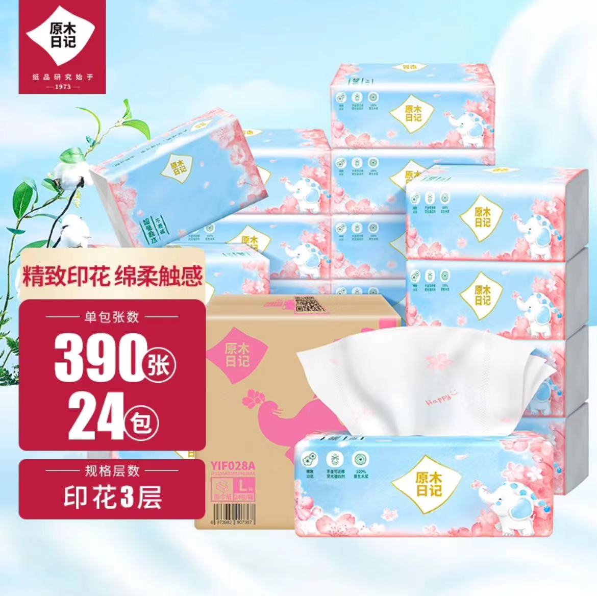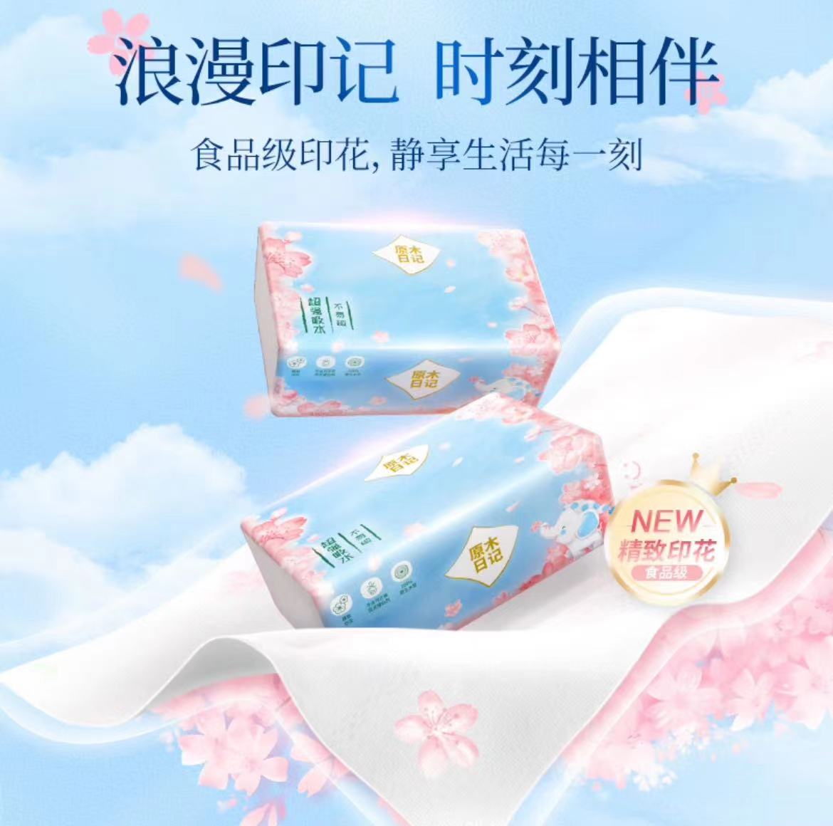 原木日记印花纸巾整箱L码3层130抽24包