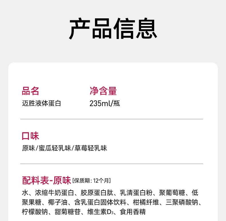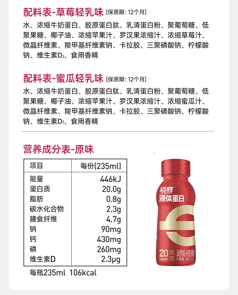 蒙牛迈胜液体蛋白(20g蛋白质)235ml*15瓶