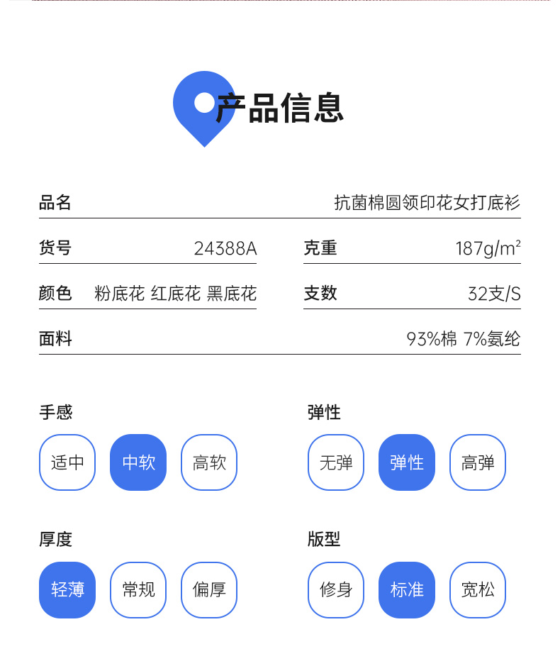 Threegun三枪 【抗菌棉】圆领印花女打底衫-24388A011