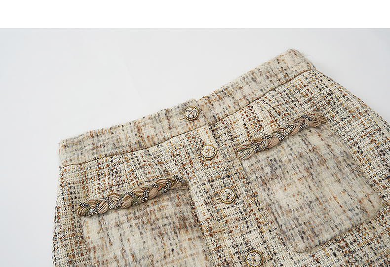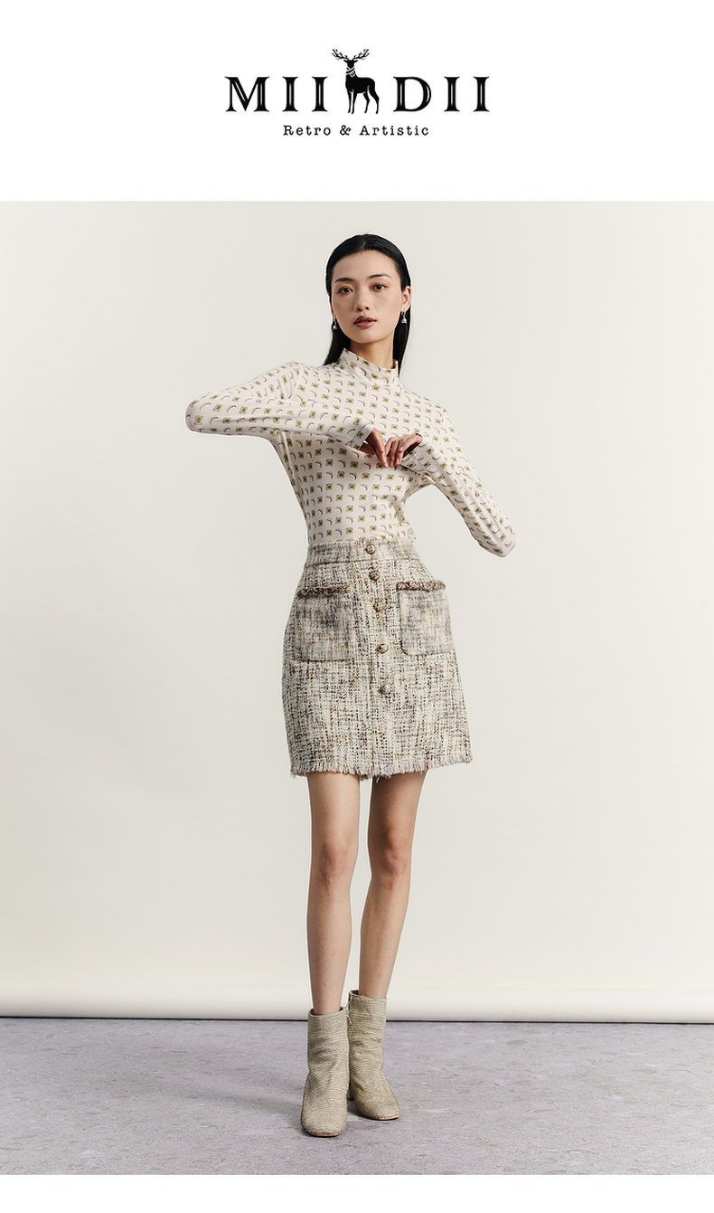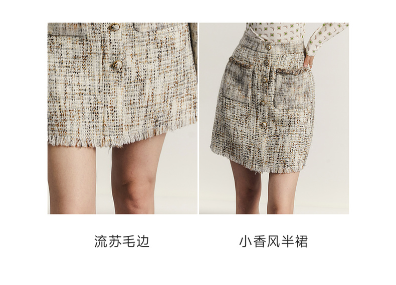 谜底小香风半身裙2023秋新款复古文艺粗花呢羊毛呢短裙233MB1085