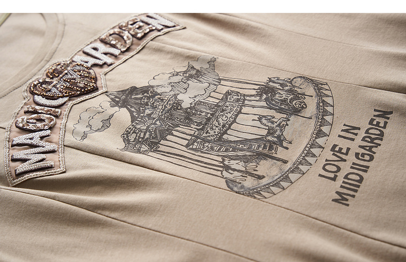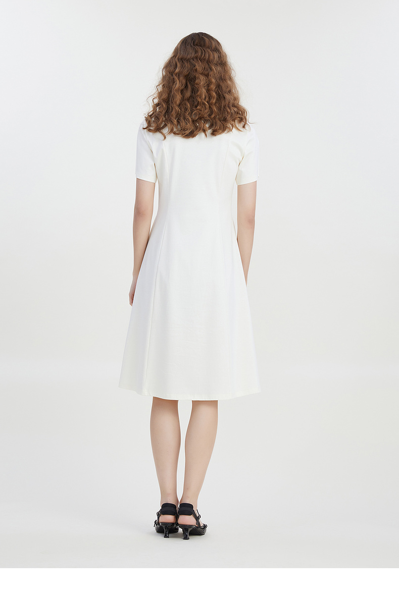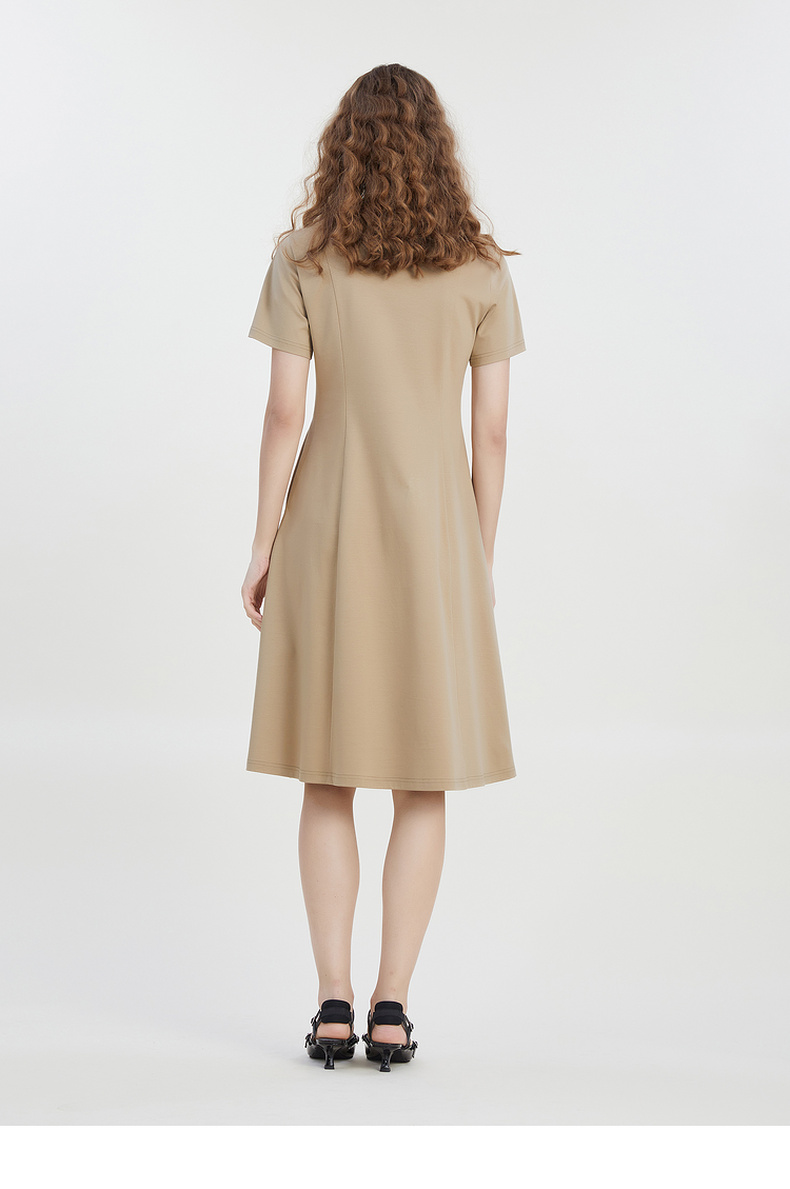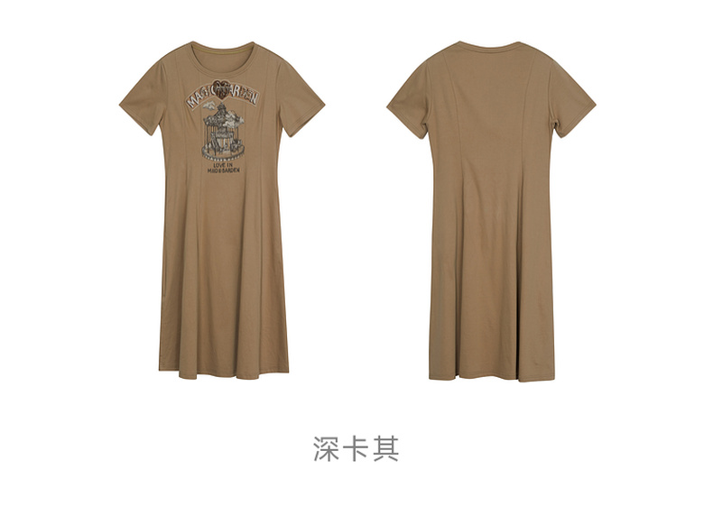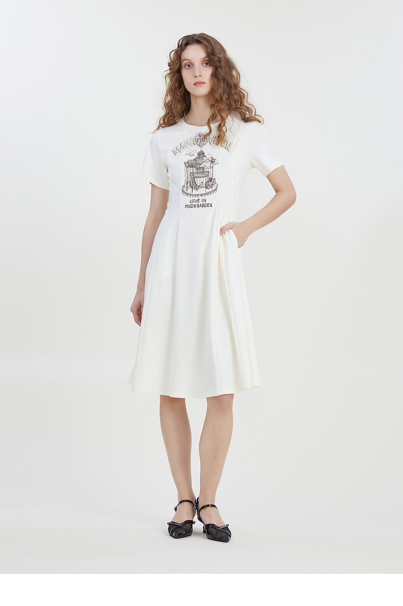 谜底2023夏新款圆领印花短袖连衣裙文艺修身中长裙伞裙232ML0532
