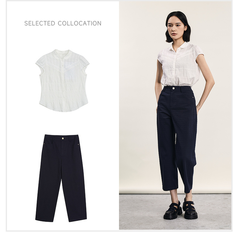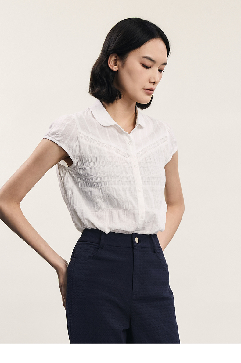 谜底白衬衫短袖女2024夏季新品通勤风暗纹提花修身衬衣242MC0690