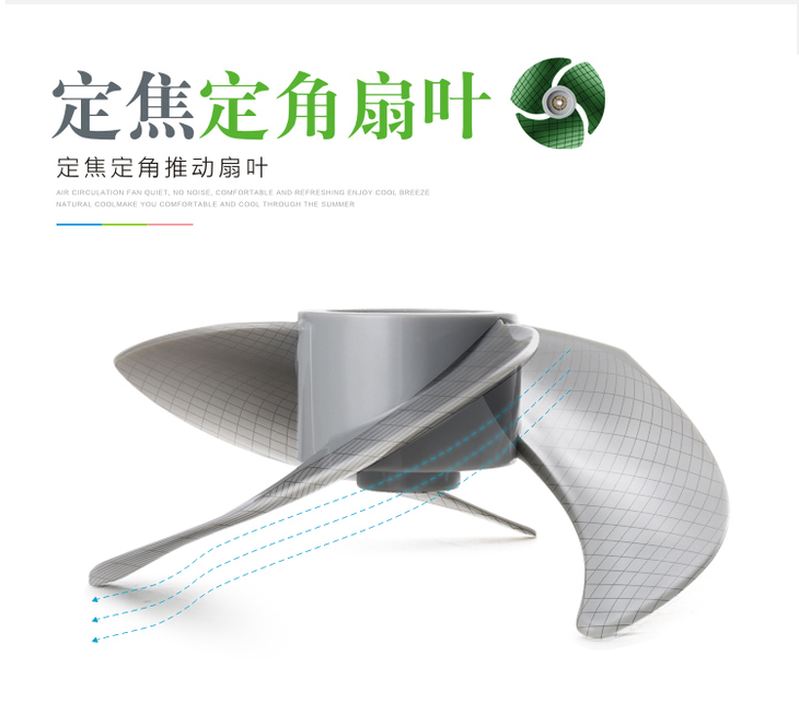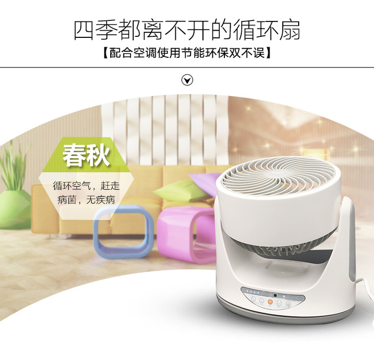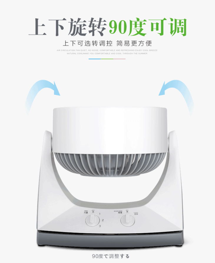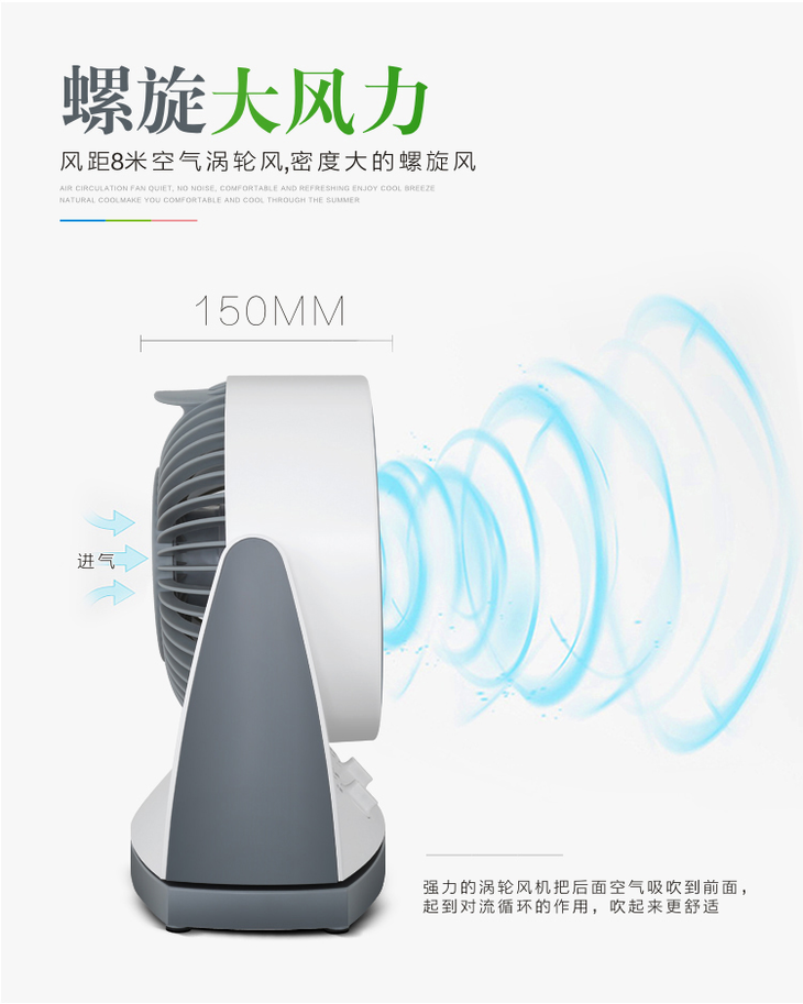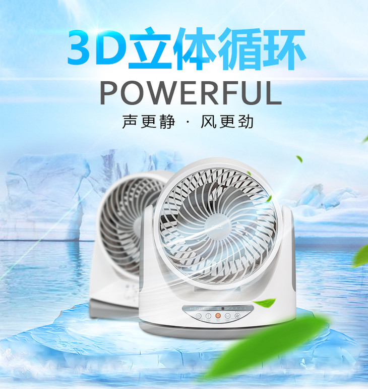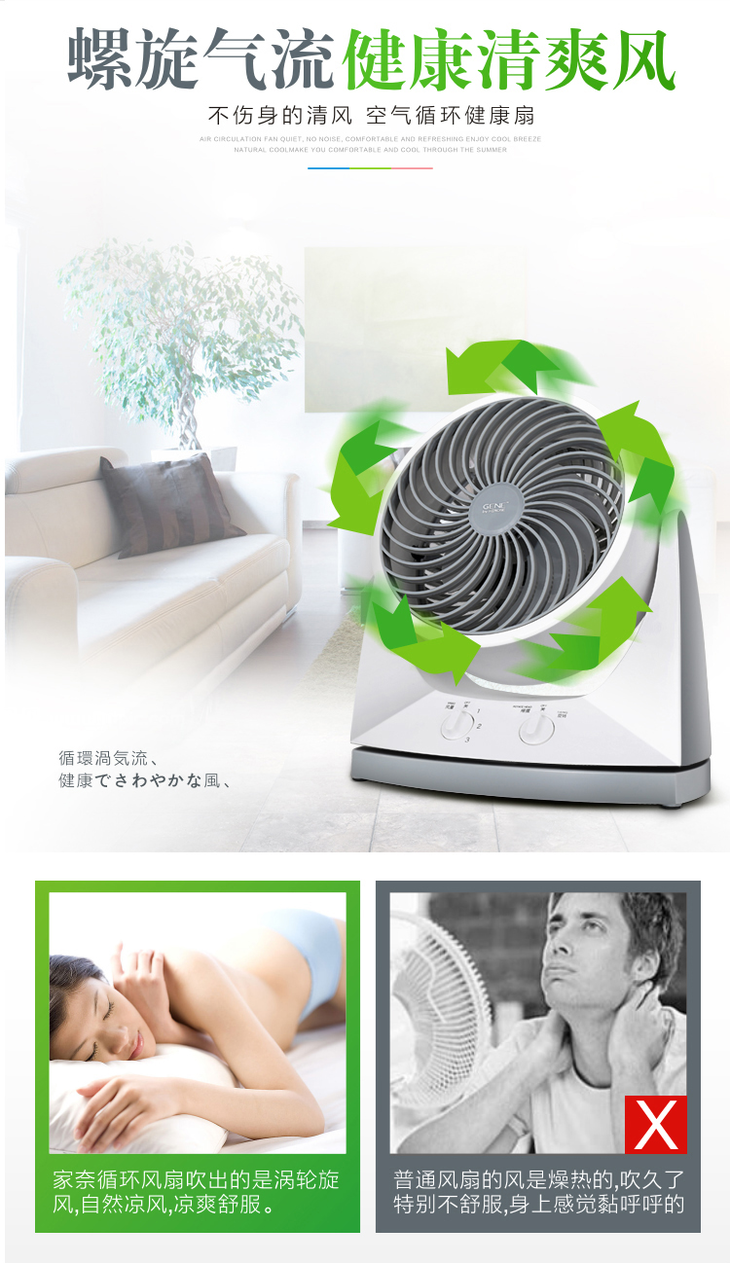循环扇风是螺旋风柱,风力集中,成直线型,密度大,吹到身上如同一丝一丝自然风吹在身上,清凉舒适!