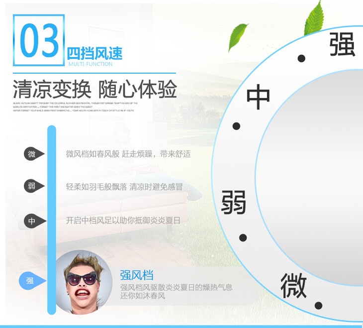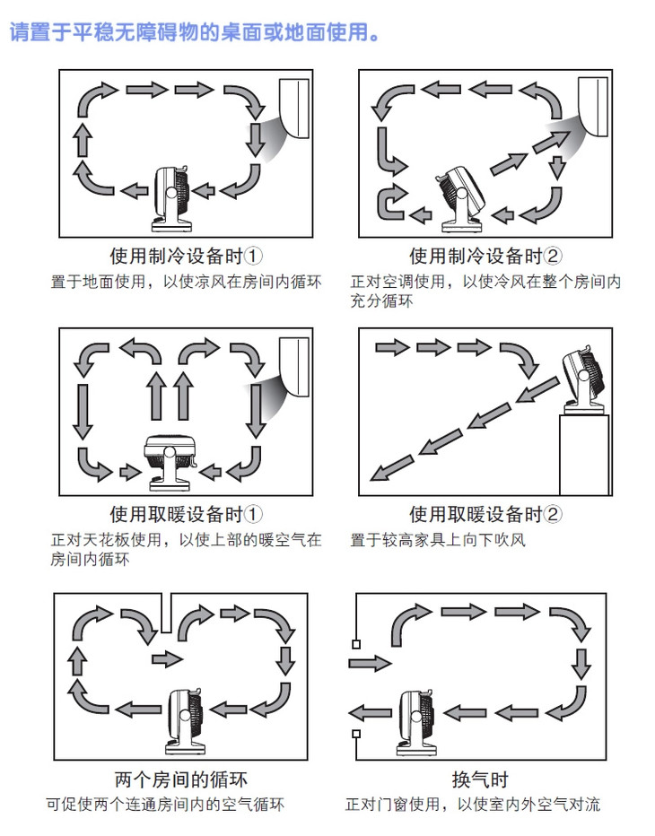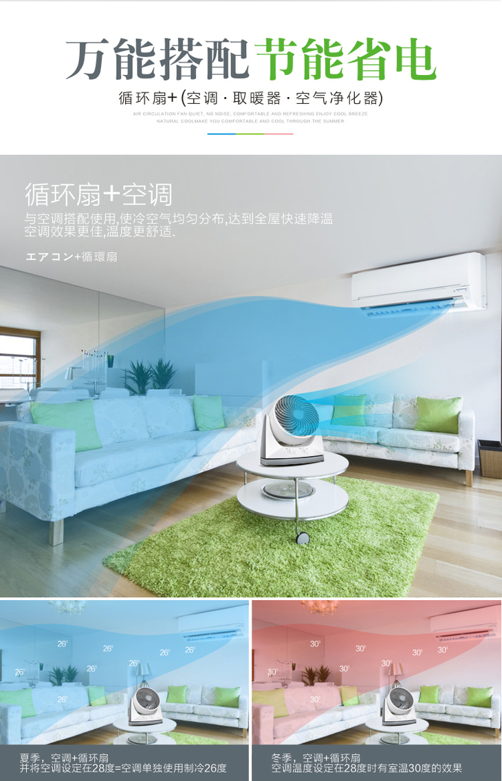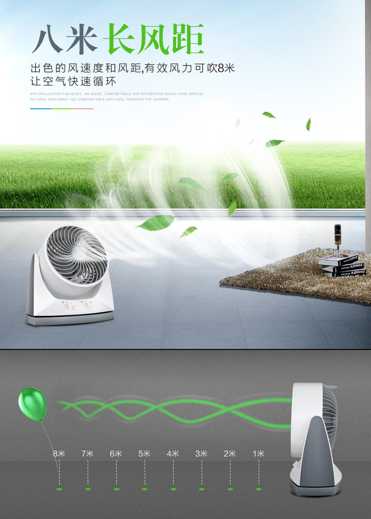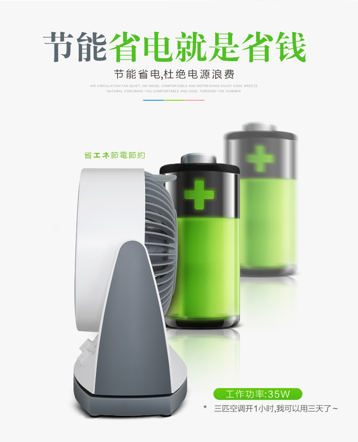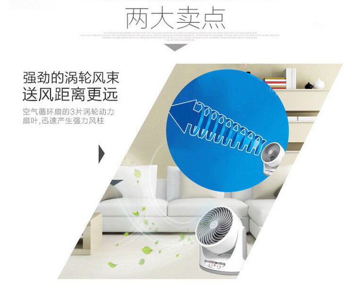 循环扇风是螺旋风柱,风力集中,成直线型,密度大,吹到身上如同一丝一丝自然风吹在身上,清凉舒适!