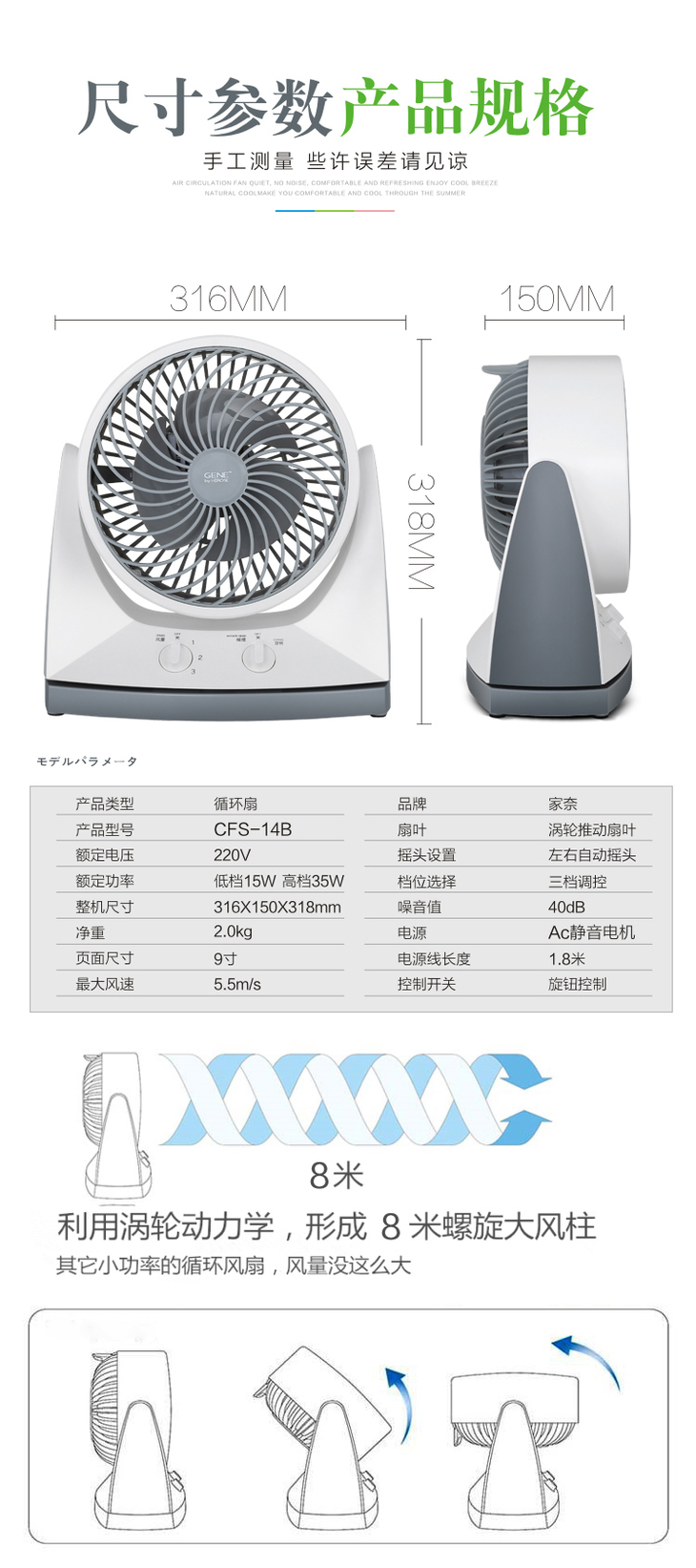 积分换购 | 日本家奈家用空气循环扇 涡轮式对流电风扇 (不支持无理由退换)[福利品]