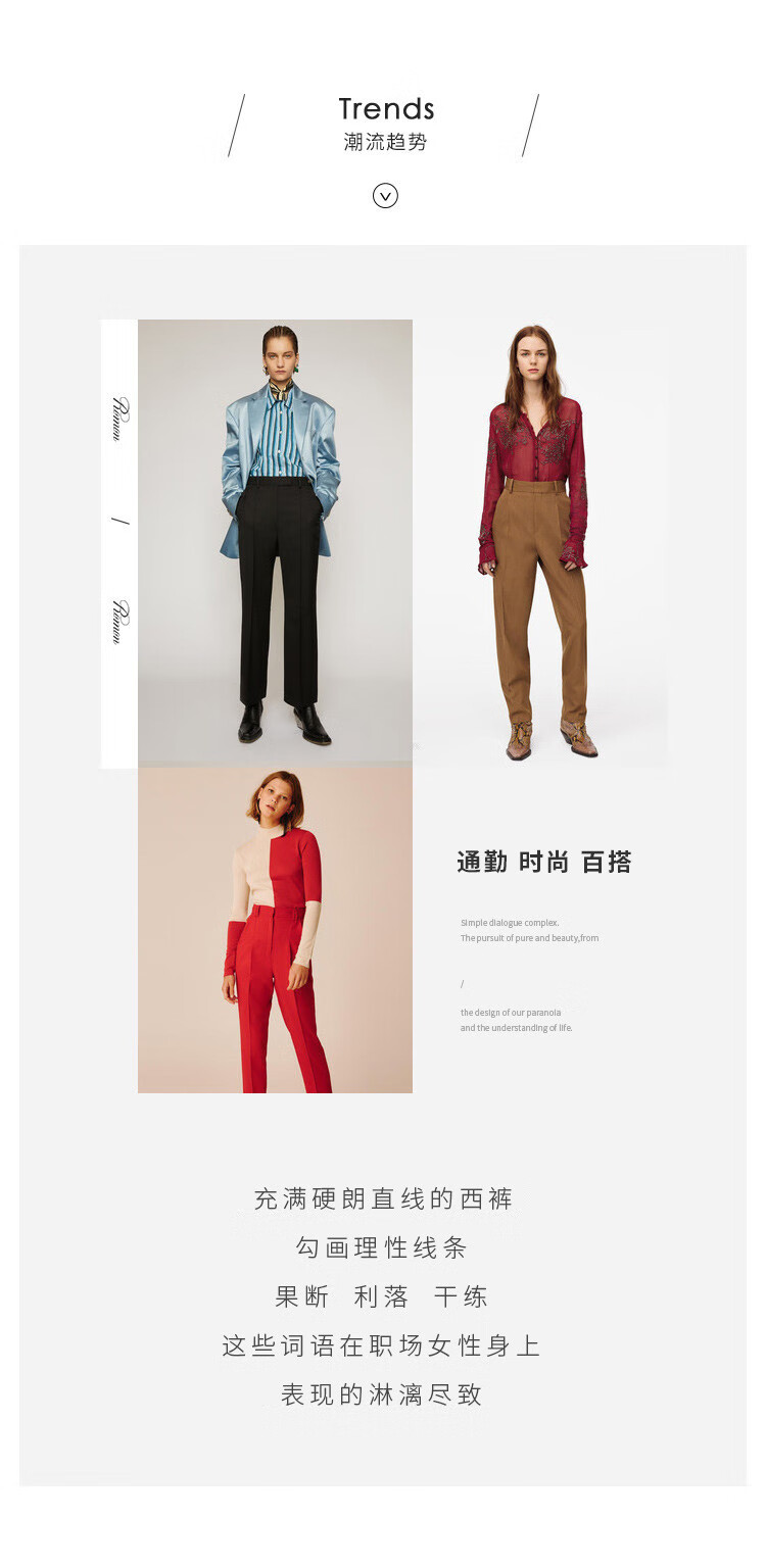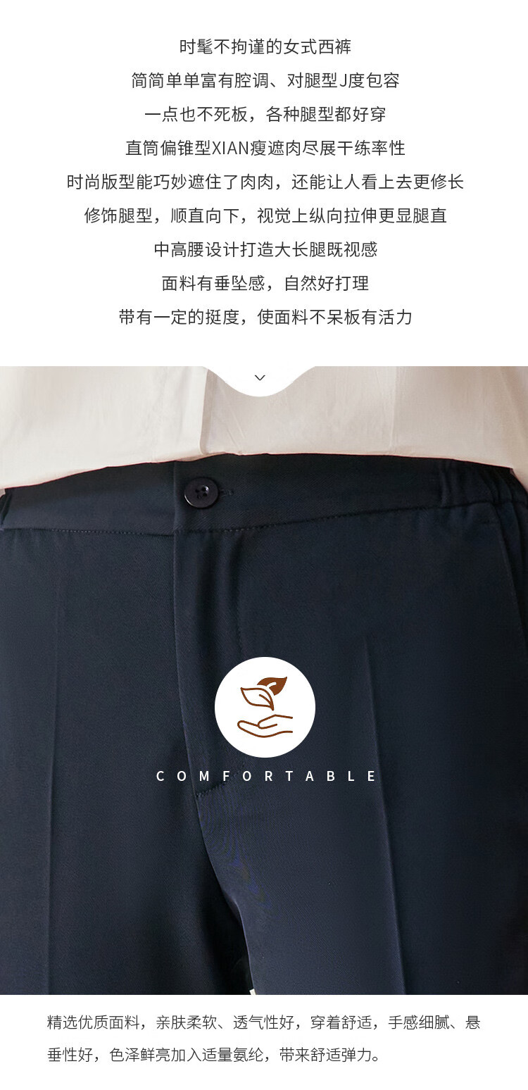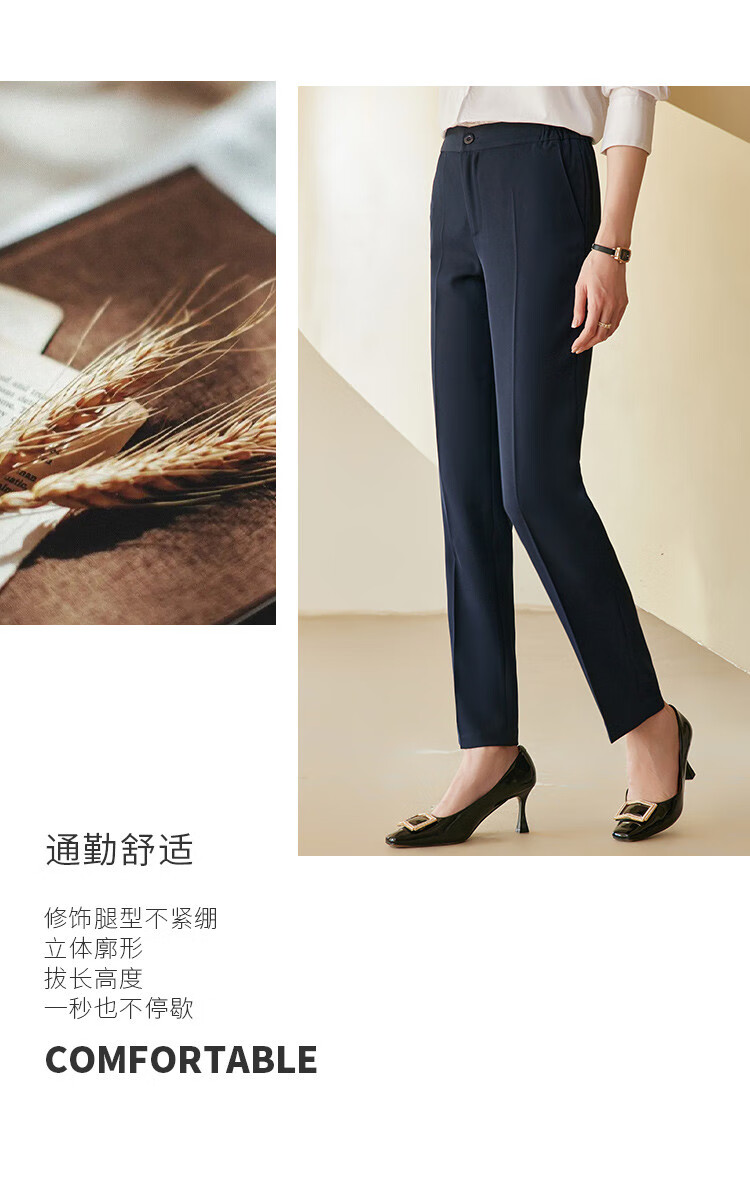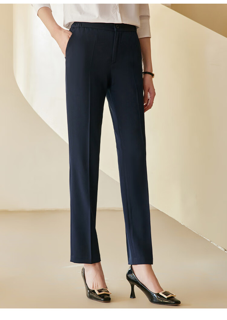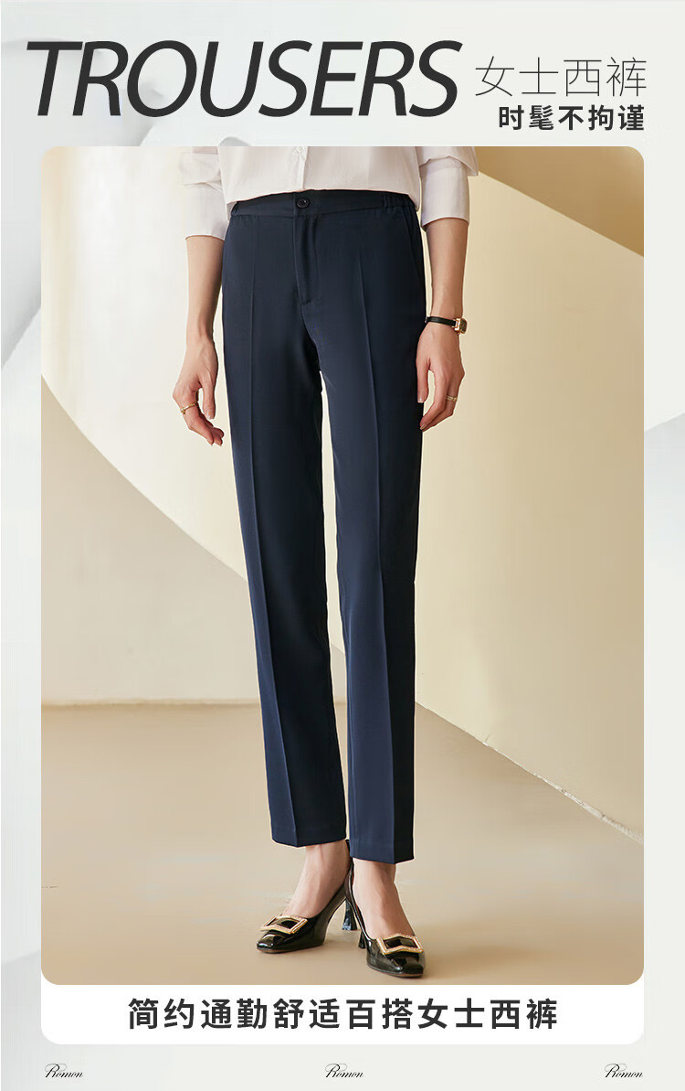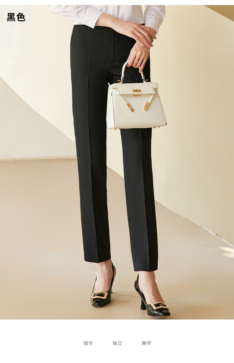 罗蒙西裤女春修身款纯色简约商务通勤上班职业工装女裤长裤