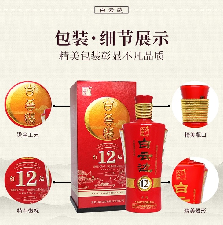 【吊牌刮奖换购】白云边红运12年陈酿500ml
