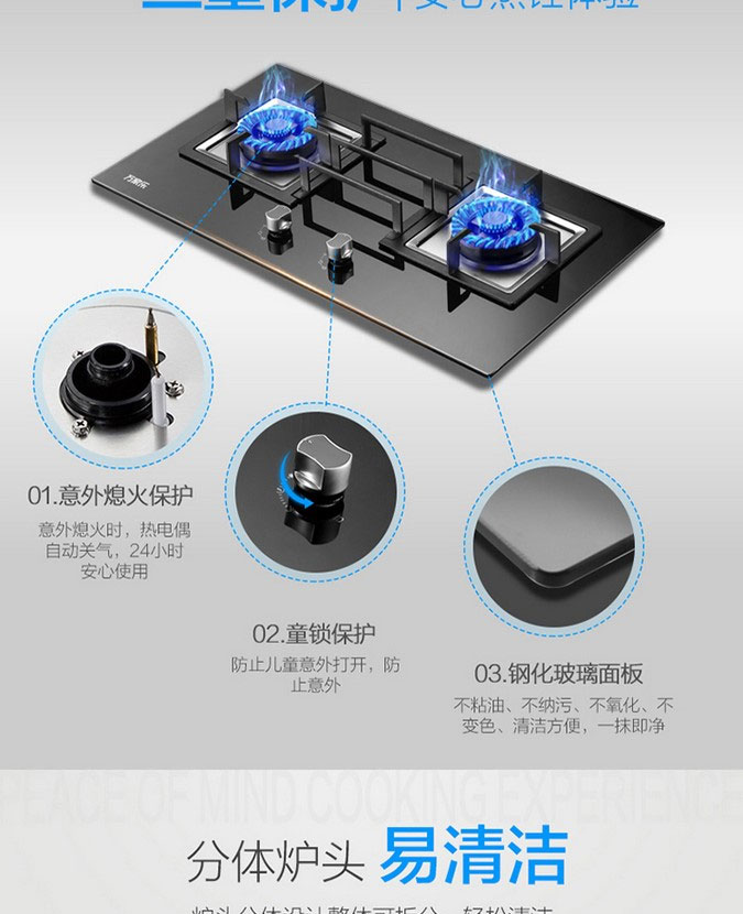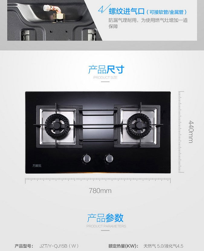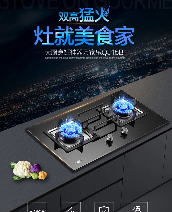 万家乐天然气玻璃面板家用嵌入式双眼燃气灶JZT-QJ15B(W)