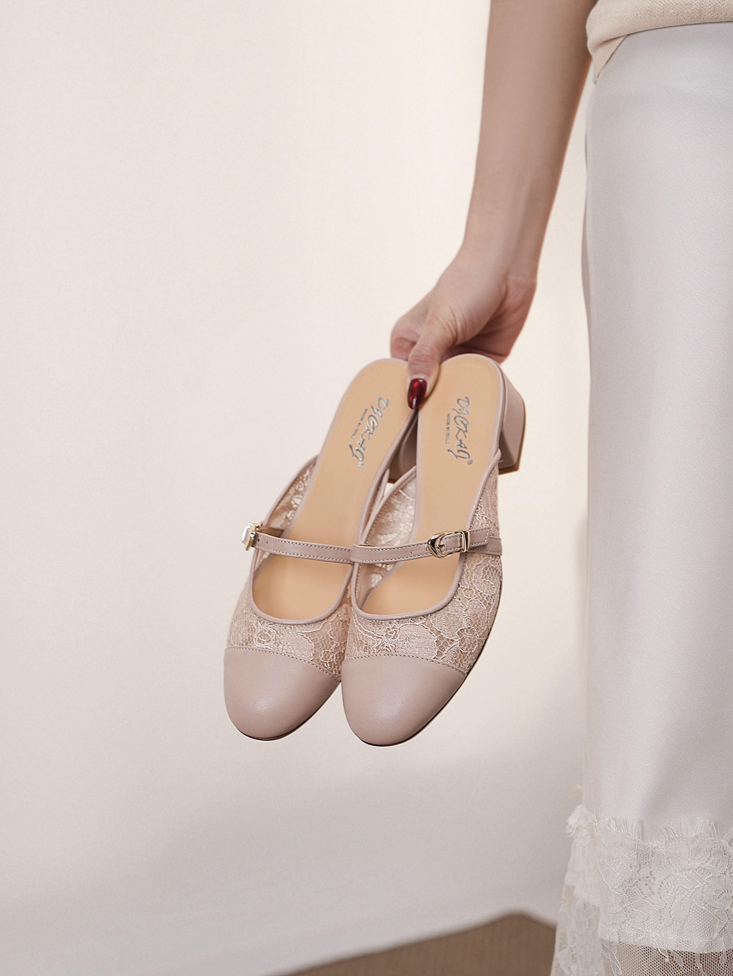 豪麟名鞋进口迪嘉女鞋半凉鞋织物+羊皮革S26383粉色