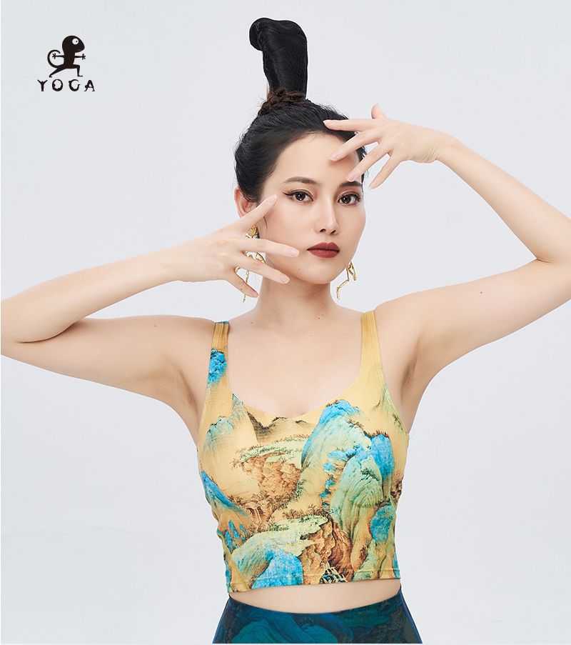 【现货秒发】壁虎瑜伽水母纱面料【万水千山-上衣】印花上衣(可拆卸胸垫)